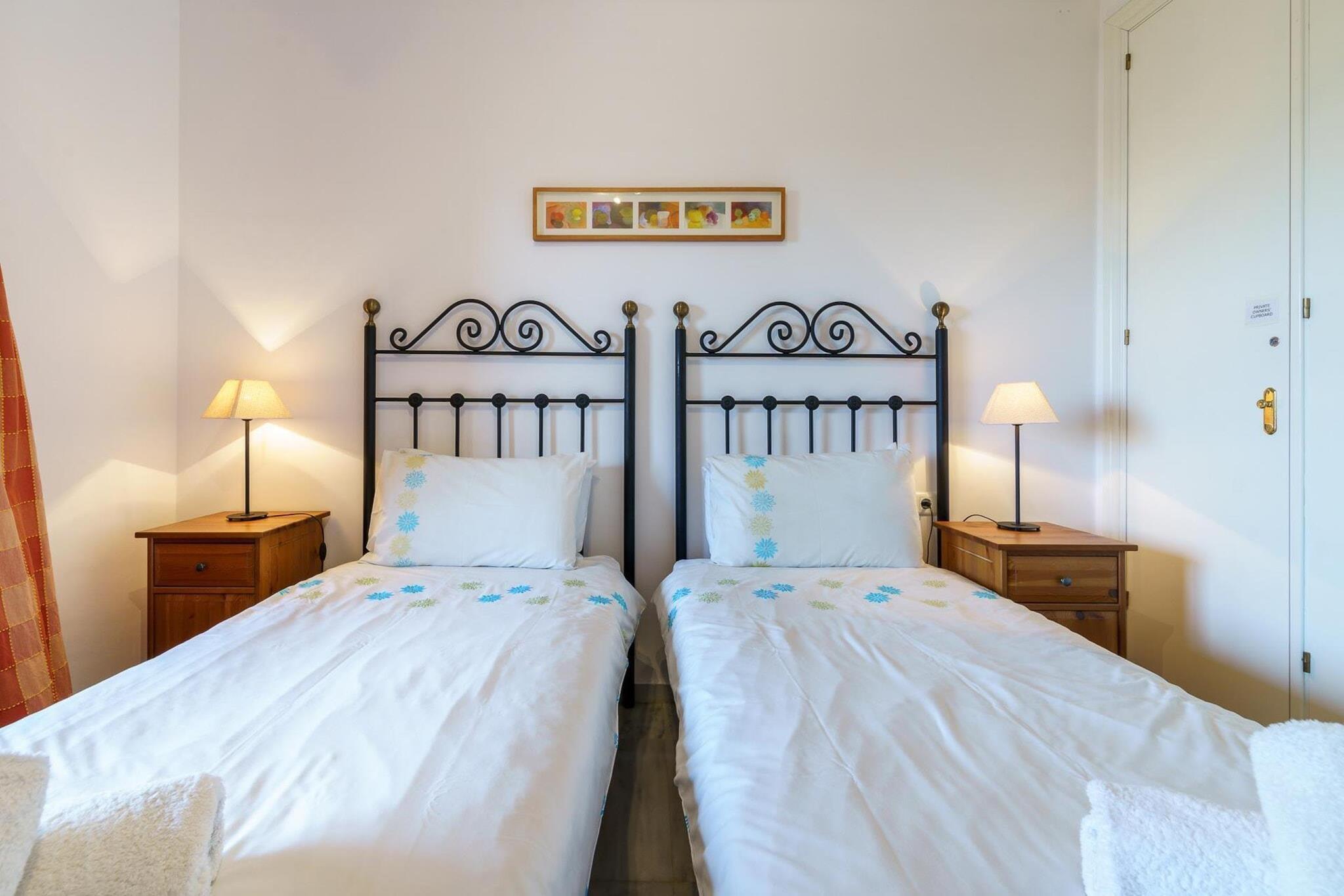 Køkken(kogeplade(induktion), elkedel, brødrister, kaffemaskine, ovn, mikrobølgeovn, køle-fryseskab), stue / spisestue(Fjernsyn(parabol)), soveværelse(dobbeltseng), soveværelse(enkeltseng, enkeltseng), soveværelse(enkeltseng, enkeltseng), badeværelse(badekar, håndvask, toilet, bidet), badeværelse(bruser, håndvask, toilet), balkon eller terrasse, klimaanlæg, havemøbler, parkering, swimmingpool(deles med andre gæster)