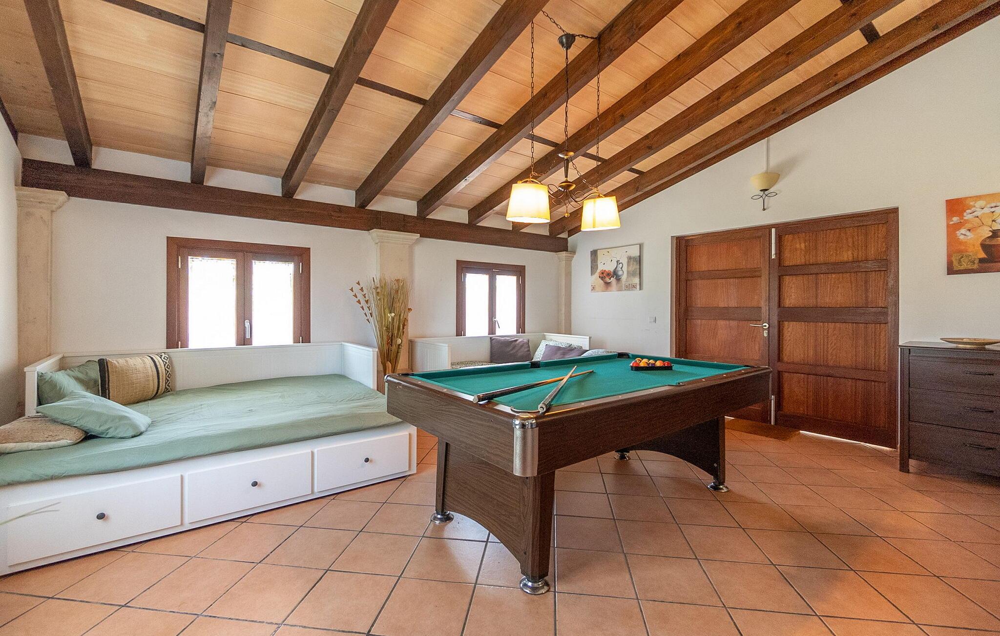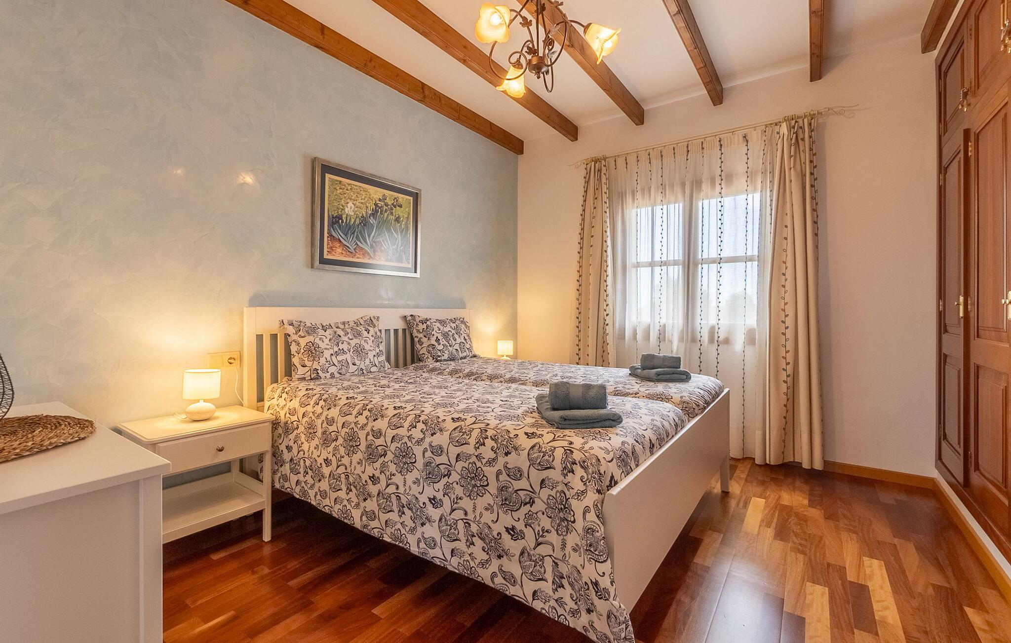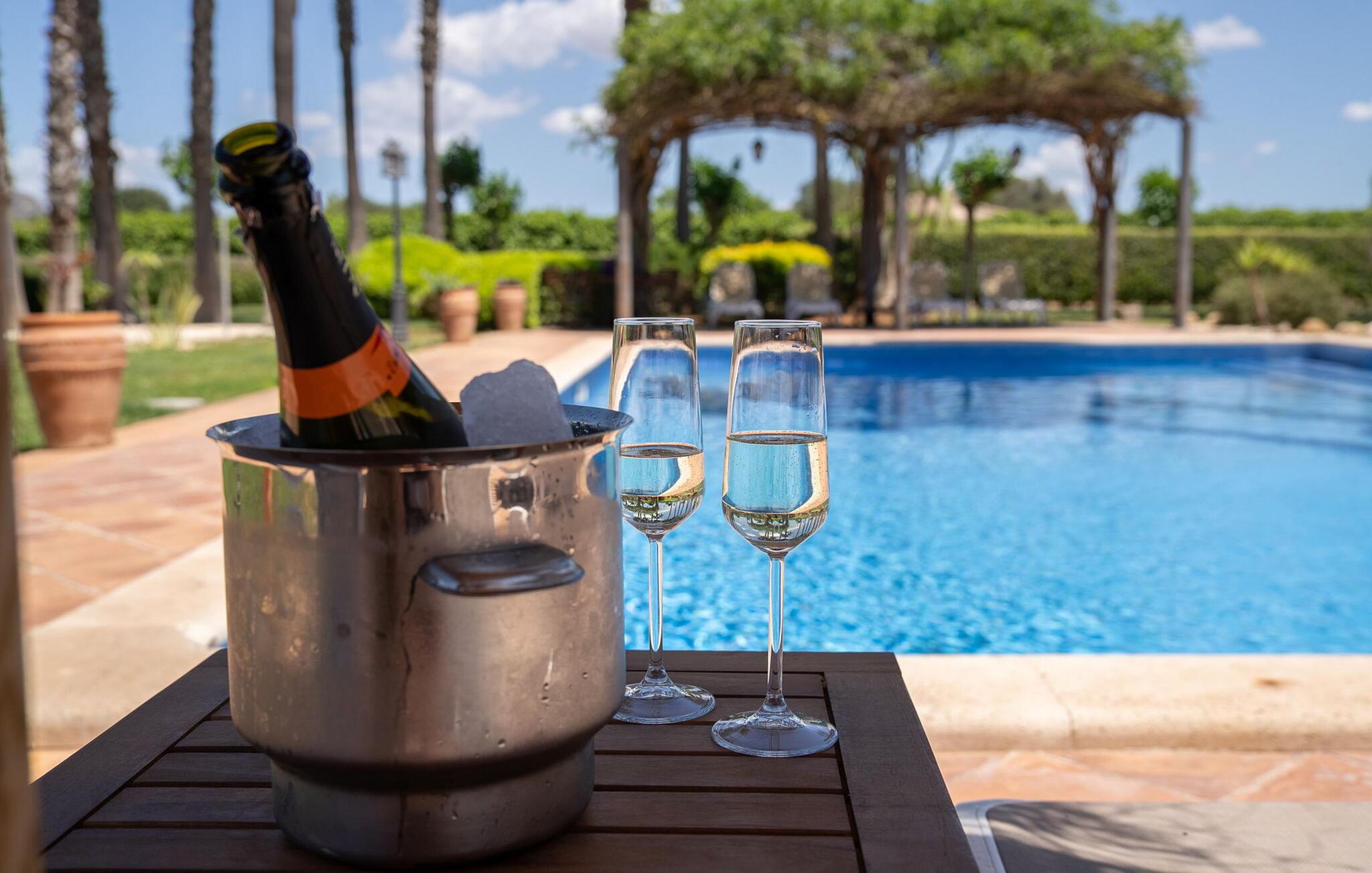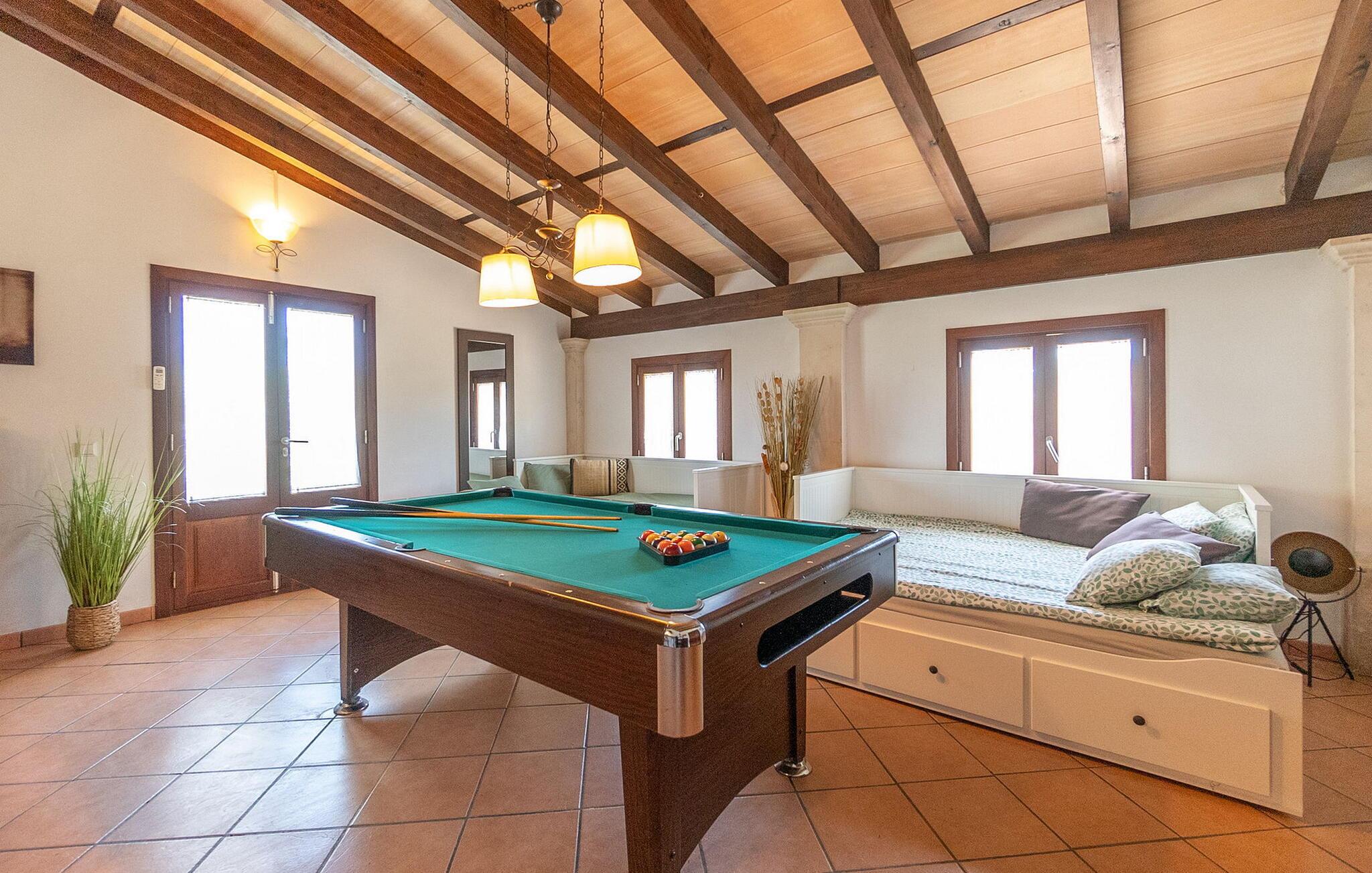 Beliggende i et rummeligt, velholdt havelandskab tilbyder denne rummelige og luksuriøst indrettede finca jer en solrig oase af fred, hvor I kan nyde middelhavsklimaet til fulde med venner eller familie. Det rummelige, velindrettede og højkvalitets interiør kombinerer rustik charme med moderne komfort og lover et behageligt indeklima og en ægte atmosfære året rundt. Glæd jer til hyggelige madlavningsaftener i det veludstyrede køkken i landlig stil og nyd dagens måltider i den indbydende spiseplads. Til hyggelige aftener, hvor I ser tv, kan I føle jer godt tilpas på det komfortable sofaområde. Spil PlayStation eller billard, eller nyd harmoniske aftener ved pejsen i de køligere måneder.