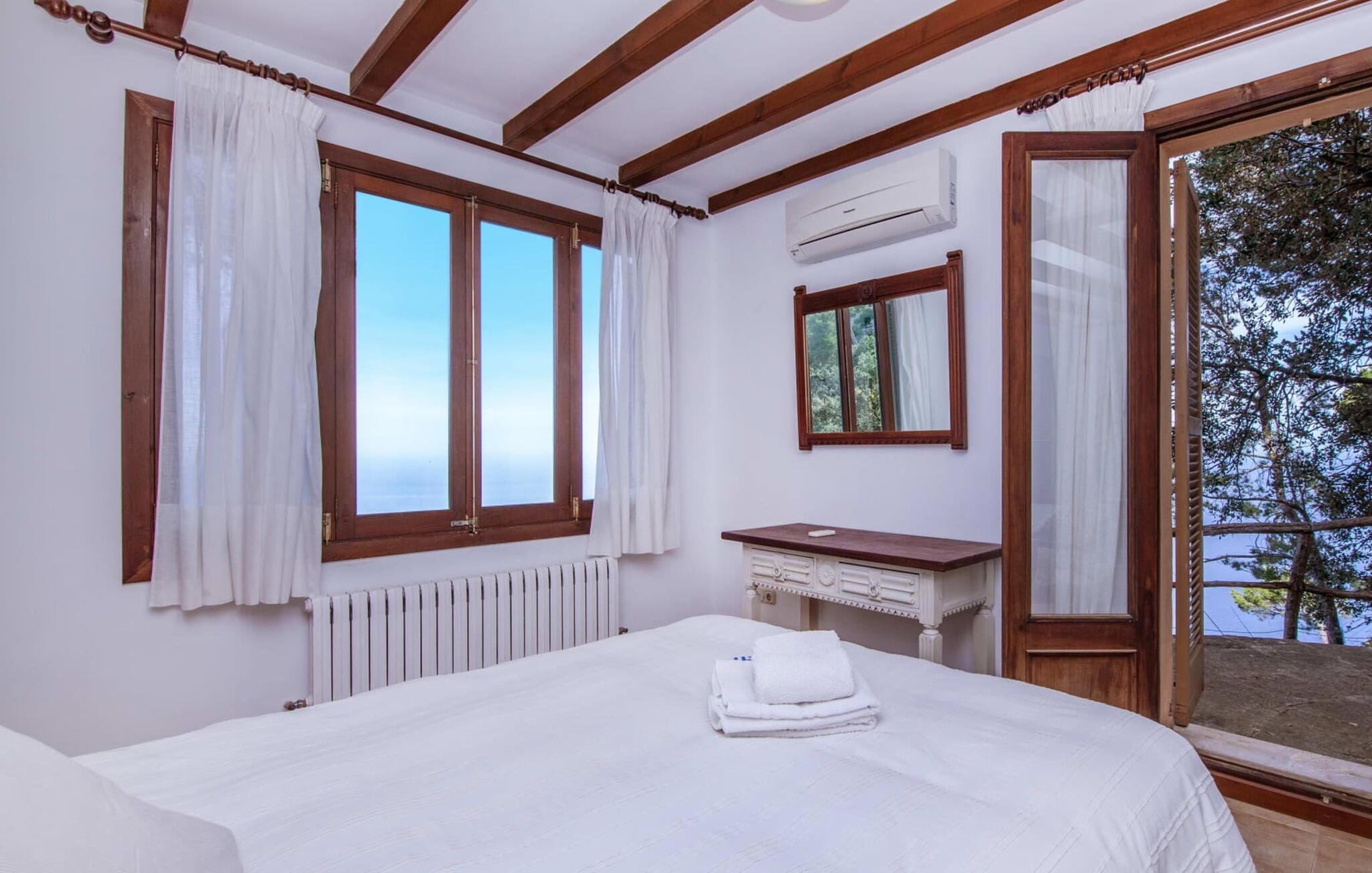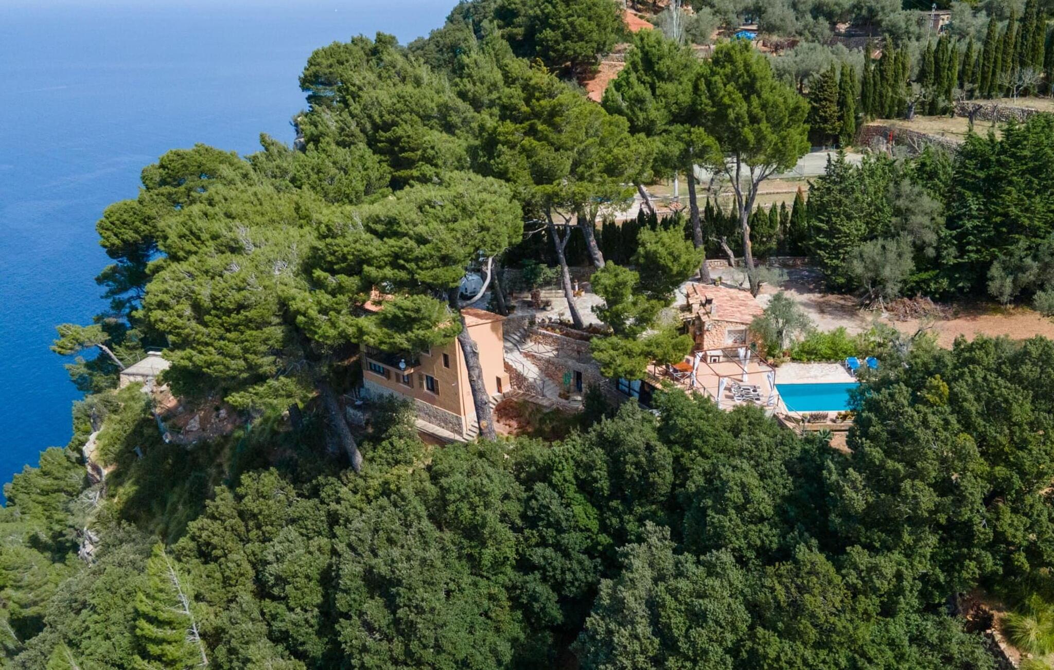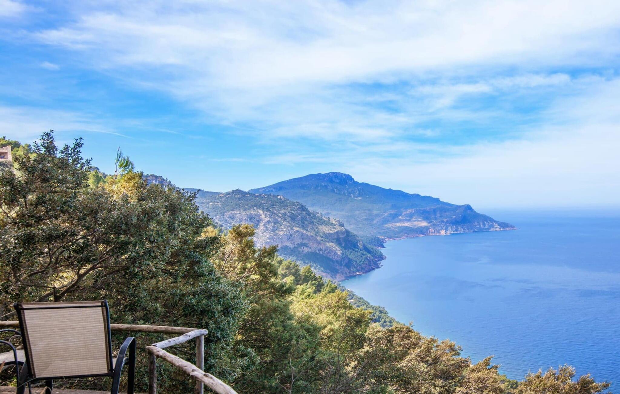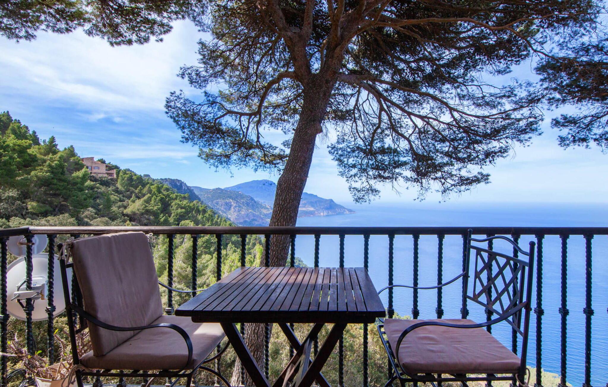 Villaen "Miraet" ligger afsondret på en 4.000 m² stor grund og byder på en betagende udsigt og absolut fred rummelig balkon løber langs fronten, hvor du kan nyde havudsigten og slappe af med en bog eller et glas fin mallorcansk vin. Poolen, som kan nås via trapper, er dekoreret med blå mosaiksten Flisebelagt Når aftenen nærmer sig, vil du helt sikkert have lyst til at fyre op i grillen til en solid middag. Der er en parkeringsplads lige ved siden af huset badeværelse På øverste etage er der en rummelig opholdsstue med køkken og spiseplads. Foran denne tilbygning er der en altan med en vidunderlig udsigt over havet. Villaen er udstyret med varme, pejs og aircondition for at give komfort hele året rundt. Bemærk venligst, at det på grund af dens beliggenhed ved klippen muligvis ikke er egnet til familier med små børn. Villaen "Miraet" ligger på en helt sublim beliggenhed på Mallorcas spektakulære vestkyst og byder på en sensationel udsigt over øens smukkeste kyststrækning ' kørsel - fra de maleriske landsbyer Deìa og Valldemossa, som begge har barer, restauranter og et lille supermarked Den fantastiske bugt Cala Deìa er kun en kort køretur væk.