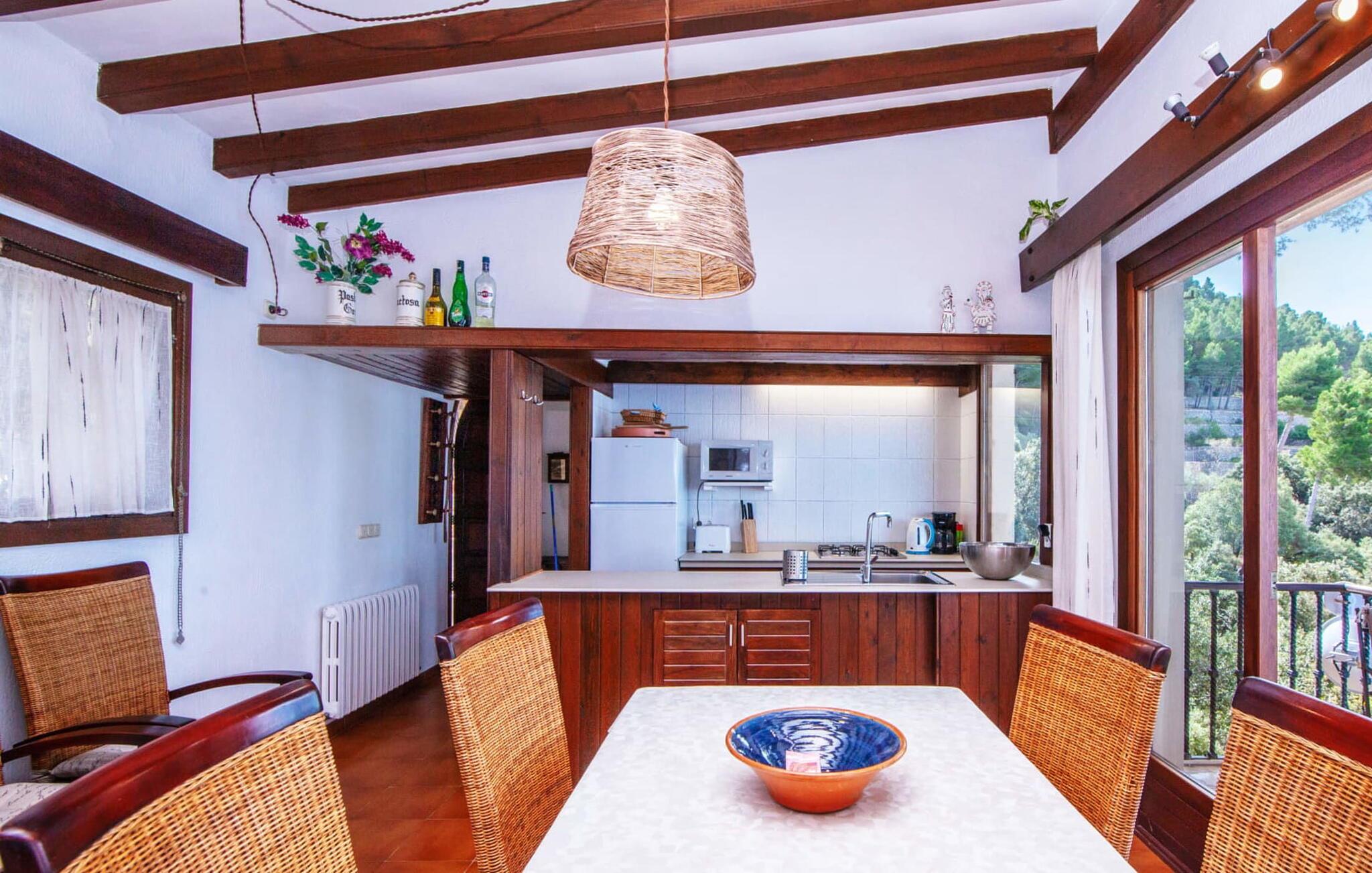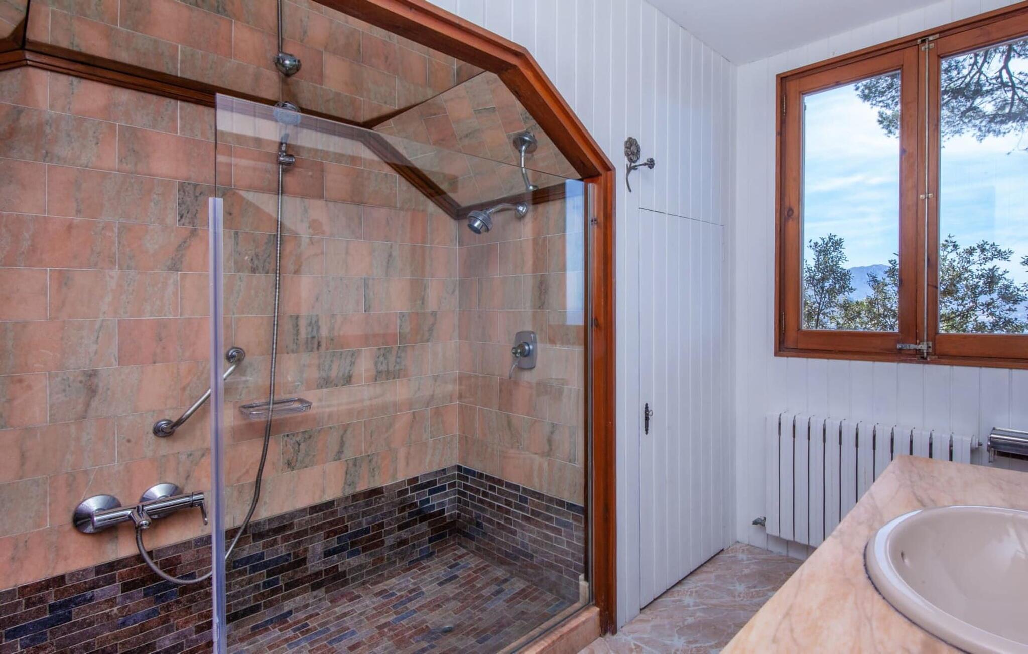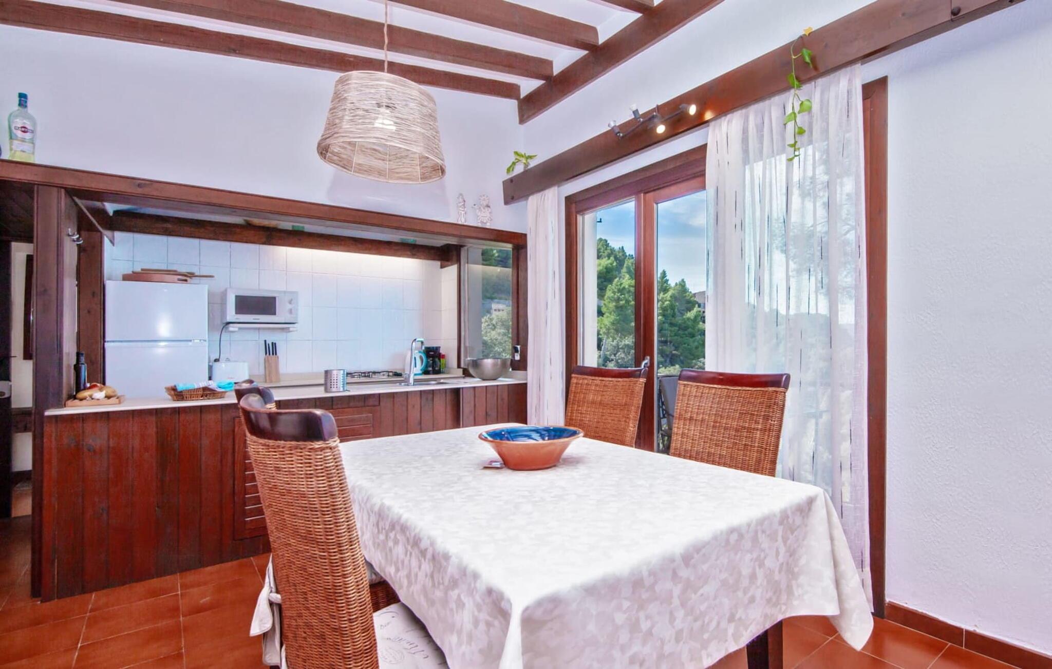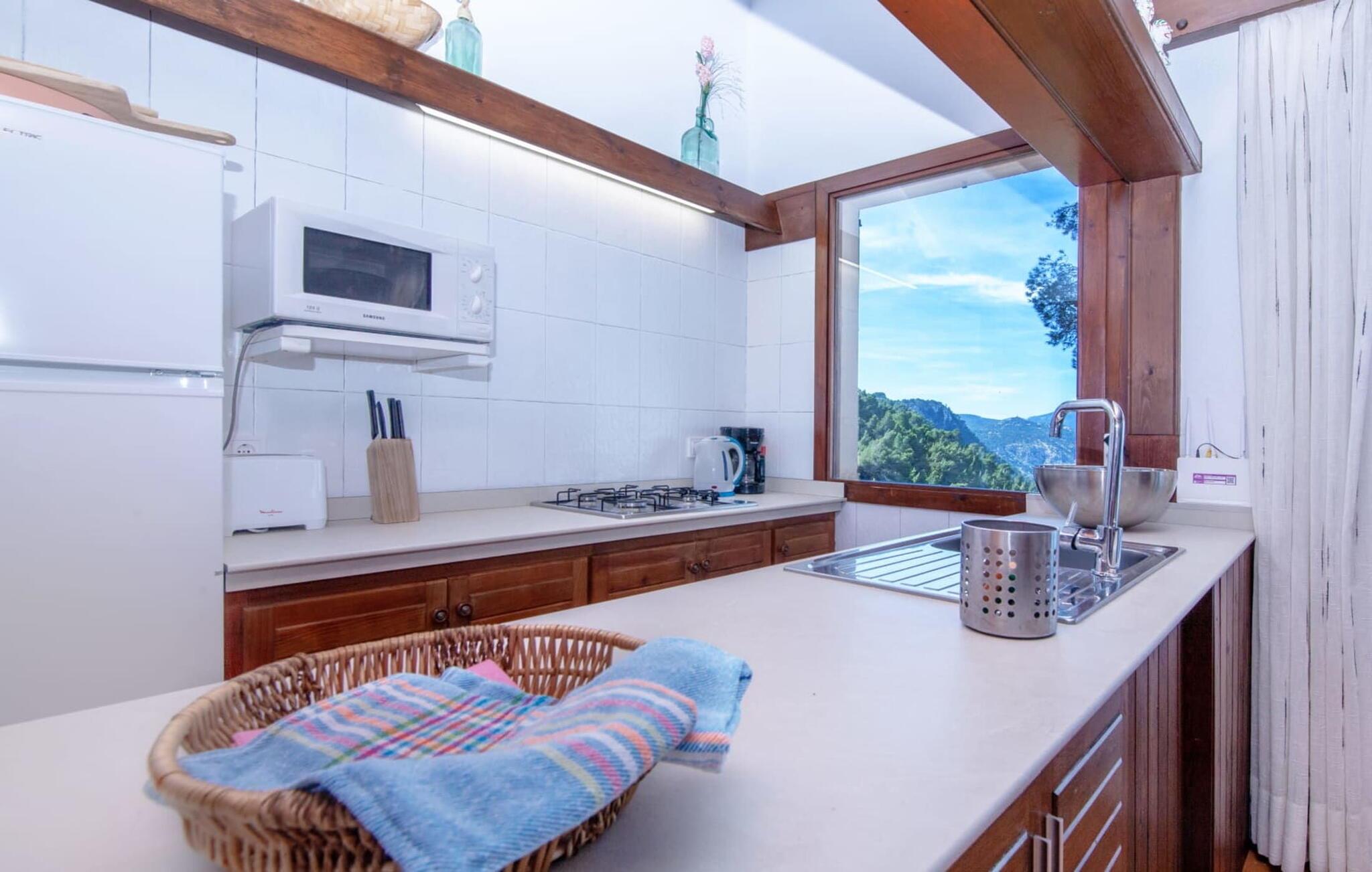 Villaen "Miraet" ligger afsondret på en 4.000 m² stor grund og byder på en betagende udsigt og absolut fred rummelig balkon løber langs fronten, hvor du kan nyde havudsigten og slappe af med en bog eller et glas fin mallorcansk vin. Poolen, som kan nås via trapper, er dekoreret med blå mosaiksten Flisebelagt Når aftenen nærmer sig, vil du helt sikkert have lyst til at fyre op i grillen til en solid middag. Der er en parkeringsplads lige ved siden af huset badeværelse På øverste etage er der en rummelig opholdsstue med køkken og spiseplads. Foran denne tilbygning er der en altan med en vidunderlig udsigt over havet. Villaen er udstyret med varme, pejs og aircondition for at give komfort hele året rundt. Bemærk venligst, at det på grund af dens beliggenhed ved klippen muligvis ikke er egnet til familier med små børn. Villaen "Miraet" ligger på en helt sublim beliggenhed på Mallorcas spektakulære vestkyst og byder på en sensationel udsigt over øens smukkeste kyststrækning ' kørsel - fra de maleriske landsbyer Deìa og Valldemossa, som begge har barer, restauranter og et lille supermarked Den fantastiske bugt Cala Deìa er kun en kort køretur væk.