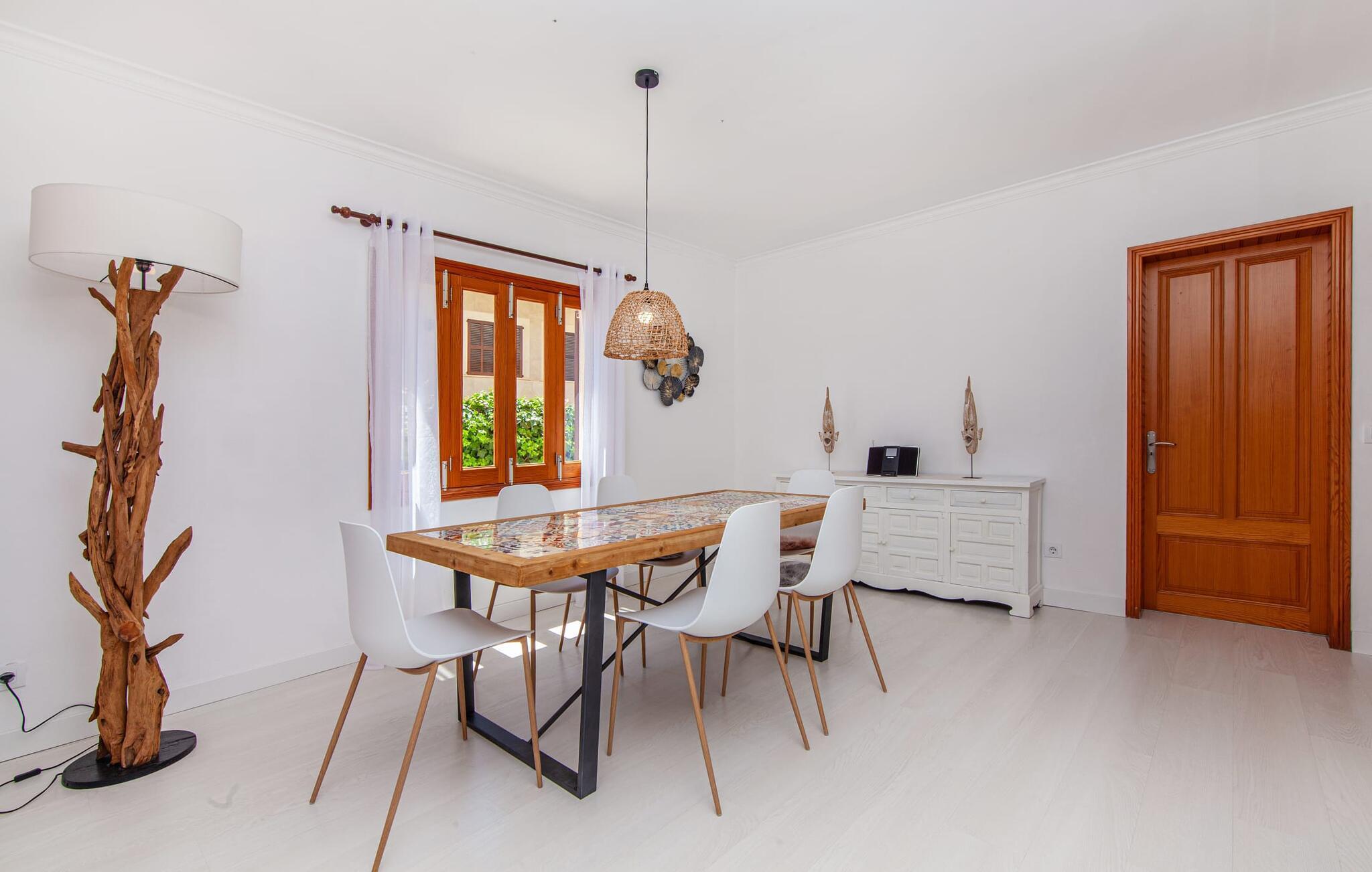 Den elegante villa “Mirte” ligger i en smuk kystby og er omgivet af et herligt stort udendørsområde med et moderne design. Udover den velholdte og rummelige græsplæne er der også en skrånende pool, der udgør ejendommens midtpunkt. Det er indrammet af palmer og græs og giver hele stedet en vidunderlig middelhavsferiemagi. Den tilstødende solterrasse med liggestole og parasoller giver dig mulighed for at nyde denne idyl fuldt ud. En privatskærm omkring ejendommen sikrer det nødvendige privatliv. Terrasserne omkring villaen tilbyder dig det rigtige sted at nyde middelhavstemperaturerne på det rigtige tidspunkt af dagen eller tilbyde dig fremragende skyggefulde pletter. De rummelige siddepladser viser sig at være ideelle steder til et måltid sammen ved den mobile gasgrill eller murstens-kulgrillen. De bærende søjler, der indrammer terrasserne, understreger villaens i forvejen overdådige indtryk og giver en unik udsigt over havelandskabet. Dette skaber en særlig feriefølelse, som helt sikkert vil blive hos dig i lang tid. Du kommer ind i villaen gennem en massiv, stor trædør. Klinkegulve, trævinduesrammer og terrassedøre samt den moderne og farverige indretning sikrer en uforlignelig atmosfære og den rette følelse af velvære, som ikke kun findes i loungen med de komfortable sofaer, men også i de flisebelagte. ildsted. De tre store dobbeltværelser, som får aircondition fra 2021, imponerer også med deres individuelle charme og moderne design. En af dem har direkte adgang til en af de omkringliggende terrasser. Der er trædetaljer i hele villaen såsom det store spisebord med vintage-stil træstole. Køkkenet er et vidunderligt sted, hvor I kan lave mad sammen om aftenen med friske lokale produkter. Den har et hvidt højglans køkken, spisebord (der er selvfølgelig også en spisestue!), opvaskemaskine og meget mere, samt alle de faciliteter du har brug for til en ferie med selvforplejning. De to badeværelser med rummelige brusere er særligt stilfulde og lyst indrettede. De har også træmøbler, der matcher hele villaens elegante indretning. I dette fantastiske hus vil du finde en original struktur med moderne og vintage stilelementer, der tilbyder dig et behageligt sted at tilbringe din ferie sammen, uanset vejret. Mallorcas østkyst er mangfoldig og har noget at byde på for enhver smag. Fra lange sandstrande til skove, klitter og stenbroer, her er alt for at få dit feriehjerte til at banke hurtigere. Sa Coma ligger 70 km øst for Palma og er et af de smukkeste feriemål i det østlige Mallorca. Med sin 890 m lange badestrand og den tilstødende promenade, der problemfrit går over i S'illot-havnen, er der skønne muligheder for at slappe af eller gå lange ture mod solnedgangen. For en actionfyldt feriedag kan du tage til safariparken i nord, det perfekte sted for en sjov familietur. Villaen er beliggende i et roligt område af kystbyen, men alligevel er en vej og underholdningssteder enten ved siden af eller i umiddelbar nærhed. Villa "Mirte" ligger i boligområdet Sa Coma, kun få hundrede meter fra landsbyens sandstrand. Svømning er ikke det eneste, du kan gøre her. Du kan også tage skønne lange gåture på promenaden. Det velassorterede supermarked til dine daglige behov er ikke langt fra huset, og landmændenes marked giver endnu en mulighed for at fylde friske og regionale produkter op. På grund af villaens fremragende beliggenhed ligger barer og restauranter i umiddelbar nærhed. Dette er et Fincallorca feriehus.