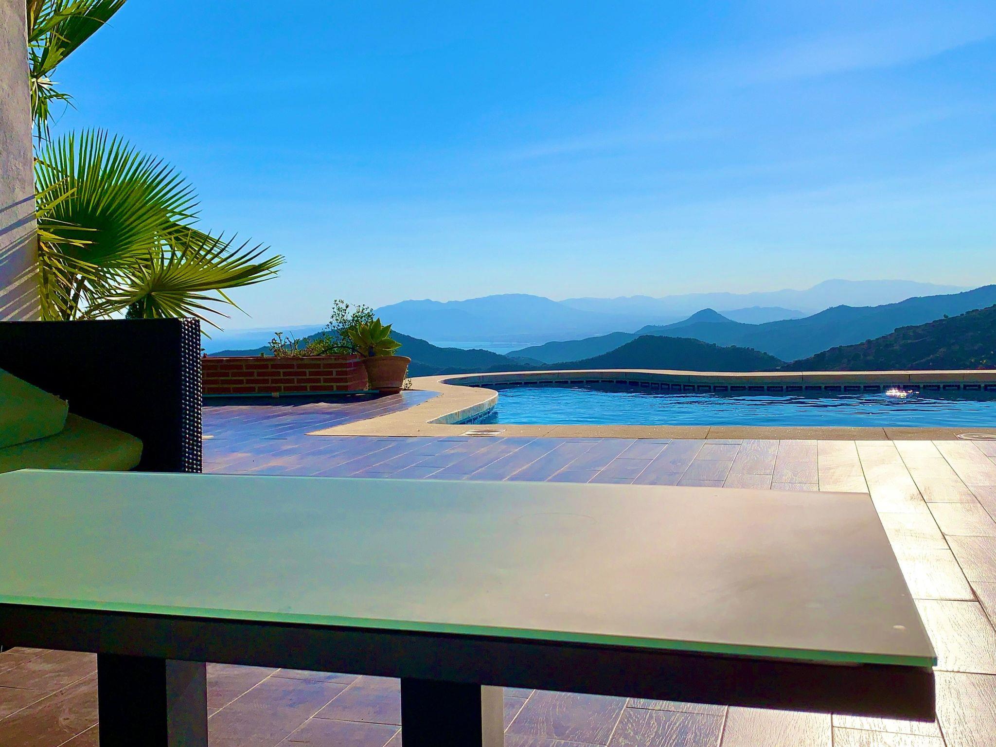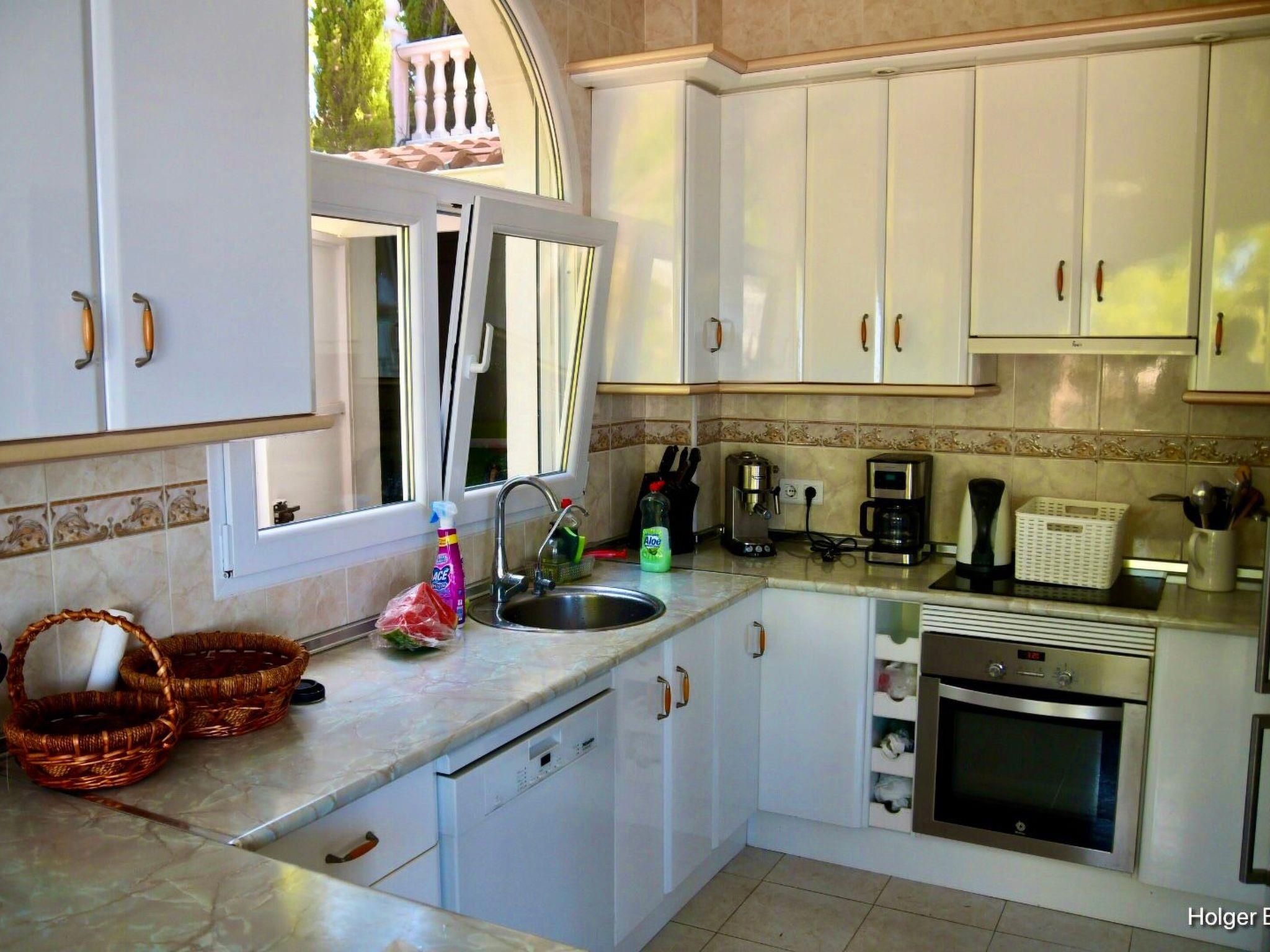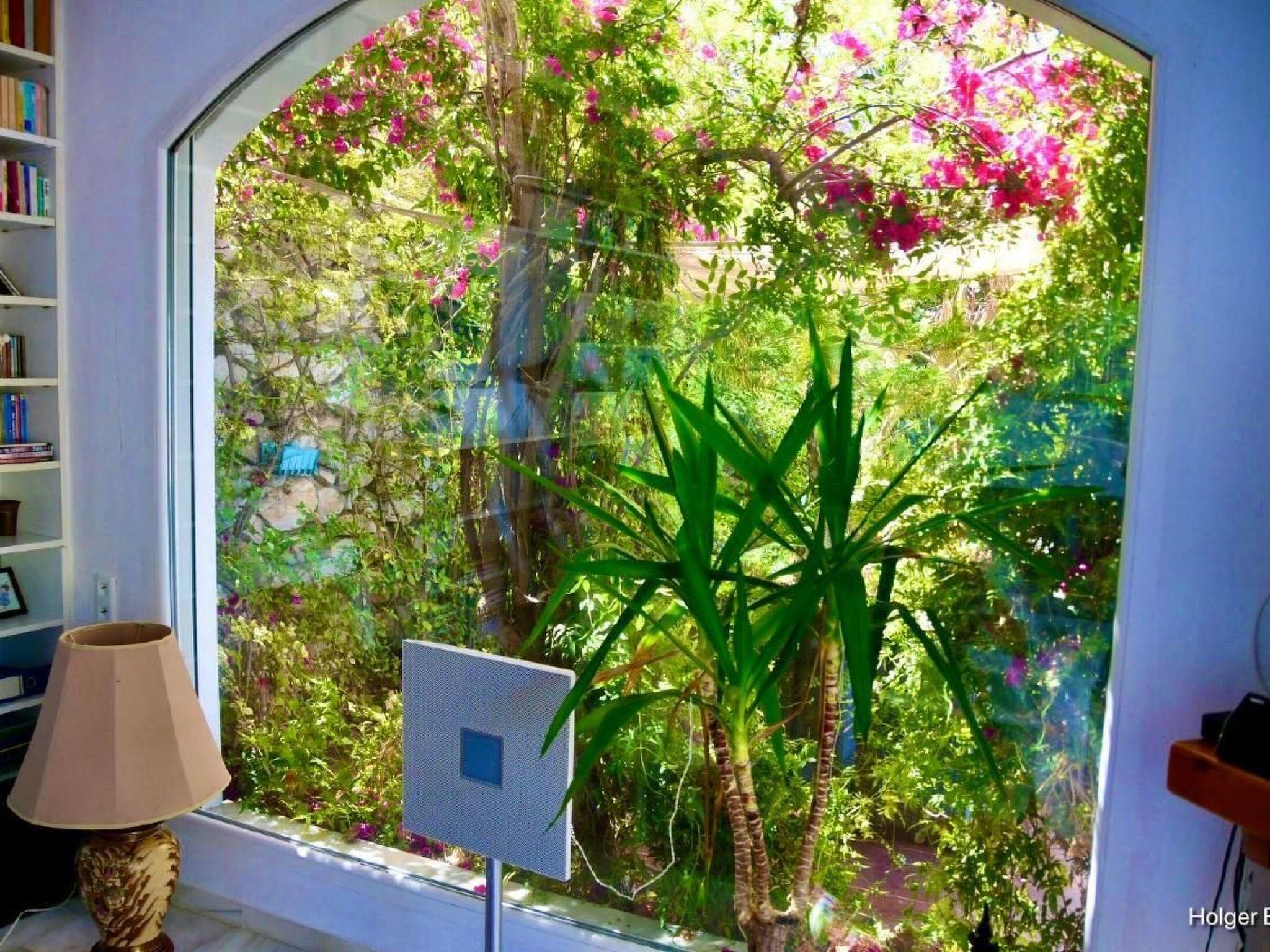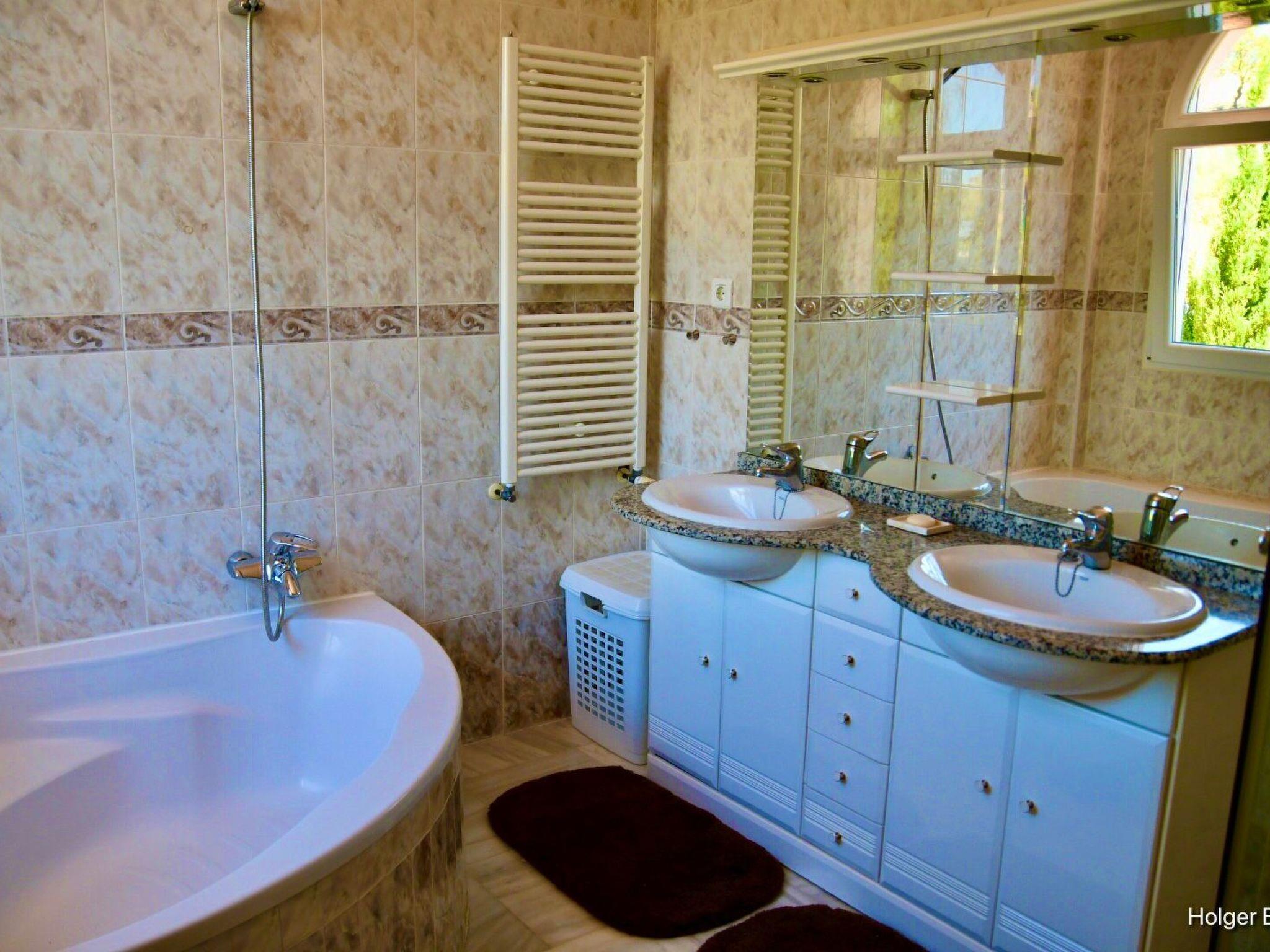 Inside, guests can expect top furnishings that leave nothing to be desired. The spacious living room with a cosy corner sofa by the fireplace invites you to relax while you enjoy the view or enjoy the wide range of entertainment, consisting of German TV, music, CD, DVD, MP3 player, I-Pod connection, Apple TV and a soundbar. The open-plan kitchen adjoins the dining room, which is furnished with a large wooden table for up to 12 people, but where outdoor dining is usually favoured, accompanied by enchanting views of the Mediterranean and the surrounding countryside. Comfort is also provided by the two bedrooms, each with en-suite bathrooms and beds from which you can enjoy breathtaking views of the sea and the countryside.