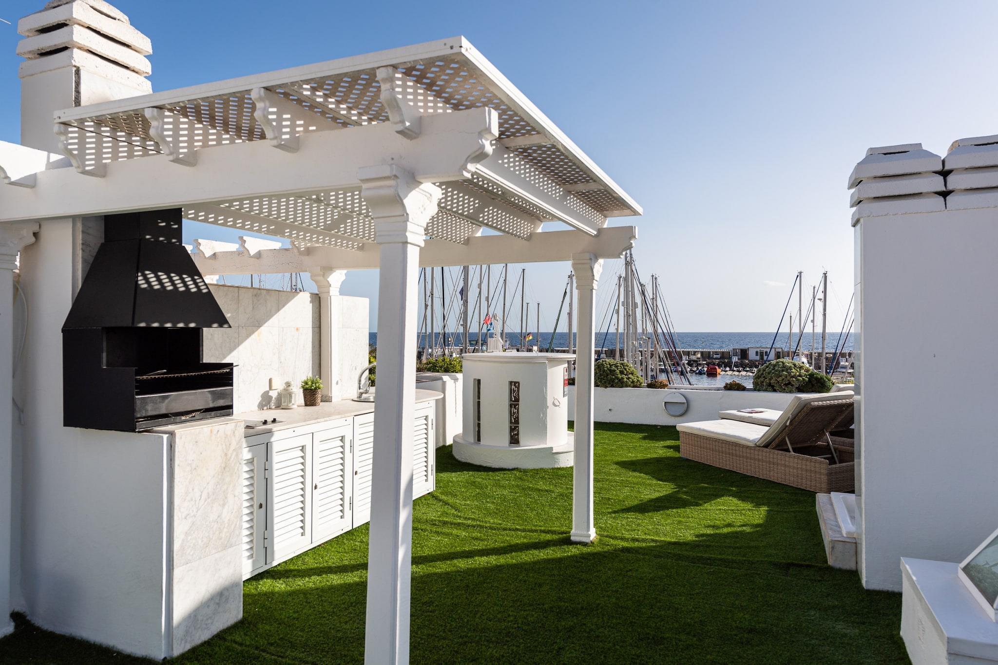 Oplev ro og betagende solopgange på denne charmerende indkvartering i Puerto de Mogán, ofte omtalt som "Lille Venedig" på De Kanariske Øer. Med en privat terrasse med udsigt over lystbådehavnen er dette hyggelige hus med to soveværelser og to badeværelser det perfekte sted for dem, der sætter pris på en fantastisk udsigt og fredfyldte omgivelser. Det er designet til din komfort og har faciliteter såsom ubegrænset Wi-Fi, et smart-tv og aircondition overalt. Du kan slappe af på balkonen, nyde den utrolige havudsigt eller slappe af på det private solarium udstyret med liggestole, en grill og en udendørs bruser, alt sammen let tilgængeligt, når du træder ind i ejendommen. Beliggende i en malerisk lystbådehavn tilbyder Mogán en række fremragende restauranter, supermarkeder og nødvendige faciliteter, hvilket gør det til et bekvemt sted for dit ophold. Dette fortryllende område i den sydvestlige del af Gran Canaria fremviser en harmonisk blanding af både, fiskefartøjer og yachter sammen med dens uberørte hvide sandstrand, hvilket styrker dens status som et af de mest tiltalende turiststeder på øen. Kendt for at have et af de bedste klimaer i verden, er det et idyllisk sted for en ferie. Bemærk venligst, at denne ejendom er beliggende i et boligområde, hvor stilhed og hensyn til naboer er i højsædet. En baby op til to år kan overnatte gratis i en barneseng, og en høj stol er tilgængelig efter anmodning.