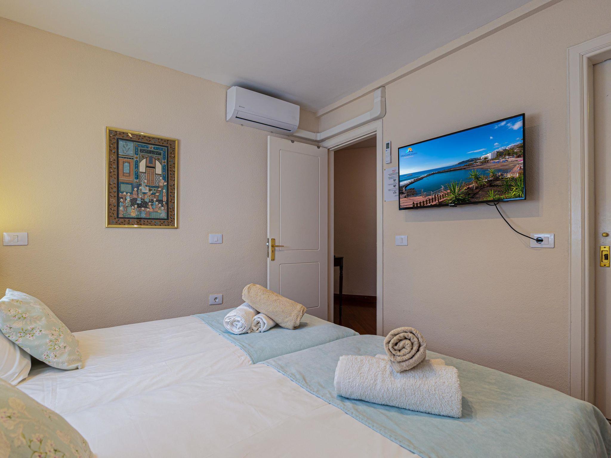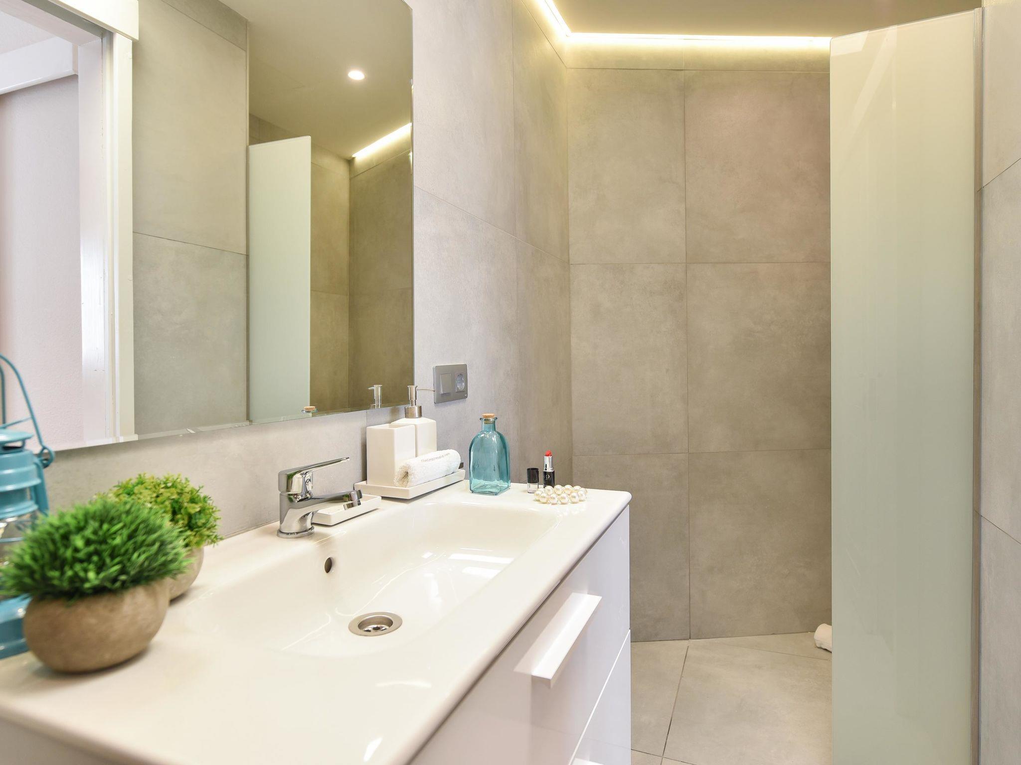 "Villa Sun Cay", 5-room house 280 m2. Simple and comfortable furnishings: living room with digital TV and air conditioning. Exit to the terrace. 1 room with 1 french bed, shower/WC and air conditioning. 3 rooms, each room with 2 beds. Kitchen-/living room (oven, dishwasher, 3 ceramic glass hob hotplates, toaster, kettle, microwave, freezer, electric coffee machine, Capsules for coffee machine (Nespresso) extra) with dining table. Exit to the terrace. Shower/WC. Large terrace. Terrace furniture, barbecue, deck chairs. Of the forest. Facilities: washing machine, safe, iron, children's high chair, baby cot for up to 2 year olds, hair dryer. Internet (WiFi, free). Garage (1 car). Please note: non-smoking house. Maximum 1 pet/ dog allowed. 2022-T13754 // Reg. Nr.: ESFCTU0000350120000699900000000000000VV-35-1-00173001
