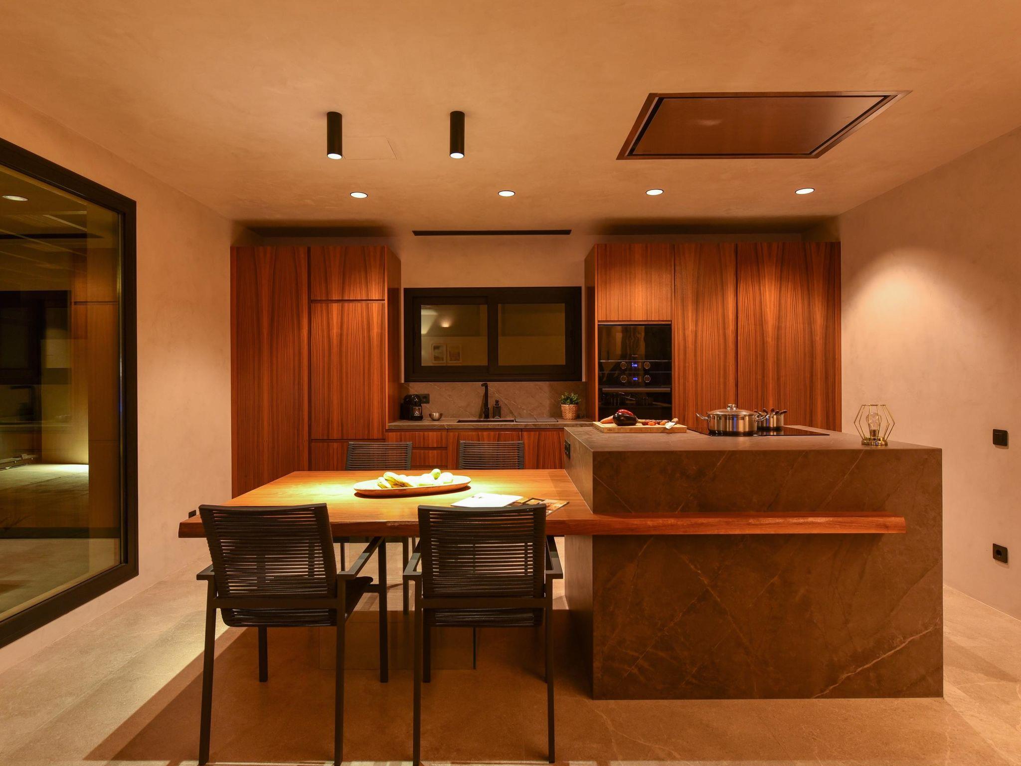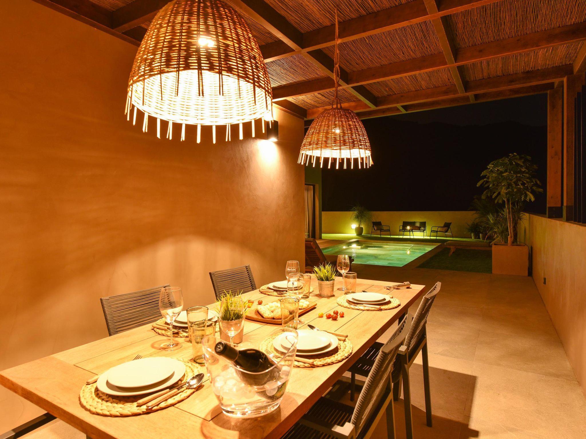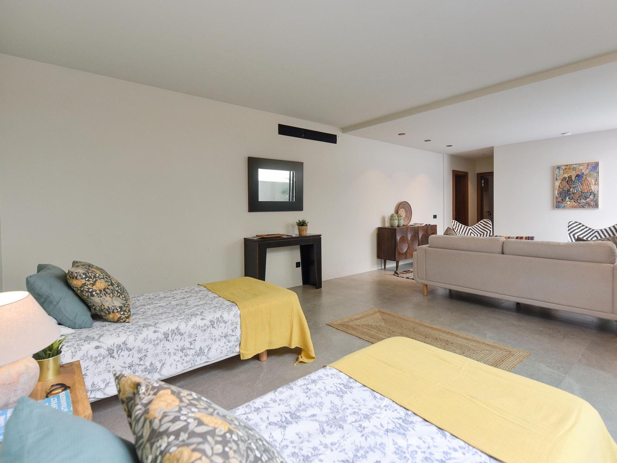 "Almadies Tauro", 5-room house 180 m2. Comfortable and modern furnishings: living/dining room with digital TV and air conditioning. Exit to the patio, to the swimming pool. 1 room with 1 french bed, shower/WC and air conditioning. Exit to the garden, to the swimming pool. 1 room with 2 beds and air conditioning. Kitchen-/living room (oven, dishwasher, 3 ceramic glass hob hotplates, kettle, microwave, freezer, electric coffee machine). Shower/WC. On the lower ground floor: 2 rooms, each room with 1 french bed, shower/WC and air conditioning. Patio. Terrace furniture, barbecue, deck chairs. View of the mountains. Facilities: washing machine, iron, children's high chair, baby cot for up to 2 year olds. Internet (WiFi, free). Garage (1 car). Please note: non-smoking house. 2024-T13526 // Reg. Nr.: ESFCTU0000350210004338090000000000000VV-35-1-00180652
