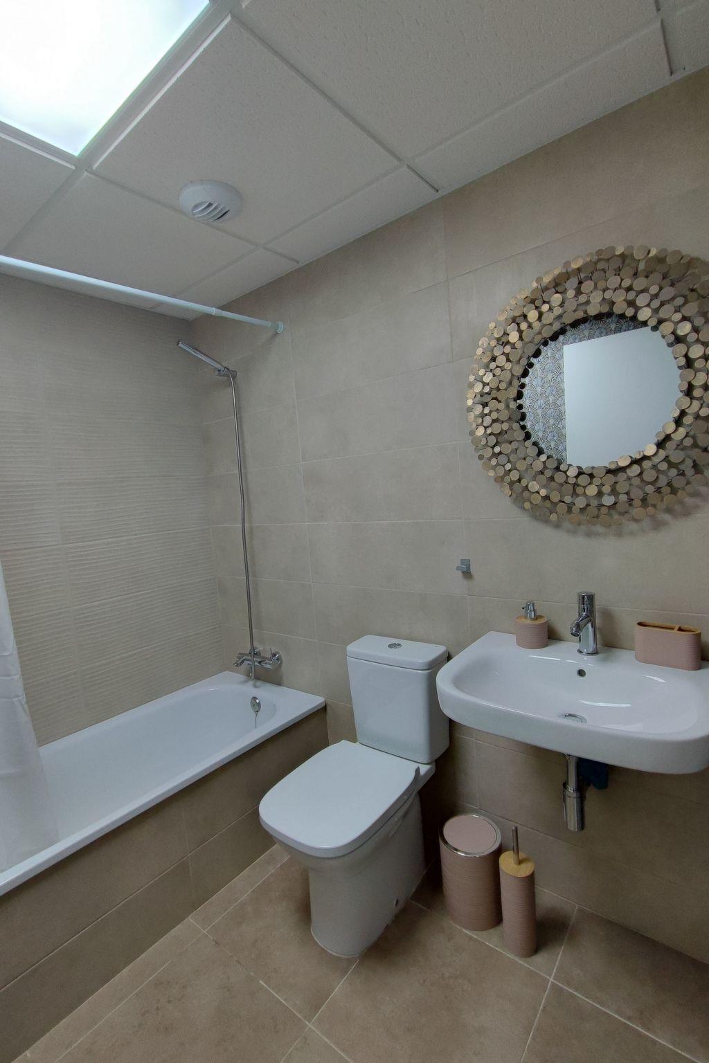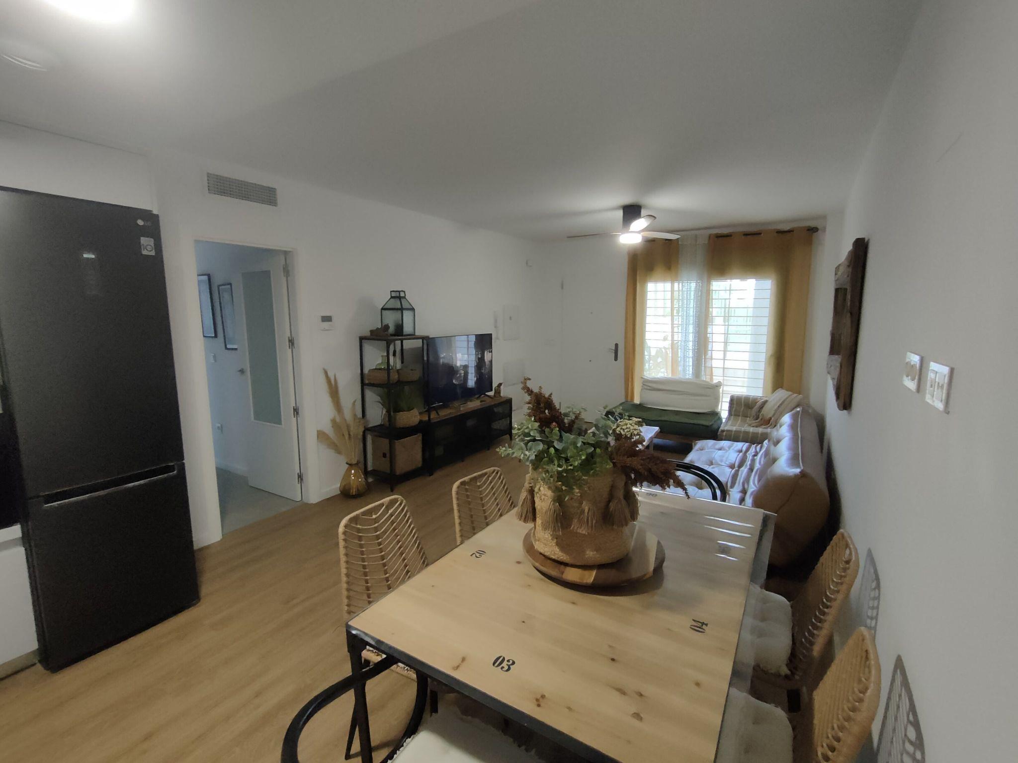 It is a 60m2 flat with two bedrooms: one with a 150cm bed and private bathroom, another bedroom with two 90cm beds on a tatami type base that you can transform into a 180cm bed. Both bedrooms have built-in wardrobes. There are two bathrooms: one common and one private to one of the bedrooms. There is a living room/kitchen with direct access to the terrace. All the big and small appliances at your disposal. In the living room you have a sofa that converts into a 135 cm bed, as well as a 55" TV with streaming channels and digital tuner to watch European digital channels and a 600mb wifi with the possibility of cable network. In addition to having air conditioning / central heating in all rooms.