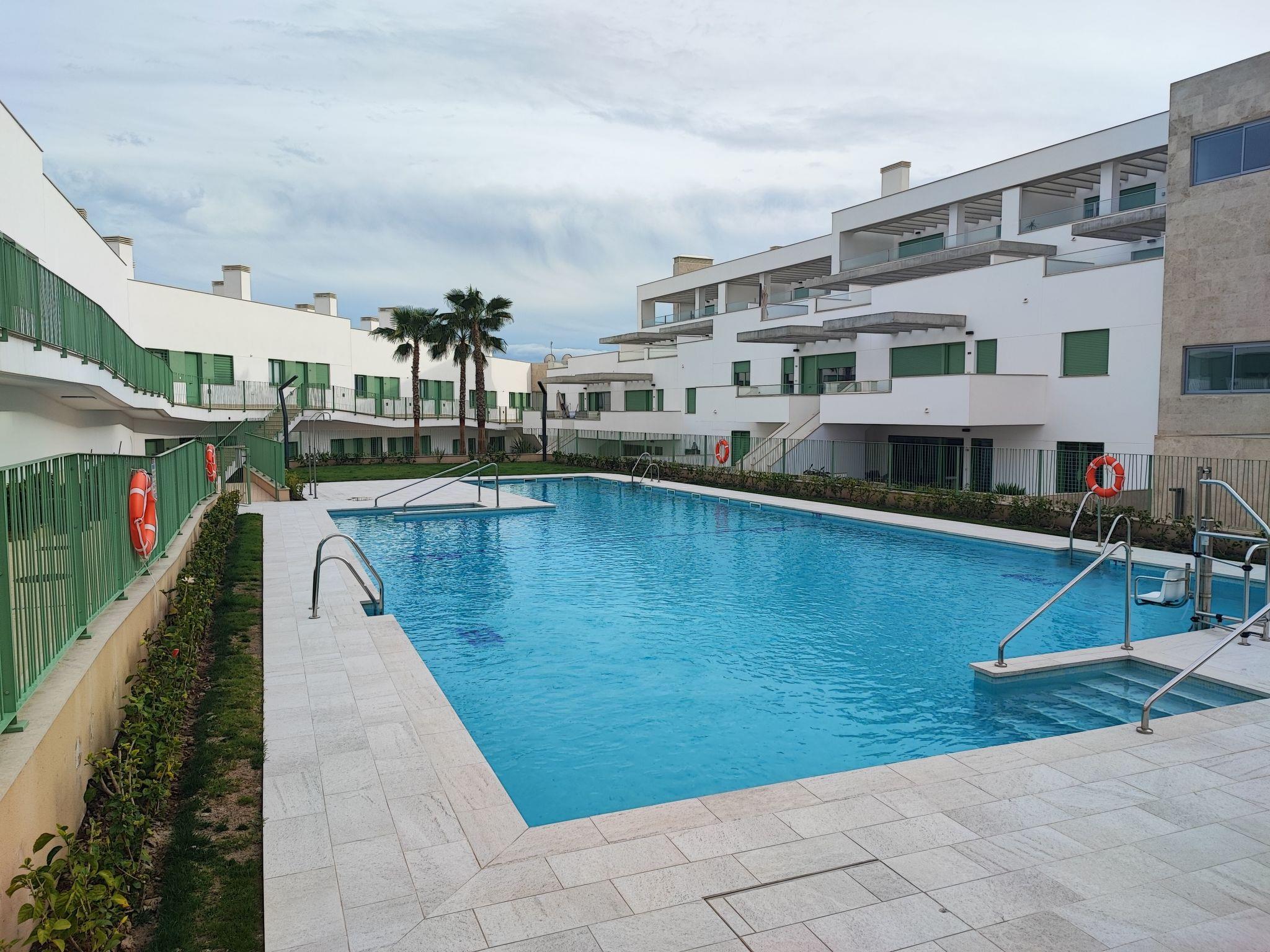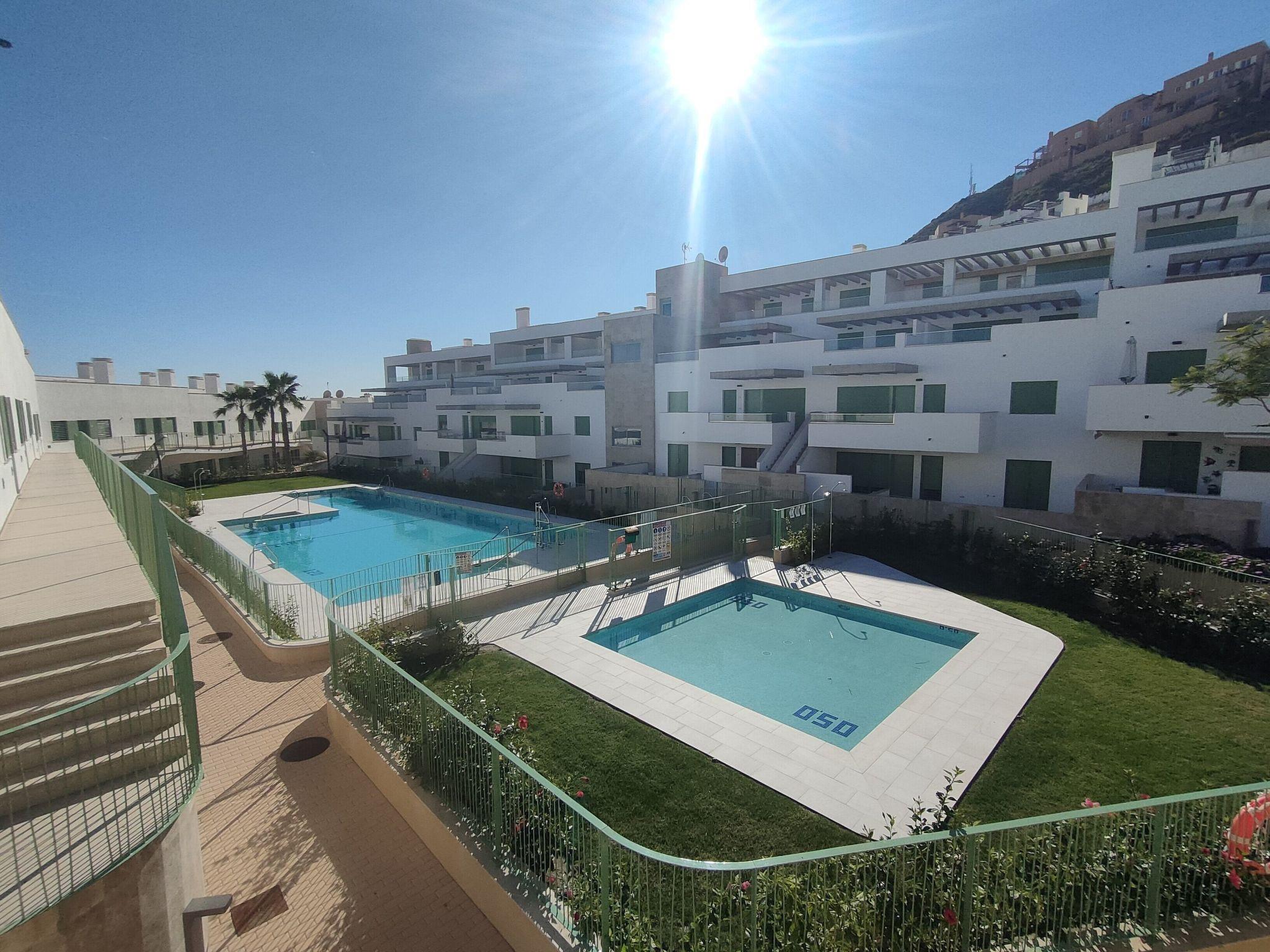 The flat is in ground floor, in corner, all exterior and with a lot of light, community swimming pools, views to the mountain and partial views to the beach, with all the services that you can imagine and in a very quiet area of Mojacar, 2 minutes from a big sandy beach and in an area with more than 330 days of sun. It has direct access to the street on the side.