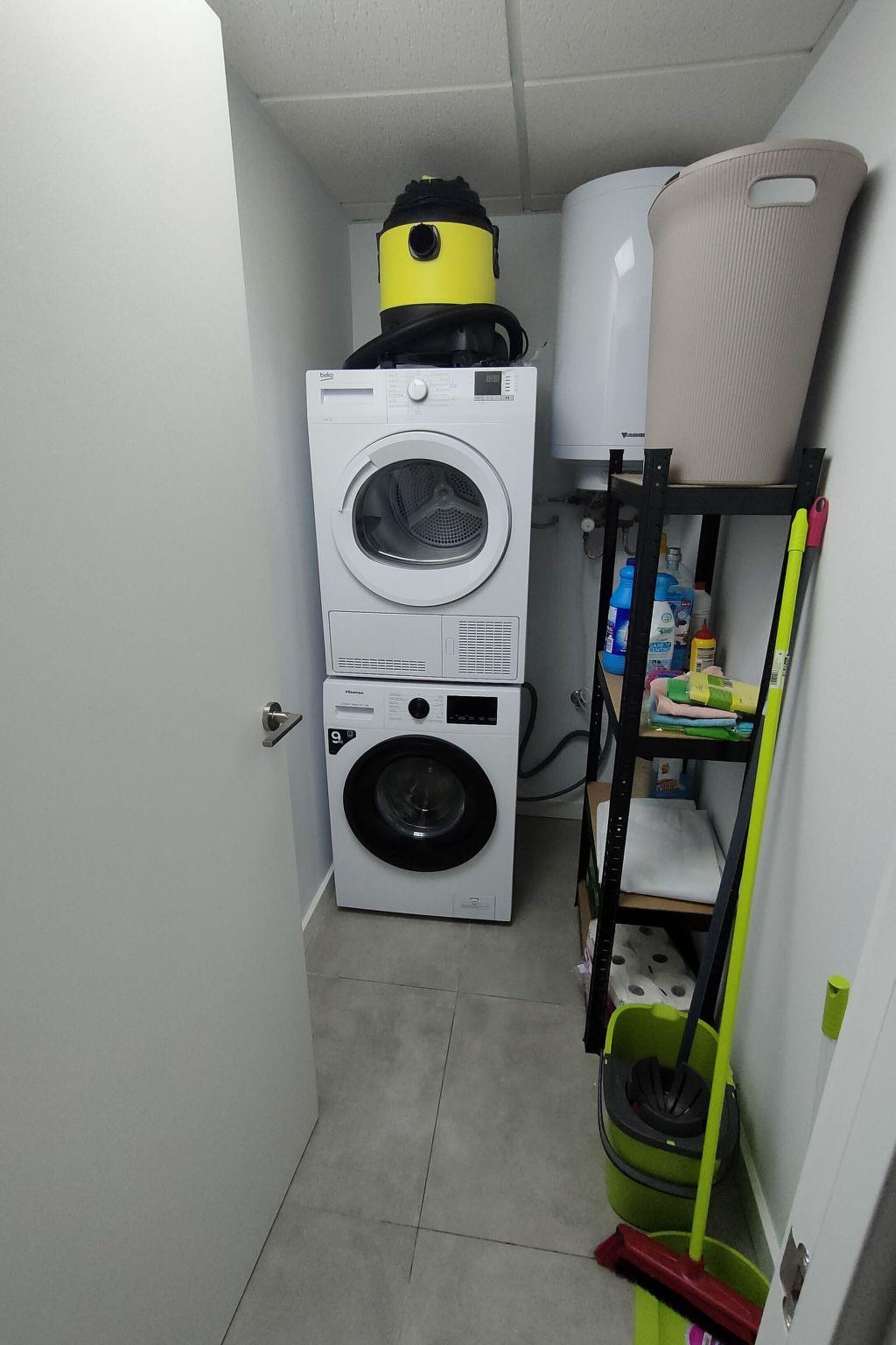 There is a home space where the washing machine, tumble dryer, beach chairs and umbrellas, laundry bucket, cleaning products, hoover etc. are located.