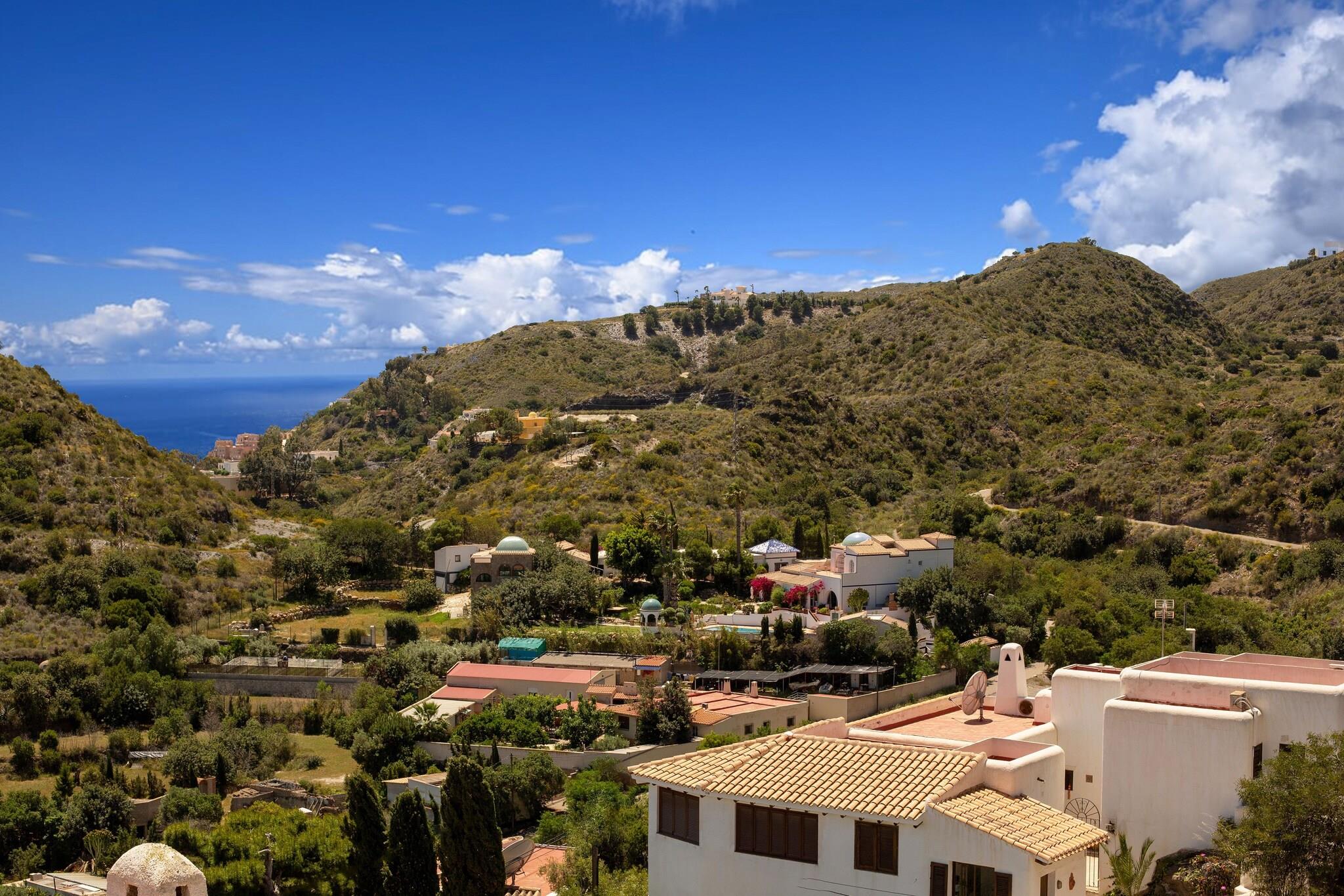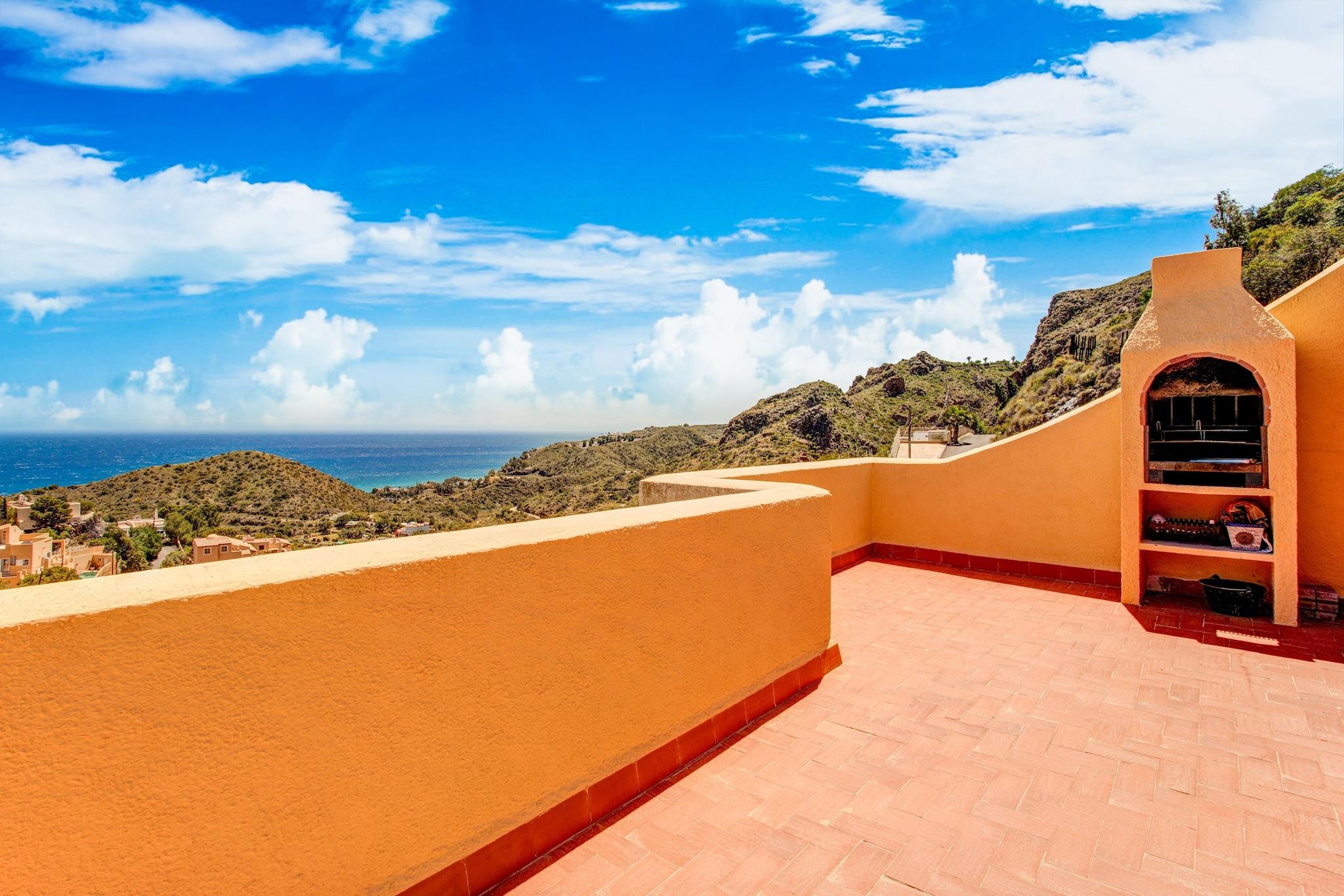 Højt beliggende over Mojácar Playa tilbyder dette charmerende feriehus udsigt fra første række over både de barske bjerge og det glitrende hav, en uforglemmelig kulisse for en afslappende ferie. Fordelt på to etager åbner indgangen ud til en lys, indbydende opholds- og spisestue, der naturligt flyder ud til en delvist overdækket terrasse. Uanset om du nipper til morgenkaffen eller slapper af ved solnedgang, føles panoramaet som dit eget private postkort. Ideelt til en lille familie, er det et fredeligt gemmested, hvor komfort møder betagende landskaber. Trods sin rolige beliggenhed ligger huset kun 2,5 km fra den livlige rytme i Mojácar Playa. Inden for en kort køretur finder du sandstrande, caféer og en fremragende blanding af restauranter, der serverer alt fra middelhavsretter til internationale favoritter. Du kan nyde stilheden på en bjergskråning, mens du bor tæt på alle de nødvendige butikker, strandbarer og lokale attraktioner. Indenfor gør det fuldt udstyrede køkken det nemt at lave hjemmelavede måltider med direkte adgang til en overdækket terrasse med servering. Udenfor inviterer terrassen til lange middage under åben himmel, komplet med grill, udendørs bord og uforstyrret udsigt, der strækker sig til horisonten. Både soveværelser og stuen har aircondition for komfort på varme spanske dage, og der er gratis parkering lige ved siden af huset. Et hyggeligt tilflugtssted med uovertruffen udsigt, perfekt til at slappe af og nyde Mojácars skønhed.