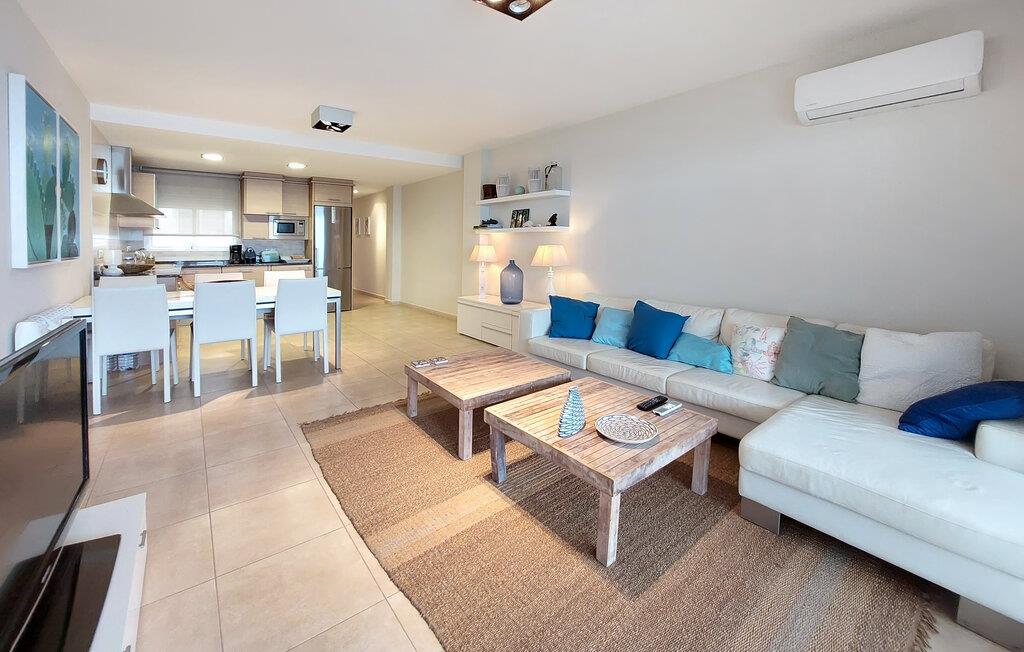 Leder I efter en rummelig, veludstyret lejlighed med en dejlig beliggenhed til en ferie tæt på strand, natur og god mad? Så træd blot nærmere! Indretningen i denne lejlighed fremstår flot og moderne med et maritmt strejf, der danner rammen om et helt og aldeles fremragende ophold i det spanske. På terrassen kan I tage en rar pause fra stranden og nyde en god frokost med panoramaudsigt over havet.