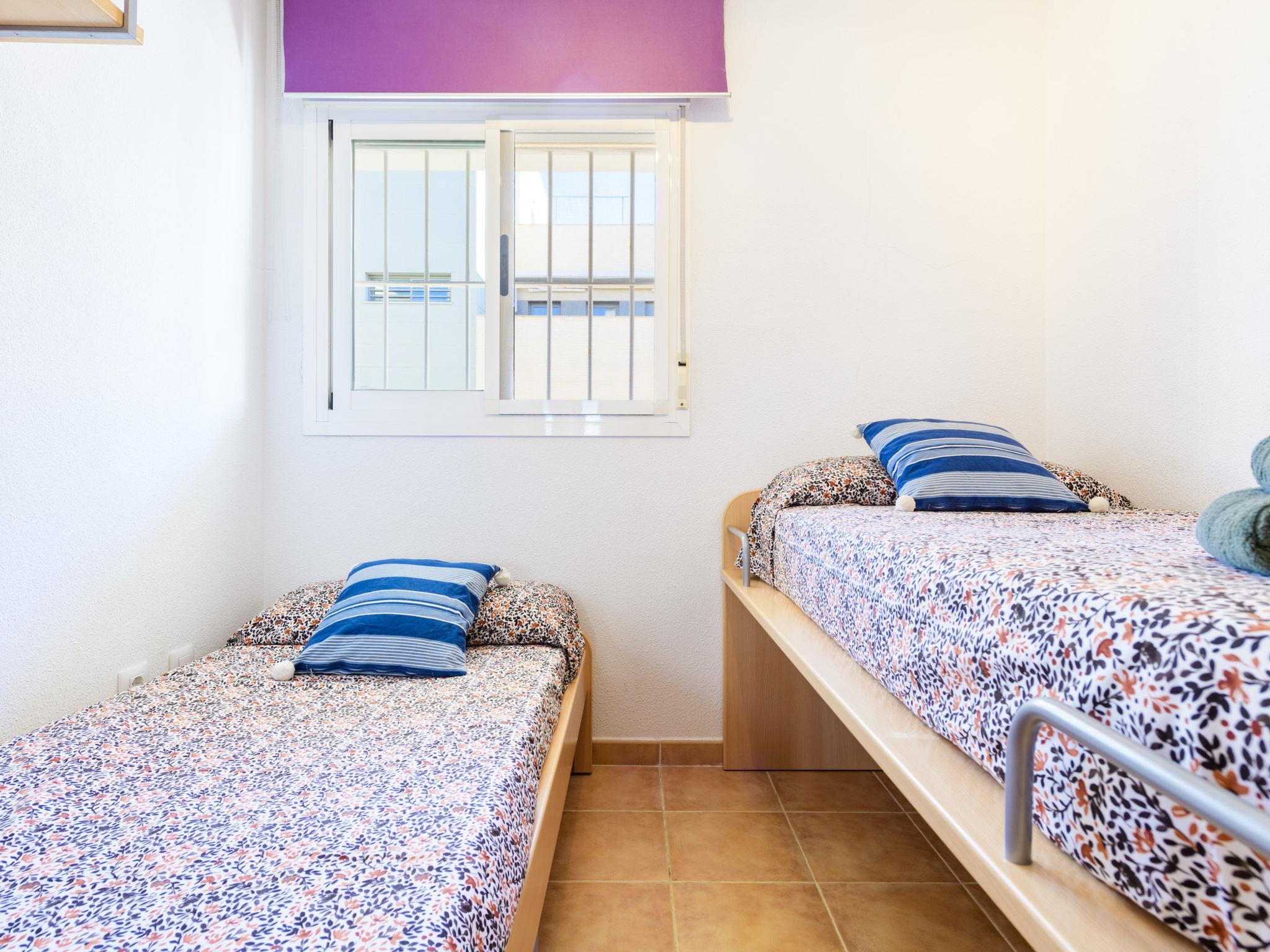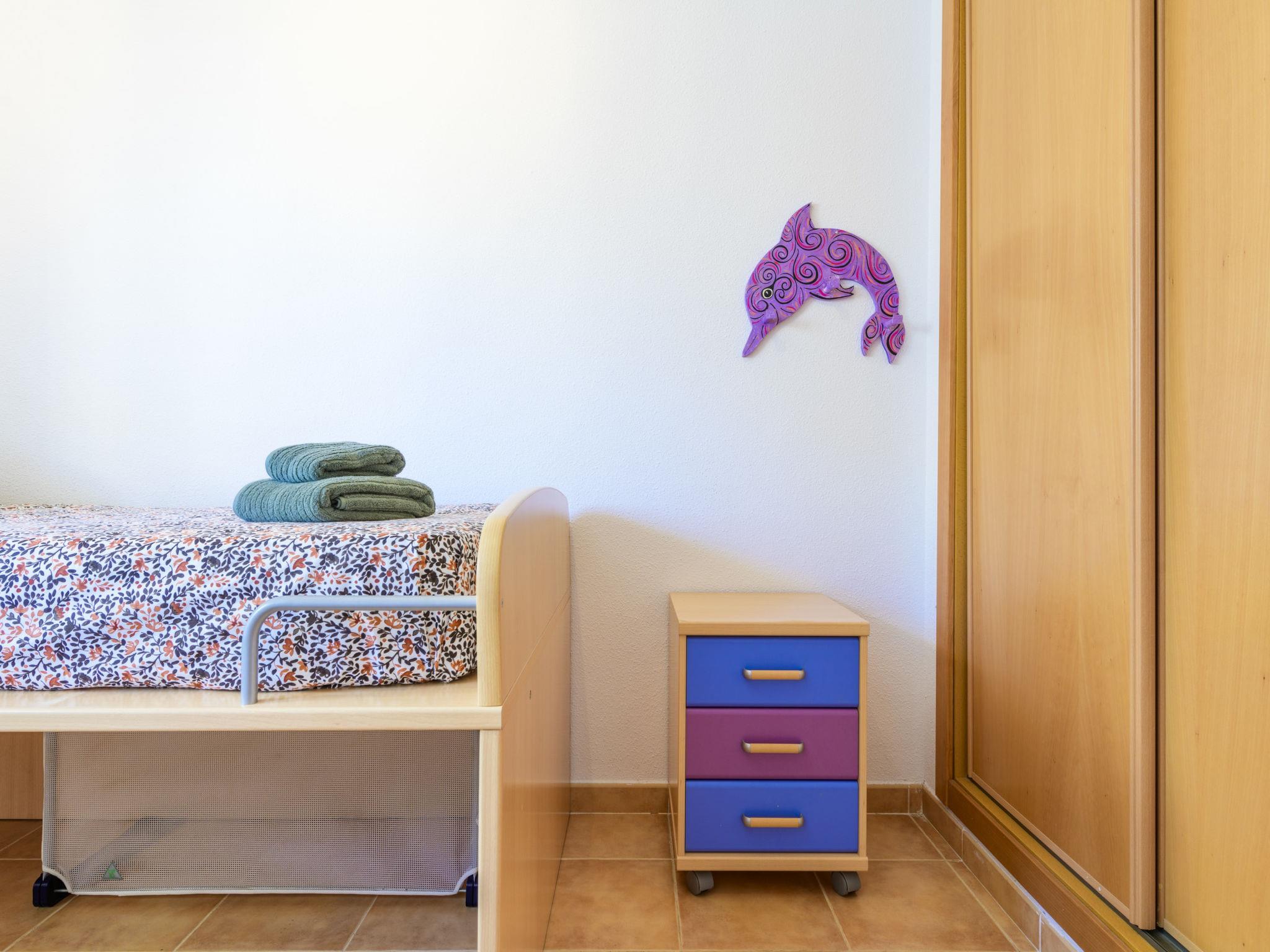 "Las Dunas", 3-room apartment 60 m2 on 3rd floor. Practical and comfortable furnishings: living/dining room with dining table, digital TV, flat screen and fan. Exit to the terrace. 1 room with 1 french bed (150 cm, length 190 cm), fan. 1 room with 2 beds (90 cm, length 190 cm), fan. Kitchen (oven, 4 ceramic glass hob hotplates, microwave, freezer) with hatch. Bath/bidet/WC. Electric heating. Terrace. Terrace furniture. View of the sea and the swimming pool. Facilities: washing machine, iron, hair dryer. Parking (roofed) at the house. Please note: non-smokers only. VT-42214-CS // Reg. Nr.: ESFCTU00001201600053971100000000000000000VT-42214-CS9