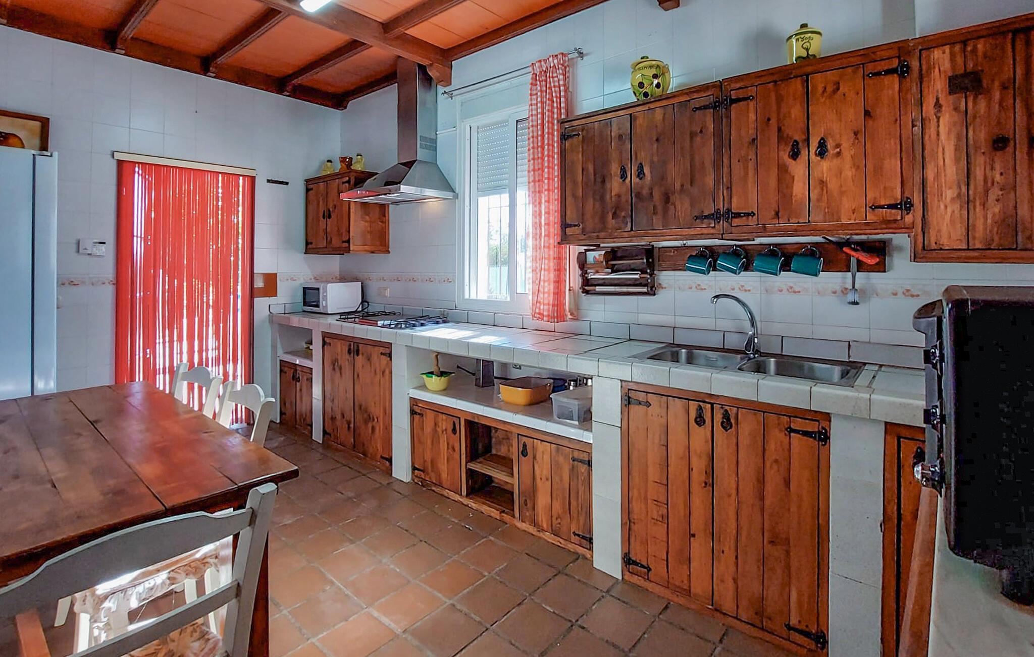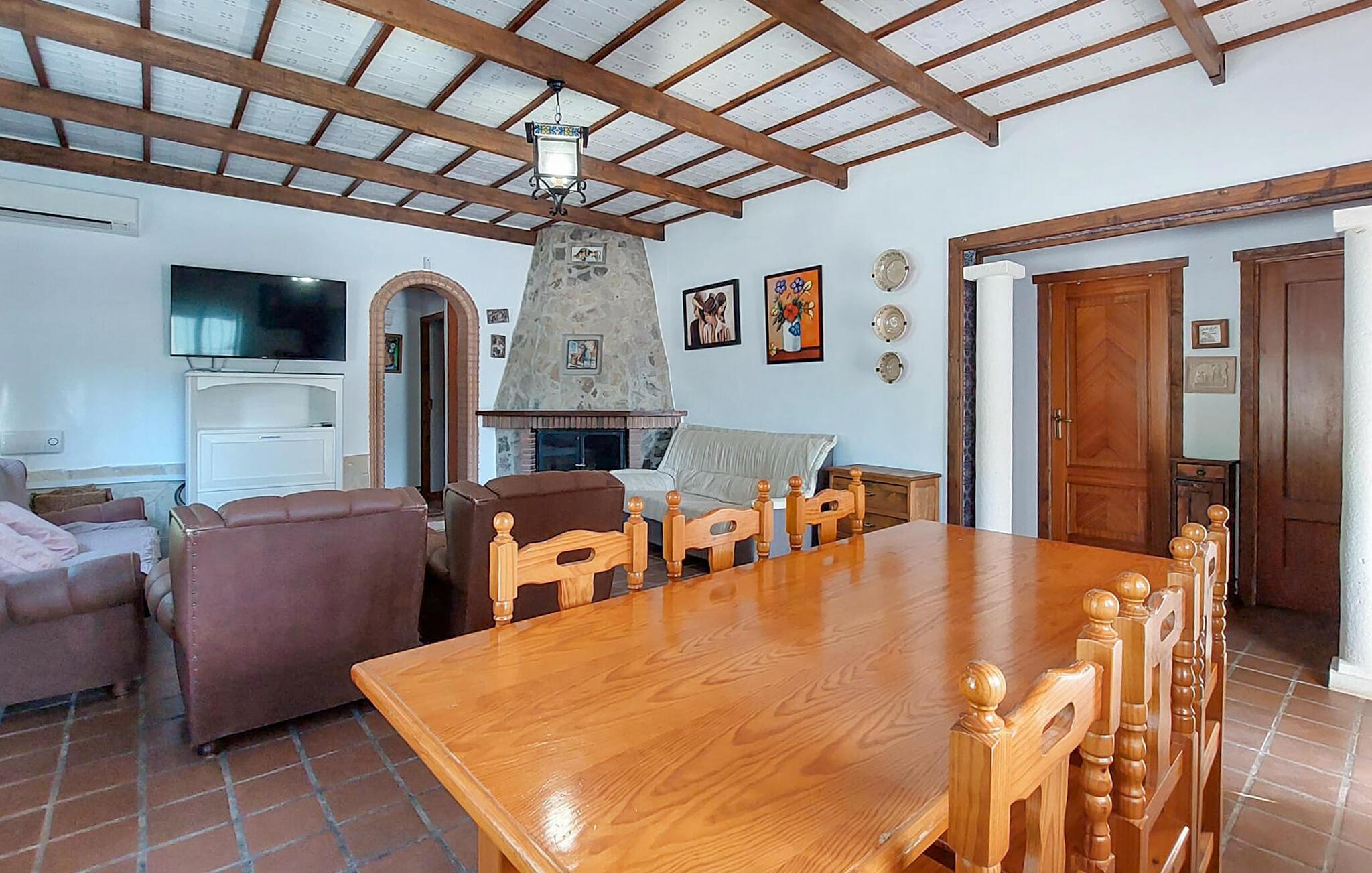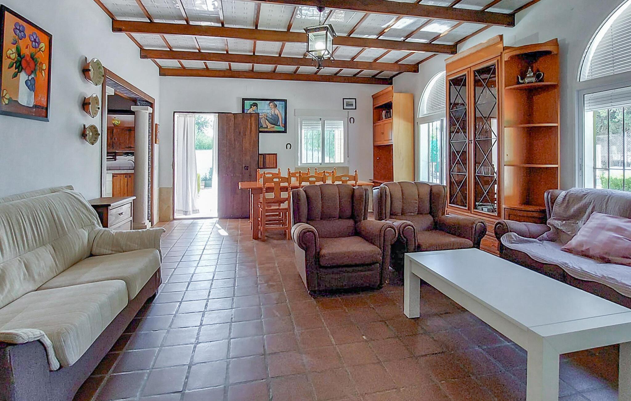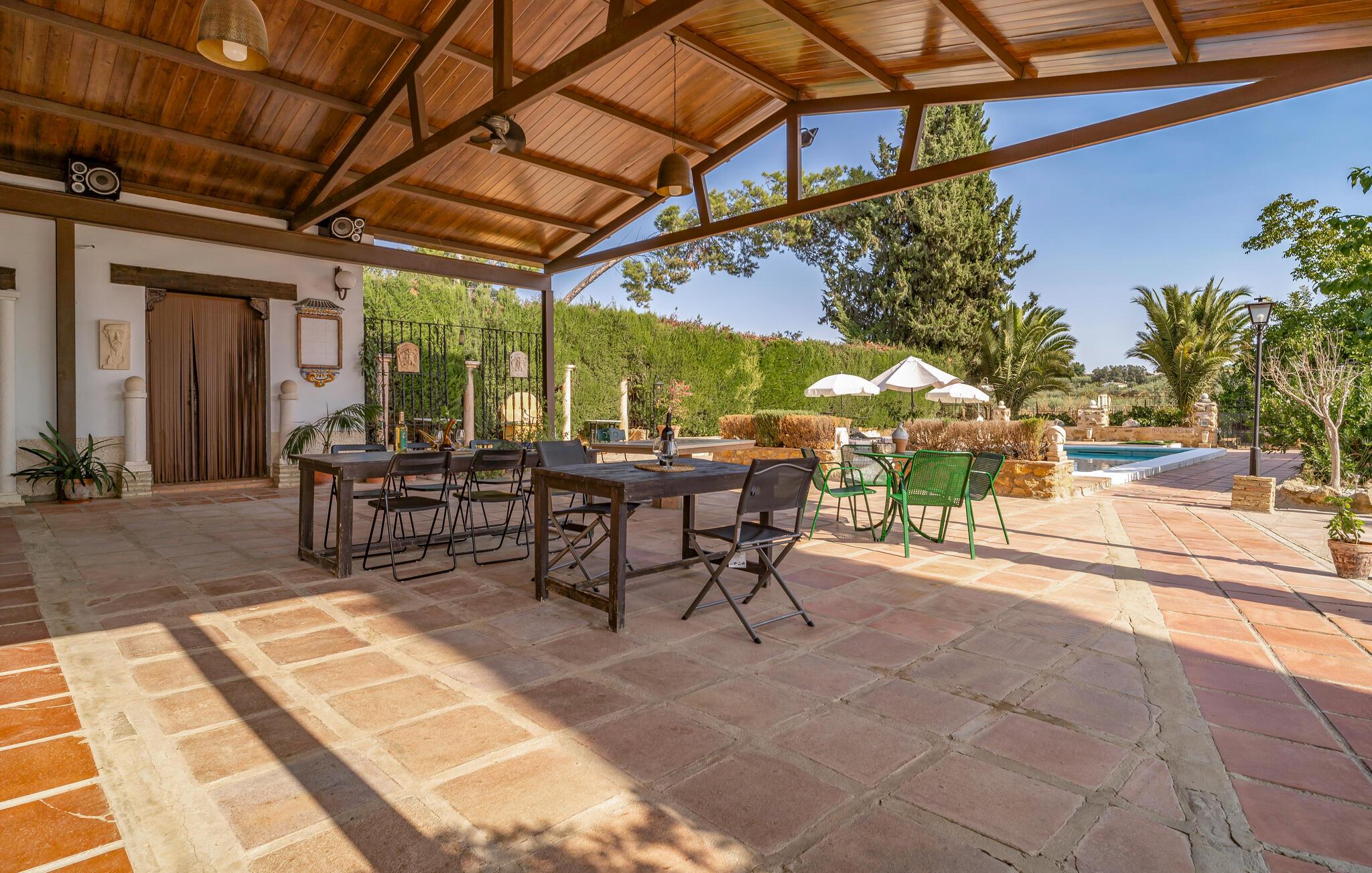 Start dagen i jeres feriehus i Montilla, nord for Malaga, med morgenmad på den rummelige overdækkede terrasse, mens I nyder udsigten til den indbydende pool. Gør jer det behageligt på en af solvognene, eller tag en forfriskende dukkert i poolen for at starte dagen afslappet. Den rummelige stue inviterer til afslapning. Nyd den hyggelige atmosfære foran brændeovnen og den kærligt indrettede indretning med komfortable siddepladser.