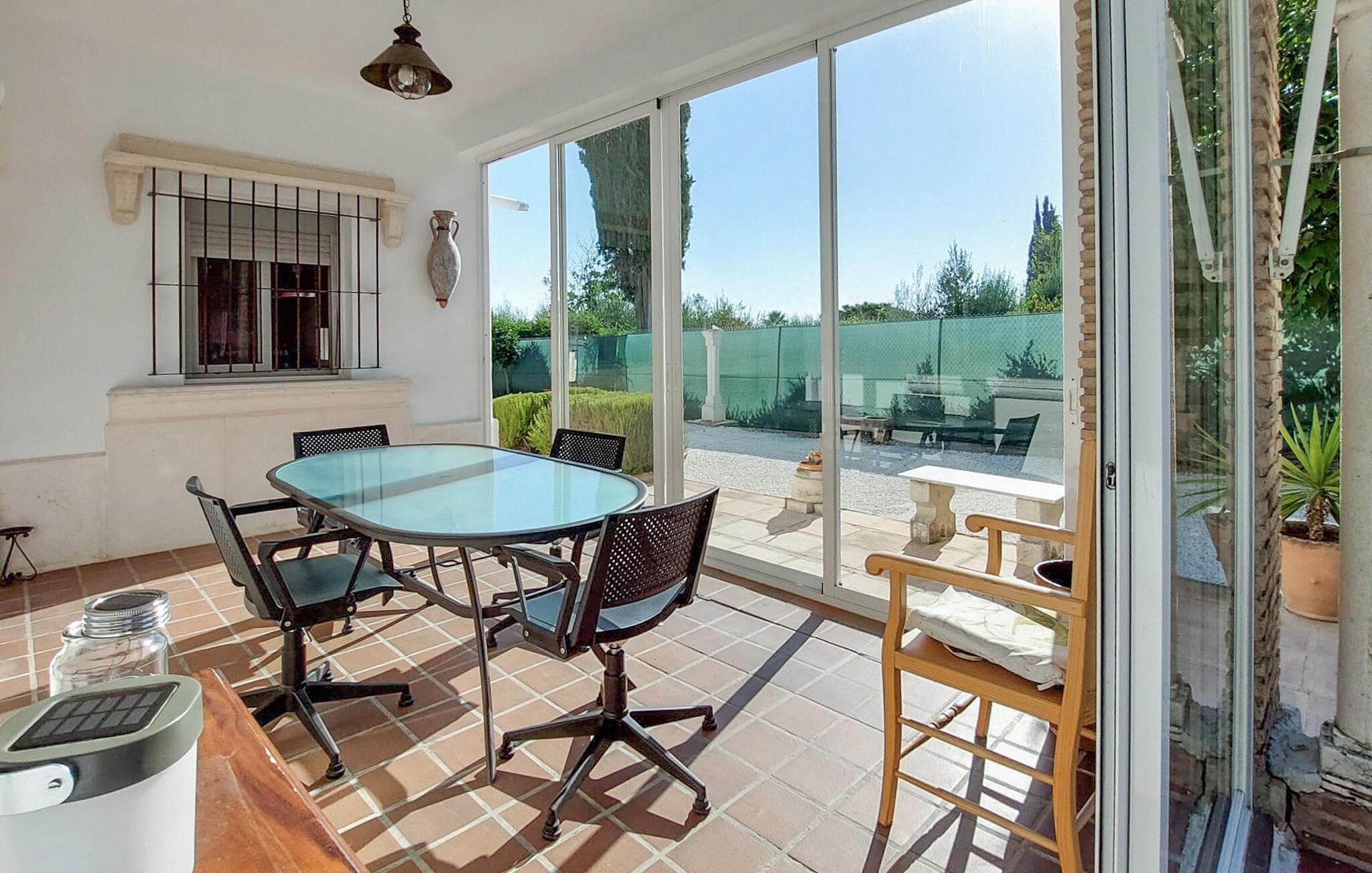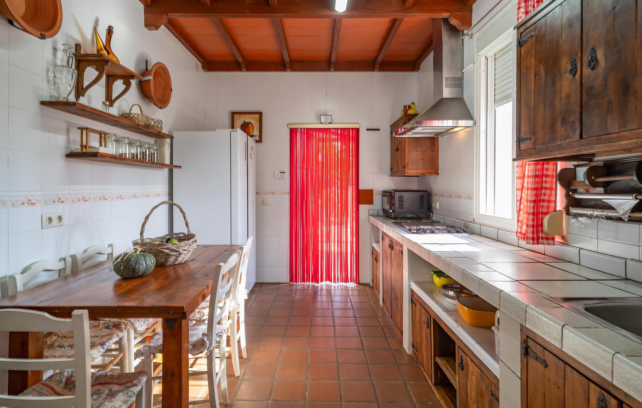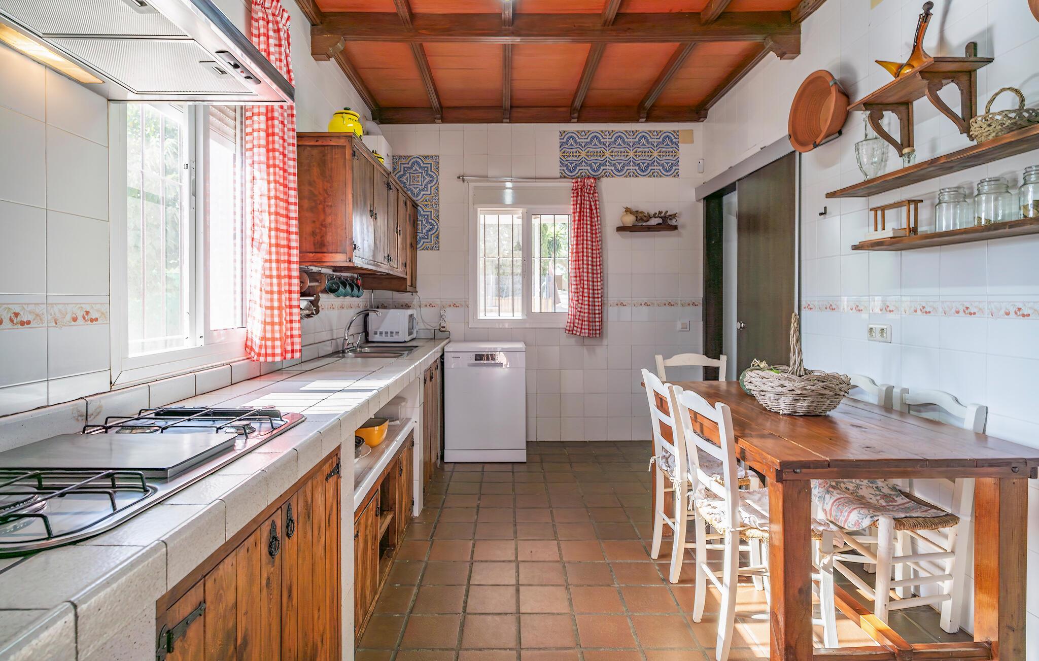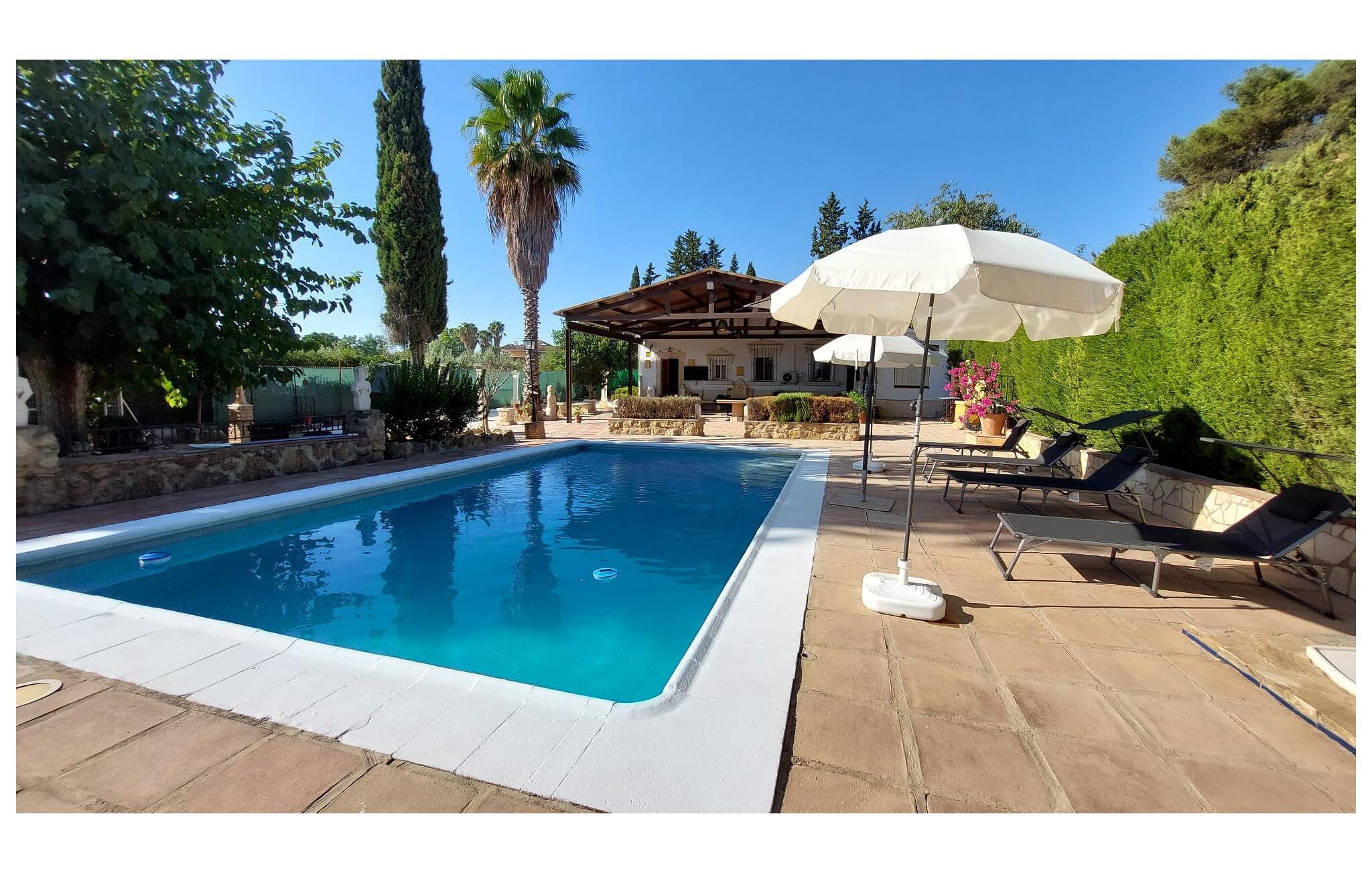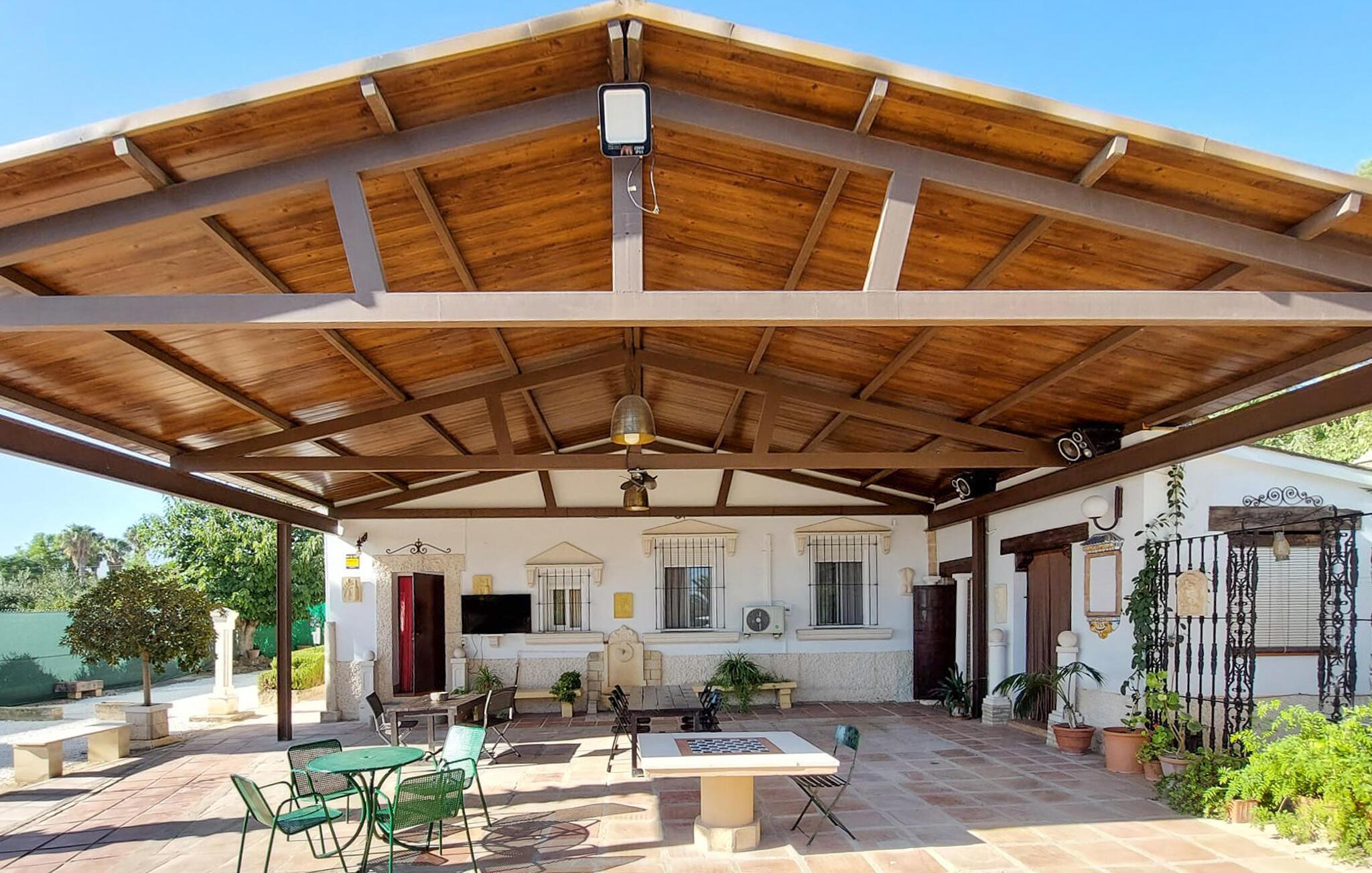Start dagen i jeres feriehus i Montilla, nord for Malaga, med morgenmad på den rummelige overdækkede terrasse, mens I nyder udsigten til den indbydende pool. Gør jer det behageligt på en af solvognene, eller tag en forfriskende dukkert i poolen for at starte dagen afslappet. Den rummelige stue inviterer til afslapning. Nyd den hyggelige atmosfære foran brændeovnen og den kærligt indrettede indretning med komfortable siddepladser.