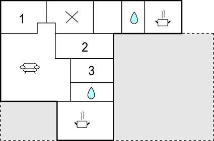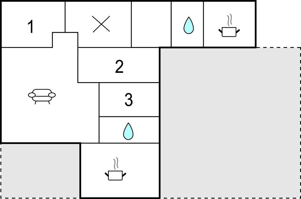 Badeværelse 4m2 (nr. 1) - WC. Varmt og koldt vand. Bruser
