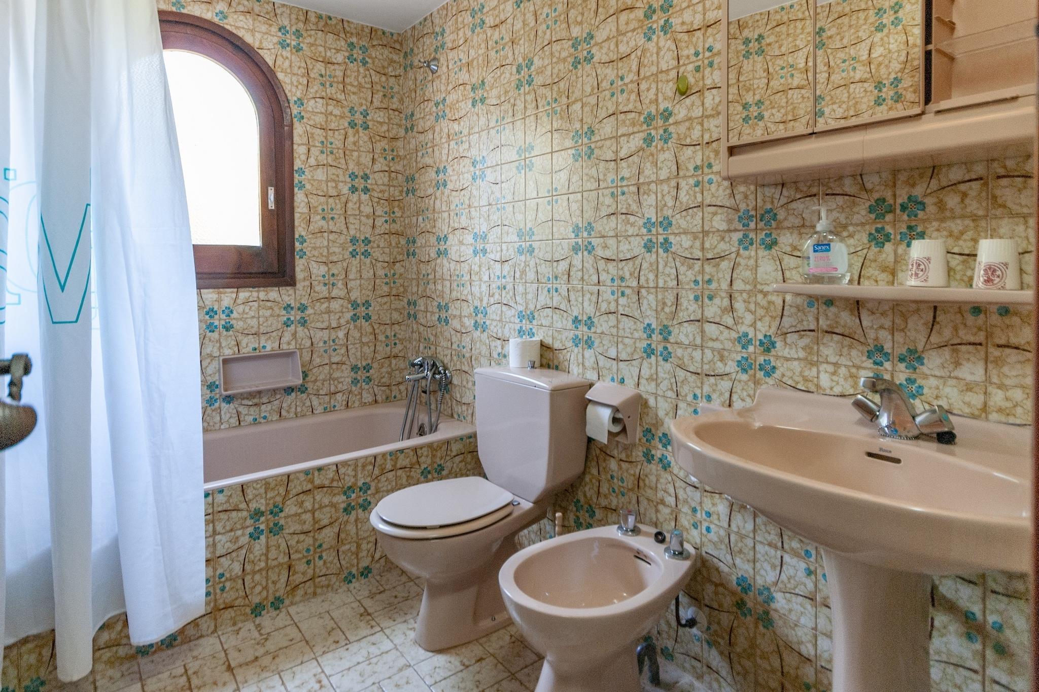 Stue(Fjernsyn(parabol)), åbent køkken(ovn, køle-fryseskab), soveværelse(2x enkeltseng), soveværelse(2x enkeltseng), soveværelse(dobbeltseng), badeværelse(badekar med bruser, håndvask, toilet, bidet), badeværelse(badekar med bruser, håndvask, toilet, bidet), balkon, have(deles med andre gæster), havemøbler, grill, parkering, barneseng(på anmodning), barnestol(på anmodning)