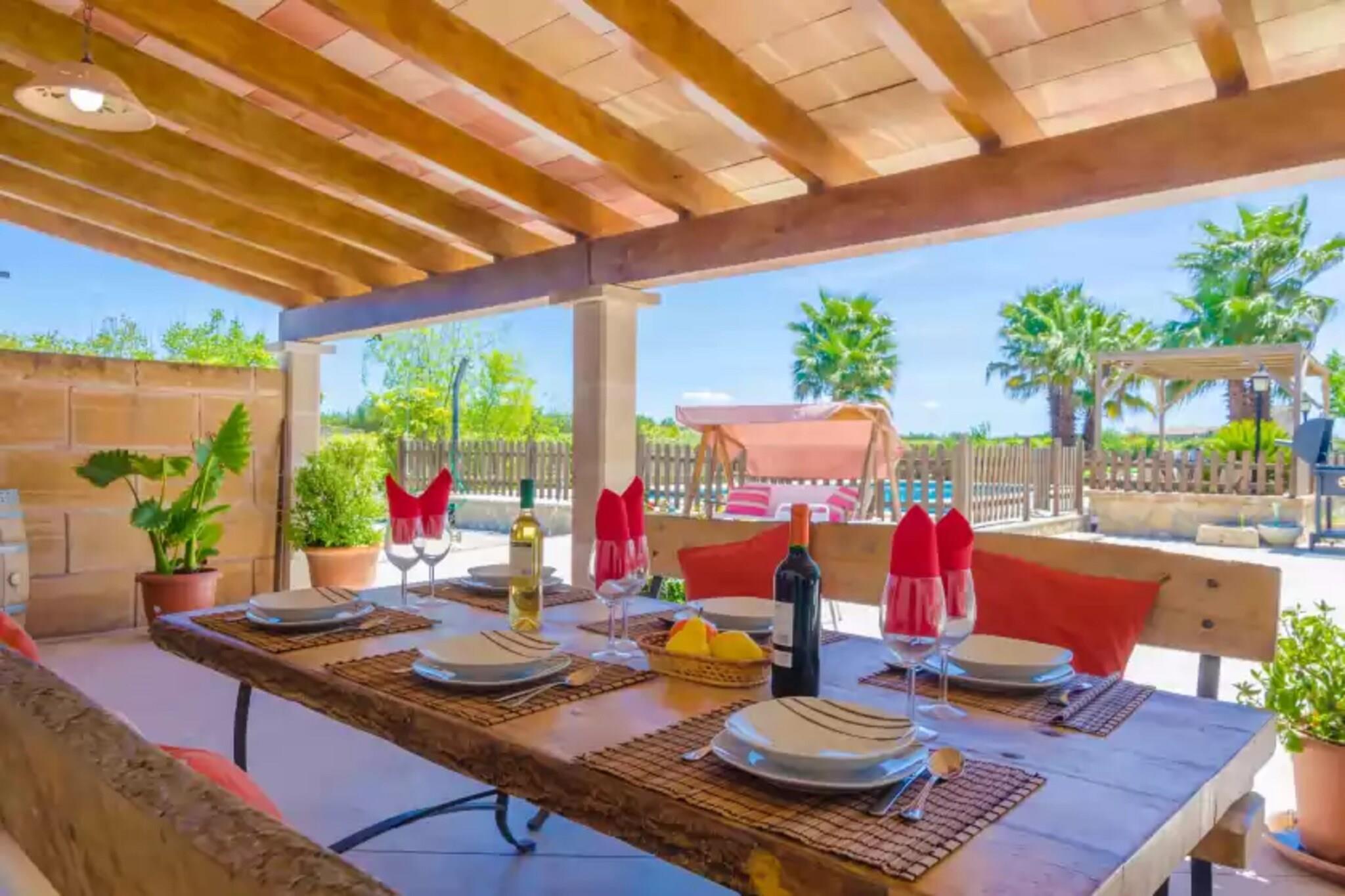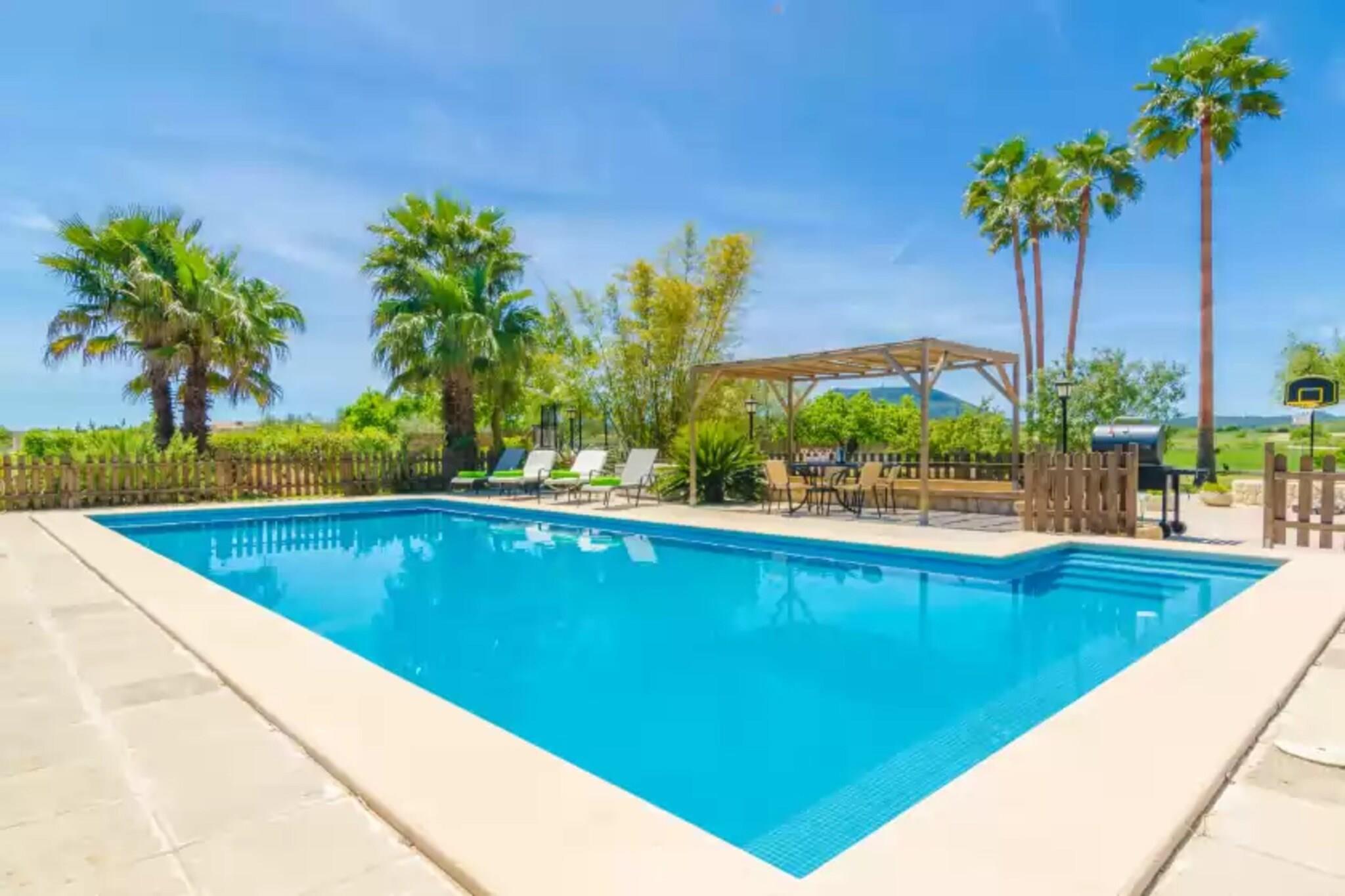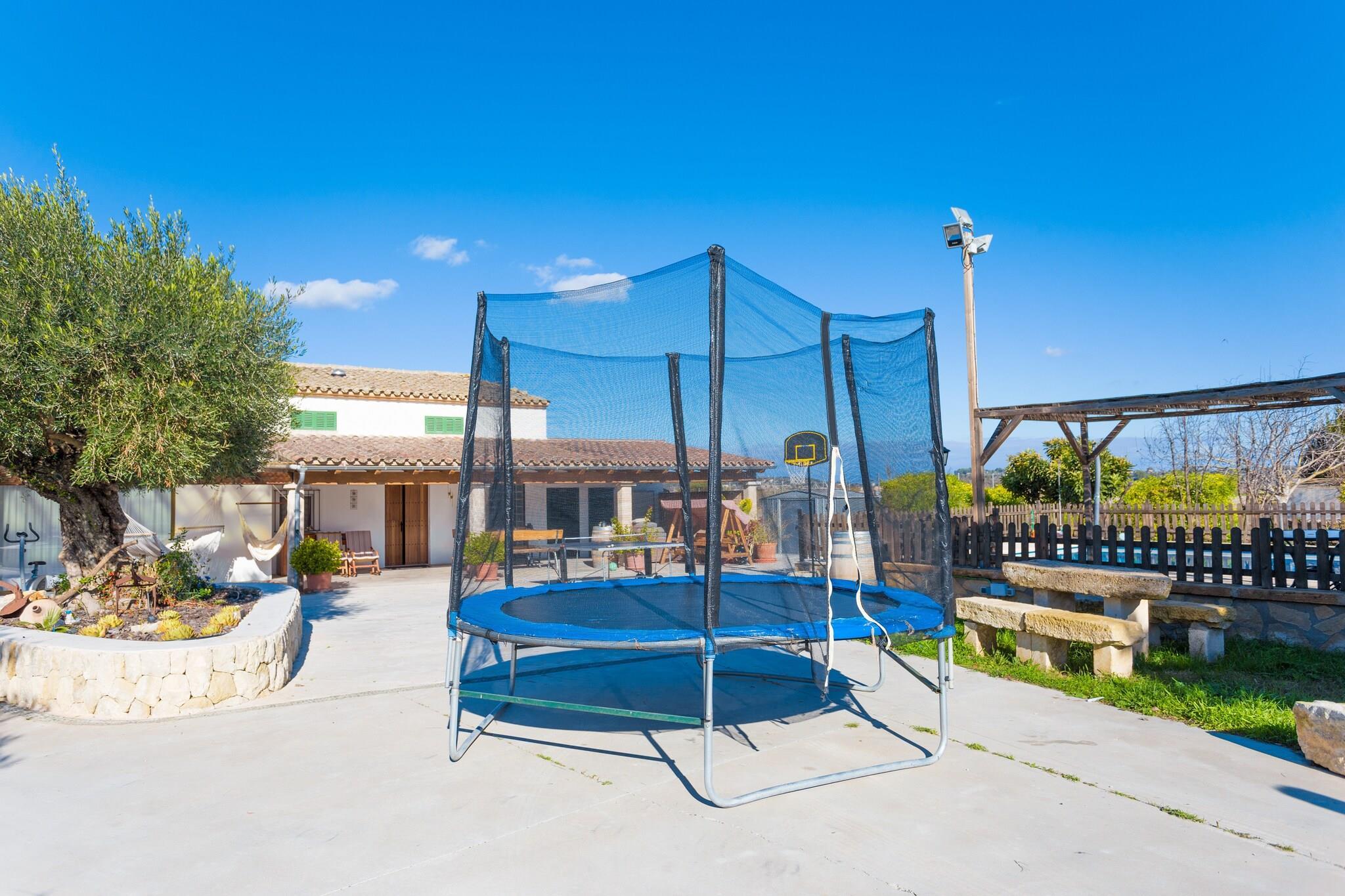 In dit prachtige, rustieke maar moderne huis kunt u genieten van de landelijke sfeer van het binnenland van Mallorca, maar toch dichtbij alles zijn. Buiten vinden we een indrukwekkend chloorbad van 12 x 5 meter en een diepte van 0,7 tot 1,9 meter. Het is omgeven door een prachtig terras met verschillende tafels en stoelen waar u 's middags vermout kunt nuttigen en hangmatten waar u comfortabel kunt zonnebaden. Vanaf het terras hebben we toegang tot de veranda die is ingericht met banken en oude gerestaureerde schommelstoelen waar u van de zonsondergang kunt genieten, en een rustieke en originele tafel waar u buiten kunt eten of dineren van de heerlijke gerechten bereid op de barbecue die tot uw beschikking staat. Voor de rustelozen is er een tafeltennistafel, een basketbalveld, een trampoline en zelfs een sauna. Het terrein van 3.400 m2 is omheind en hoewel er enkele buren in de omgeving zijn, is de privacy volledig. Het hele huis is verdeeld over één verdieping. Vanaf de prachtige veranda hebben we toegang tot het interieur van het huis dat de woonkamer en keuken in dezelfde ruimte verenigt. De huidige rustieke stijl wordt binnen voortgezet, in een ruimte met houten balken en stenen muren, satelliettelevisie, Wi-Fi-verbinding en airconditioning. Het heeft een eettafel voor zes personen die zich naast de keuken bevindt, die een keramische kookplaat heeft en is uitgerust met alles wat u nodig heeft om heerlijke zomerse stoofschotels te bereiden. Er staat ook een tafel met vier stoelen om comfortabel te ontbijten. Ook op de begane grond vinden we de drie slaapkamers. Twee hebben een tweepersoonsbed en de derde heeft een eenpersoonsbed. Alle drie zijn voorzien van airconditioning en ze hebben allemaal kasten of kleedkamers. U vindt twee volledige badkamers met douche om het hele huis te bedienen. Ook vindt u er een wasmachine, strijkijzer en strijkplank en als u met kinderen reist heeft u een kinderstoel en een kinderbedje tot uw beschikking. Montuiri is een klein stadje in het centrum van Mallorca, dicht bij alle delen van het eiland. U vindt middeleeuwse overblijfselen en prachtige landschappen waar u kunt genieten van de rust van het platteland. In de stad op 2 km afstand vindt u basisvoorzieningen, evenals enkele winkels en restaurants. Het dichtstbijzijnde strand is sa Rápita, op 30 km afstand. Voor eventuele extra kosten kunt u contact opnemen met de adverteerder. Wij accepteren geen huisdieren. Het vieren van evenementen is niet toegestaan. Er is buiten parkeergelegenheid voor 4 auto's. Afstanden Strand: 30,1 km - Platja de Se Rà pita Luchthaven: 23 km - Son Sant Joan Golfbaan: 22,8 km - Golf Son Gual Stad: 2 km - Montuiri Treinstation: 13,9 km - c/ de l'Estació, Sineu Bushalte: 2 km - Camà Manacor, Montuiri Veerboot: 33,6 km - Haven van Palma Ziekenhuis: 26,3 km - Son Llà tzer, Palma Toeristenvergunning: ETV/7254Bij de ingang dient u de Ecotasa (toeristenbelasting van de Balearen) contant te betalen. Het bedrag varieert tussen EURO 0,55 / per nacht per persoon in het laagseizoen en EURO 2,2 / per nacht per persoon in het hoogseizoen. Vanaf de negende dag wordt het met de helft verminderd. Personen onder de 16 jaar uitgesloten. Bij de ingang dient u de borg rechtstreeks aan de eigenaar te betalen.