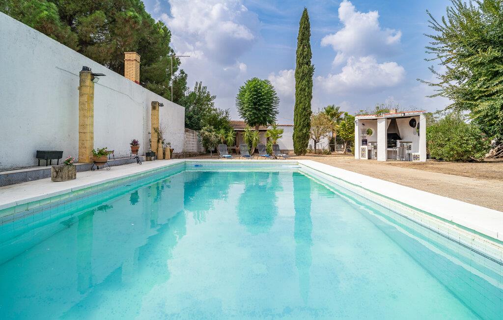 Beliggende i et roligt område har Villa Virgen de Aranzazu i Moron de la Frontera en rummelig have, der indbyder til at opholde sig udendørs. Slap af i skyggen af træerne, eller nyd en dag fuld af leg og sjov. Den private pool, omgivet af indfødte planter og komfortable solvogne, er det ideelle sted at køle af og slappe af. Lige ved siden af finder I et hyggeligt grillområde, perfekt til hyggelige grillaftener med familie og venner under den funklende stjernehimmel.