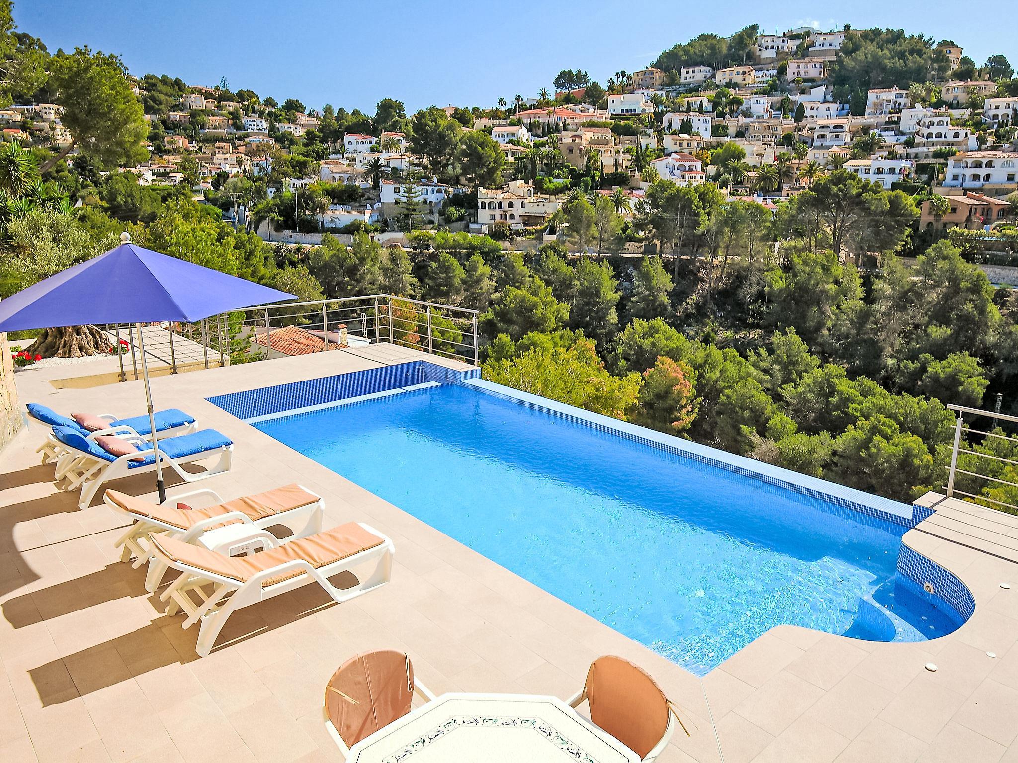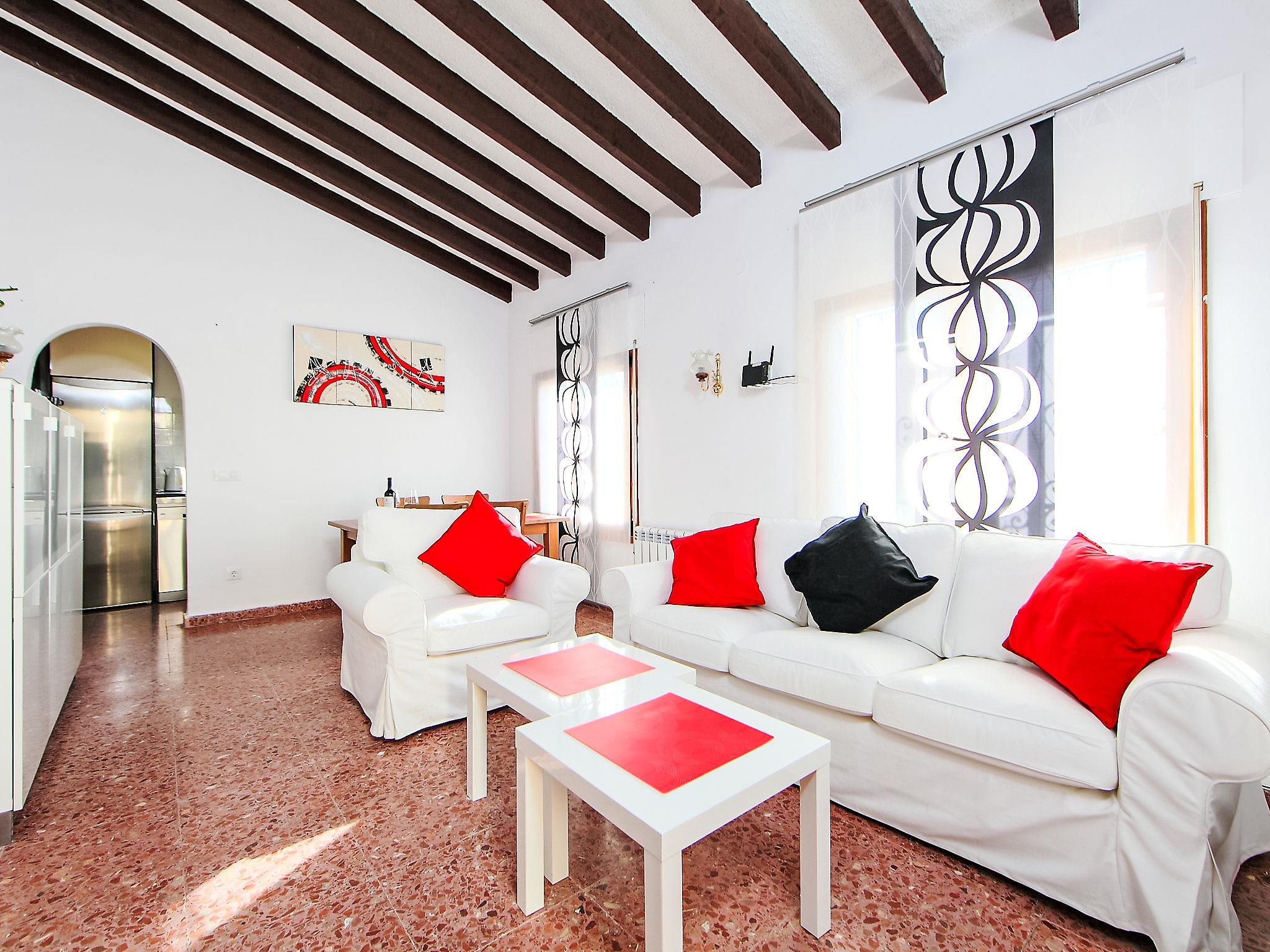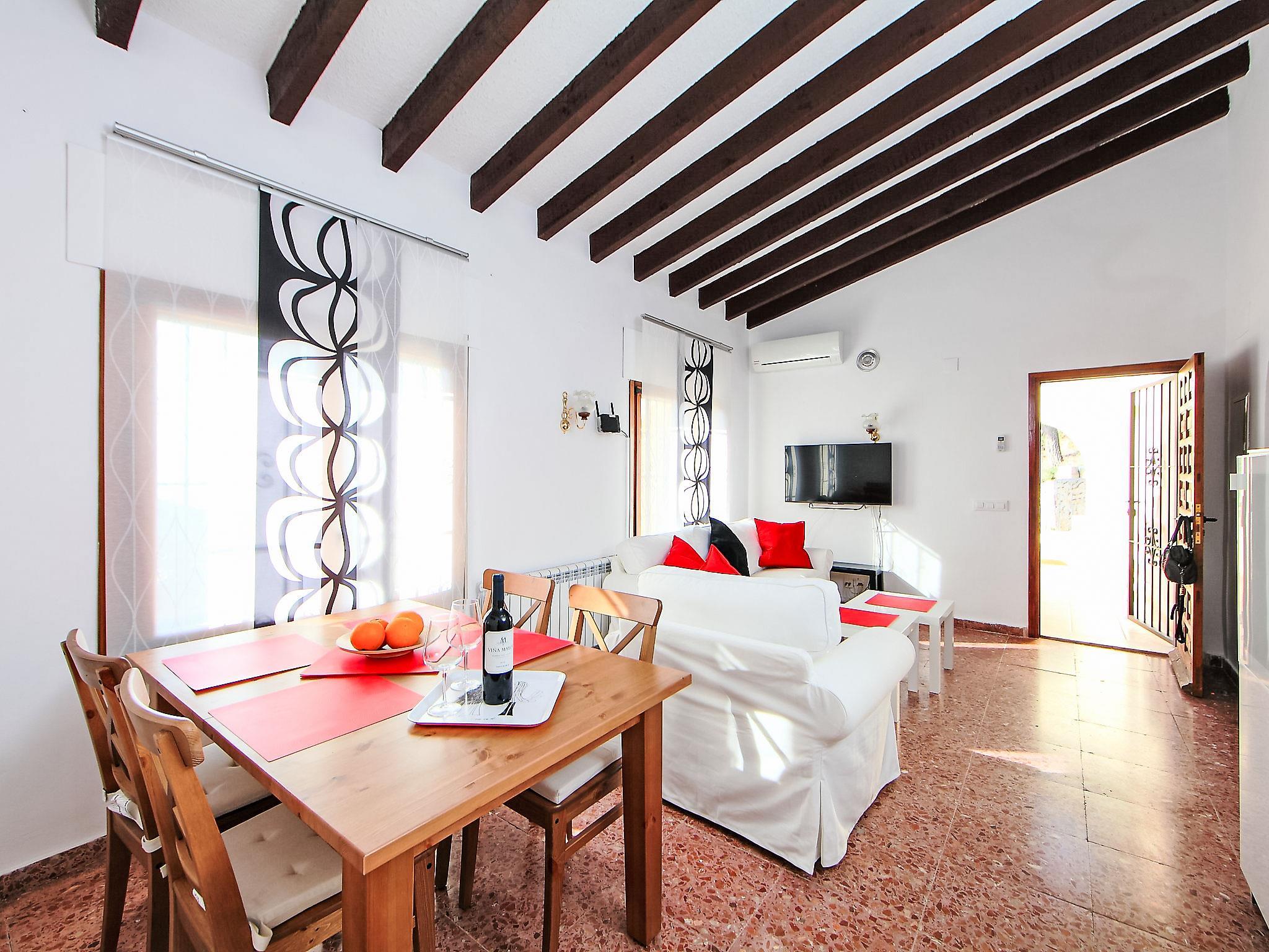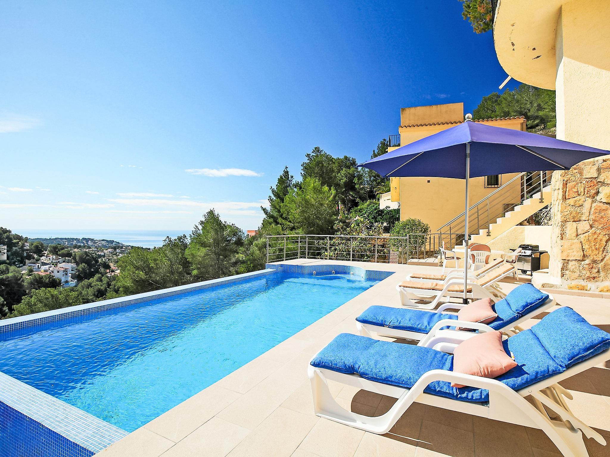 Montemar/Benissa: Cosy house "Negrita", 2 storeys. In the district of Montemar, in a quiet, sunny position on a slope, 3.5 km from the sea. Private: property 1'000 m2, beautiful, well-kept terraced garden, swimming pool angular (4 x 8 m, depth 150 - 200 cm, seasonal availability: 01.Jan. - 31.Dec.) with internal staircase and salt-electrolysis pool-cleaning system. Outdoor shower, hot tub, roofed, parking. Shop 3.9 km, supermarket 3.9 km, shopping centre 3.9 km, restaurant 2.7 km, bakery 3.9 km, bus stop 7 km, sandy beach "Playa de L´Ampolla" 6.4 km, rocky beach "Cala Baladrar" 3.5 km (small). Please note: car recommended. Suitable for families. The owner does not accept any youth groups.