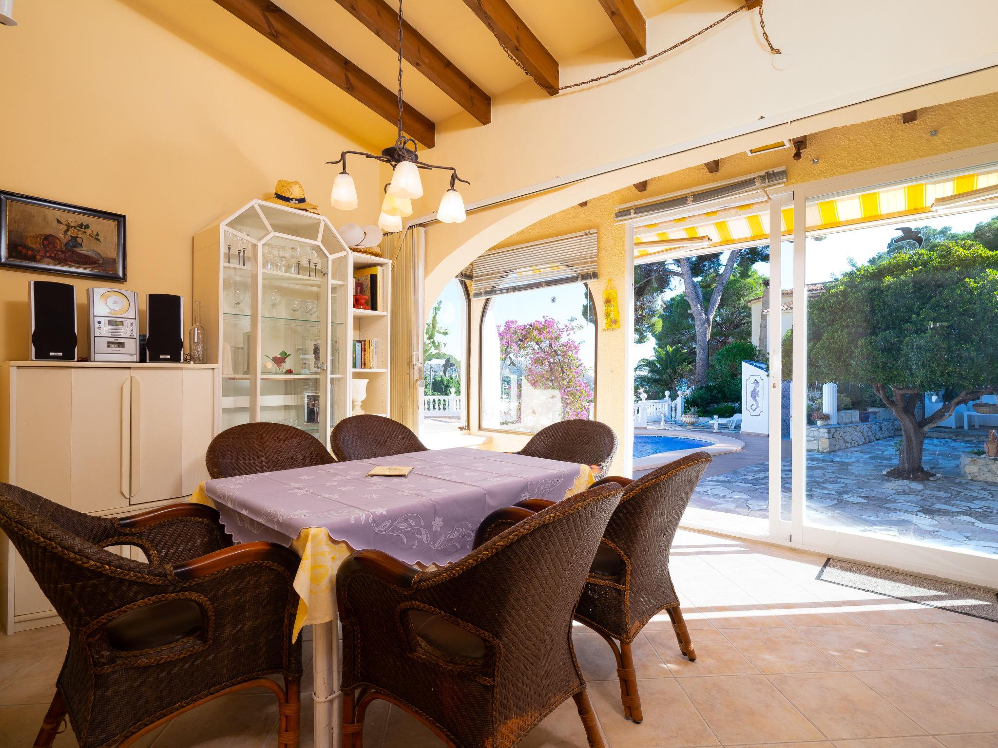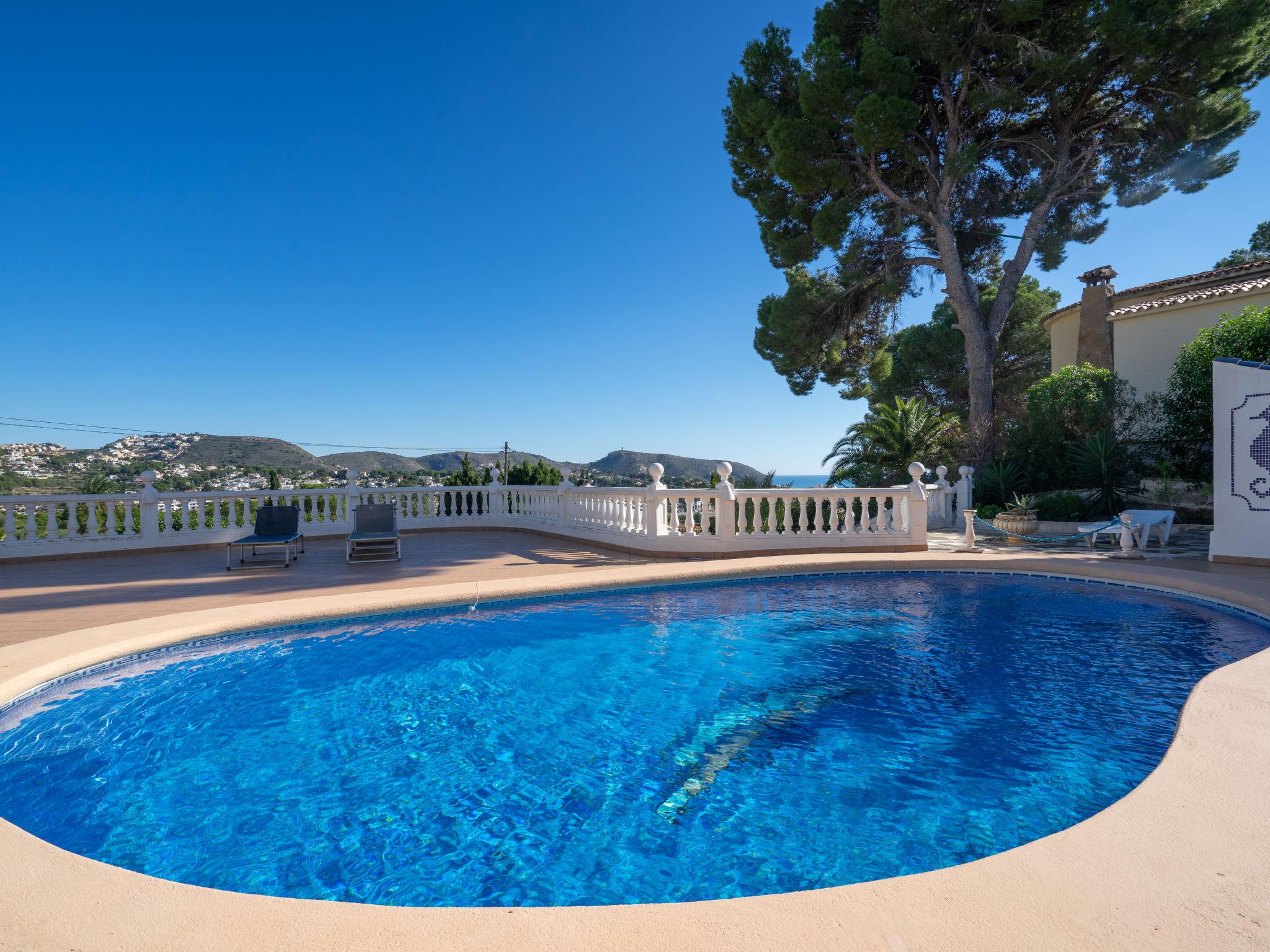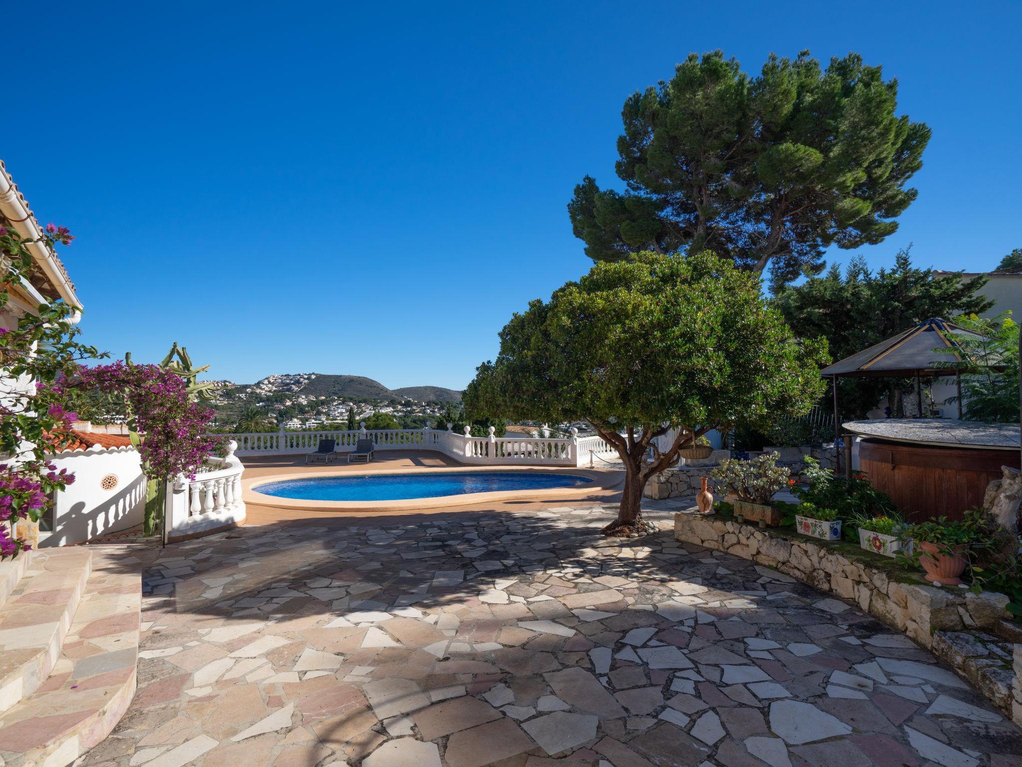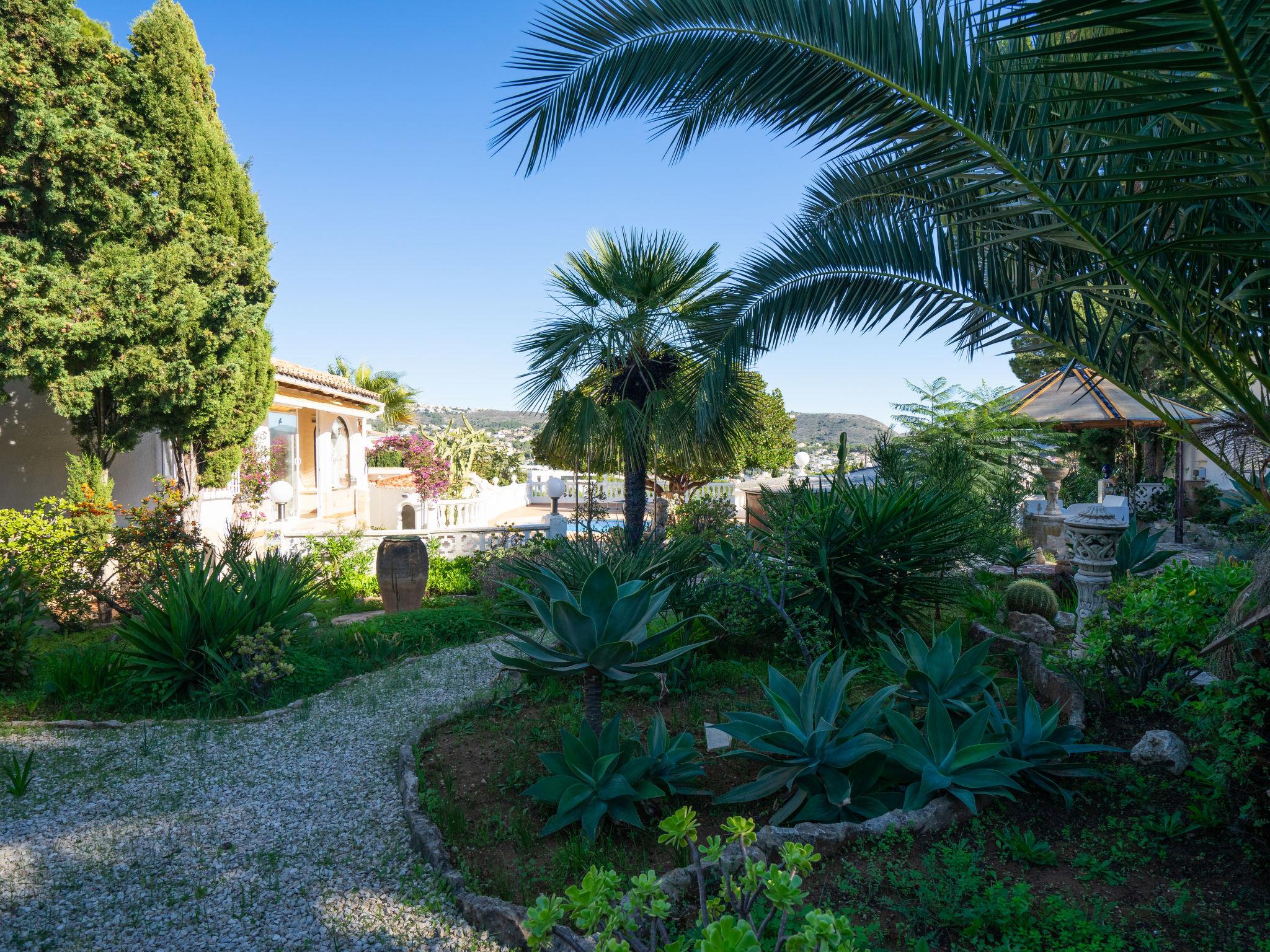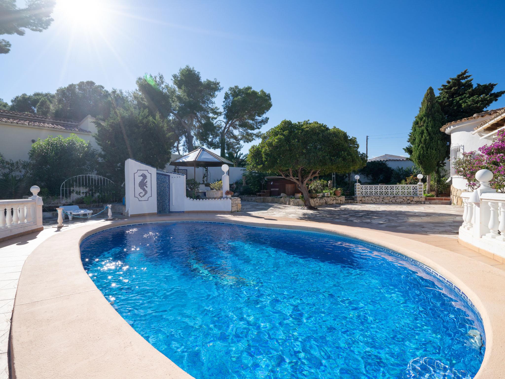Moraira: Very beautiful, comfortable house "Salamanca". Property composed of main house and outbuilding, in a quiet, sunny position, 1.4 km from the sea, 1.4 km from the beach. Private: property, well-kept garden 800 m2 (fenced), swimming pool kidney shaped (4 x 8 m, depth 120 - 210 cm, seasonal availability: 01.Jan. - 31.Dec.) with internal staircase. Outdoor shower, terrace, garden furniture, barbecue. In the house: WiFi. Parking (for 2 cars) on the premises. Grocery 500 m, supermarket 1.5 km, bus stop 2 km, sandy beach 1.4 km. Please note: car recommended. Suitable for families. The owner does not accept any youth groups.