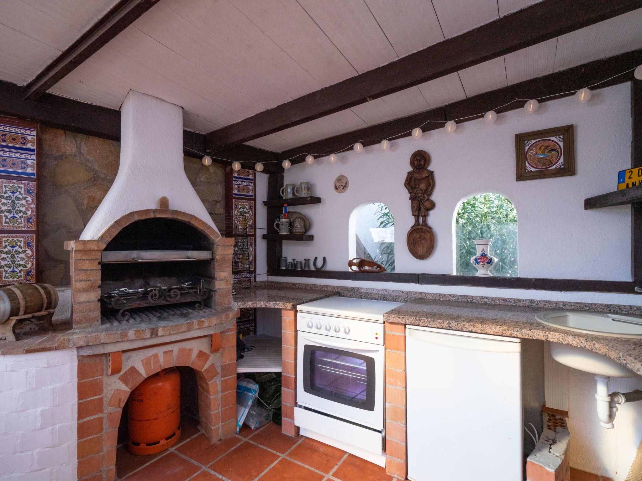 "Salamanca", 5-room house 180 m2. Spacious and bright, simple and comfortable furnishings: living/dining room with veranda with open-hearth fireplace, satellite TV and air conditioning. Exit to the garden, to the swimming pool. 1 room with 1 french bed (1 x 150 cm, length 200 cm), shower/WC and air conditioning. 1 room with 1 double bed (2 x 90 cm, length 200 cm), air conditioning. Kitchen (oven, dishwasher, Gas stove, 4 gas rings, toaster, kettle, microwave, freezer, electric coffee machine). Bath/bidet/WC. On the lower ground floor: (exterior staircase) living/dining room. 1 room with 1 double bed (2 x 90 cm, length 200 cm), air conditioning. Kitchenette (oven, 4 ceramic glass hob hotplates). Bath/WC. Facilities: washing machine, iron, hair dryer. Internet (WiFi). VT-515650-A // Reg. Nr.: ESFCTU0000030380007246780000000000000CV-VUT0515650-A5
