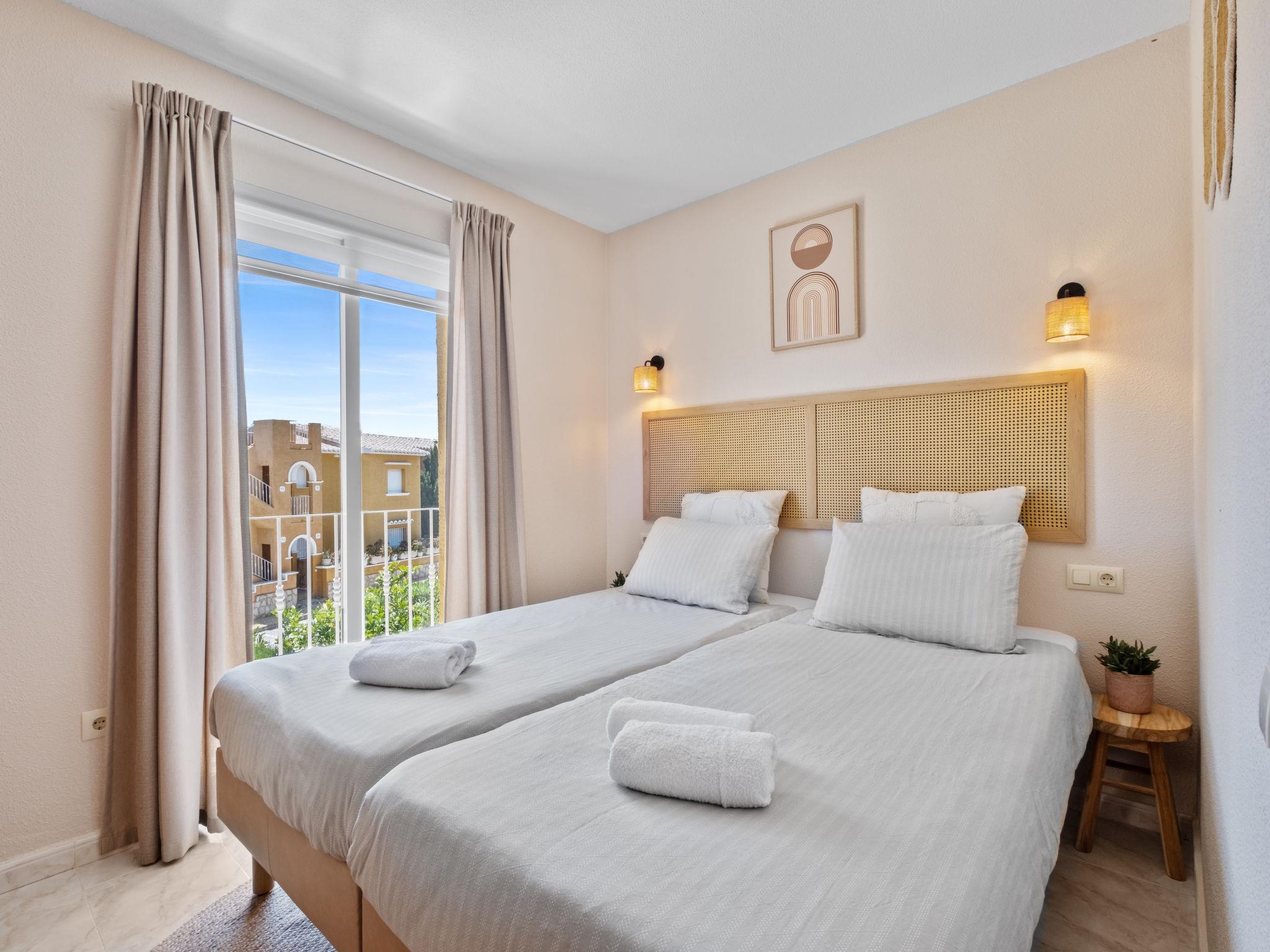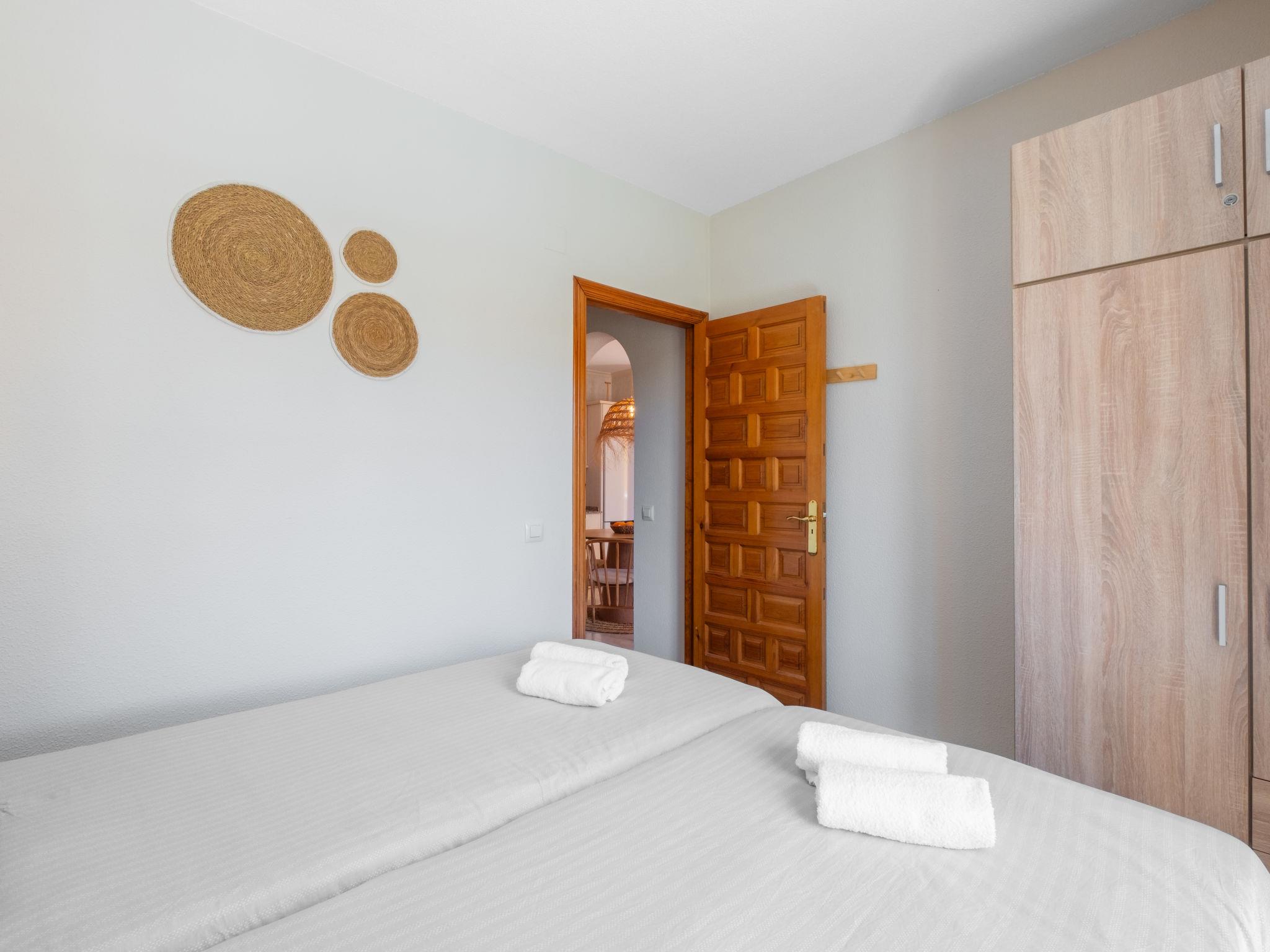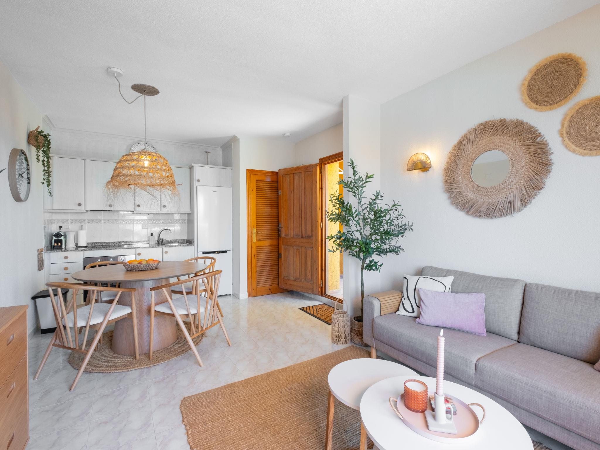 "Pueblo de la Paz", 3-room apartment 62 m2 on 1st floor. Spacious and bright, renovated in 2025, comfortable and beautiful furnishings: living/dining room with satellite TV, digital TV, air conditioning and forced-air heating. Exit to the terrace. 1 room with 1 double bed. 1 room with 2 beds. Open kitchen (oven, 4 ceramic glass hob hotplates, toaster, kettle, microwave, electric coffee machine). Shower/WC. Large terrace. Terrace furniture, sitting area. Beautiful view of the resort. Facilities: washing machine, iron, hair dryer. Internet (WiFi, free). Please note: non-smoking house. No lift. CV-VUT0518489-A // Reg. Nr.: ESFCTU0000030380000383860000000000000CV-VUT0518489-A2