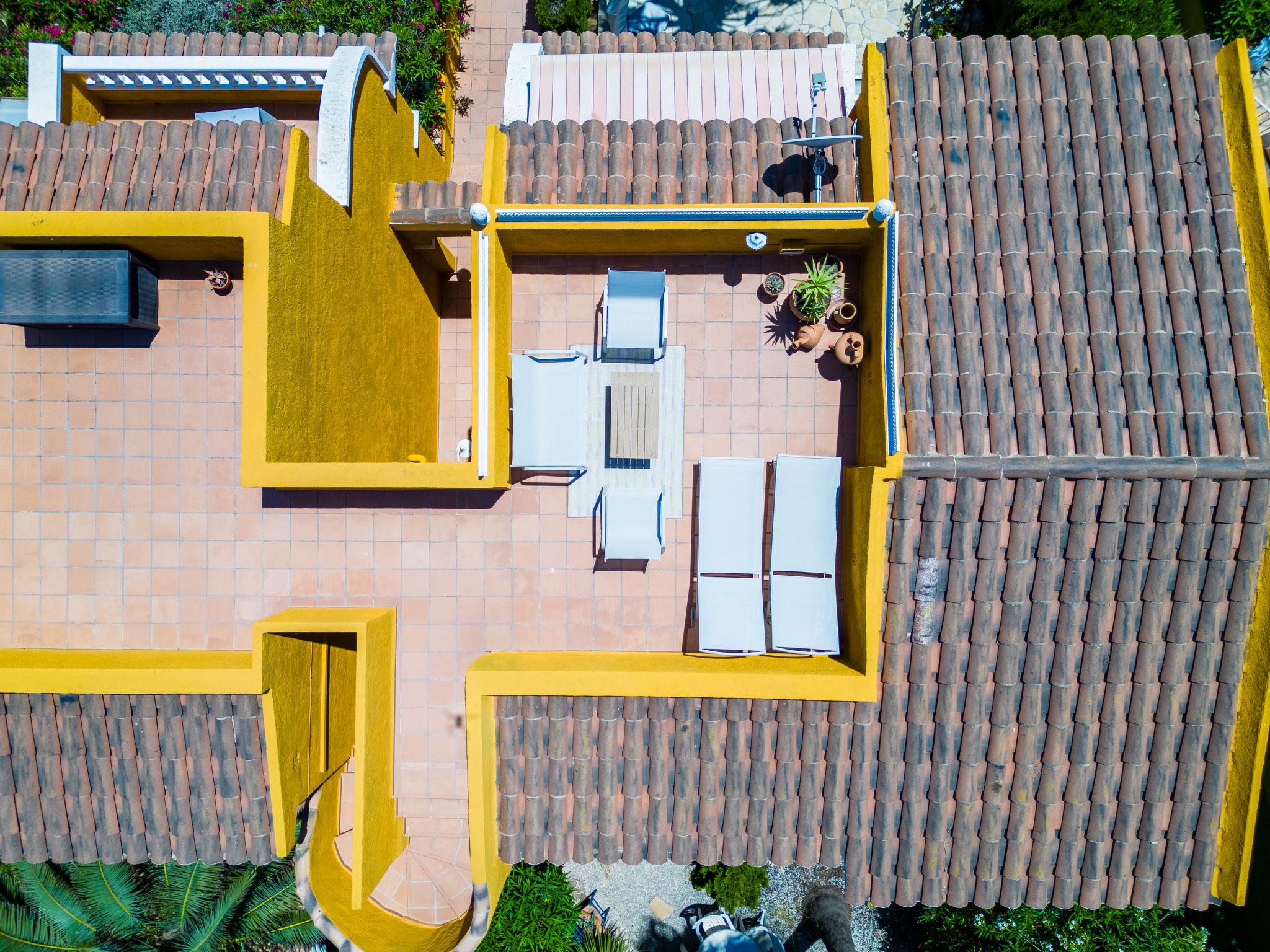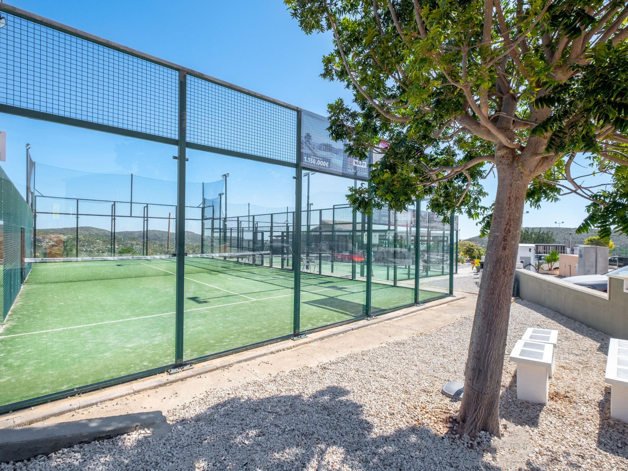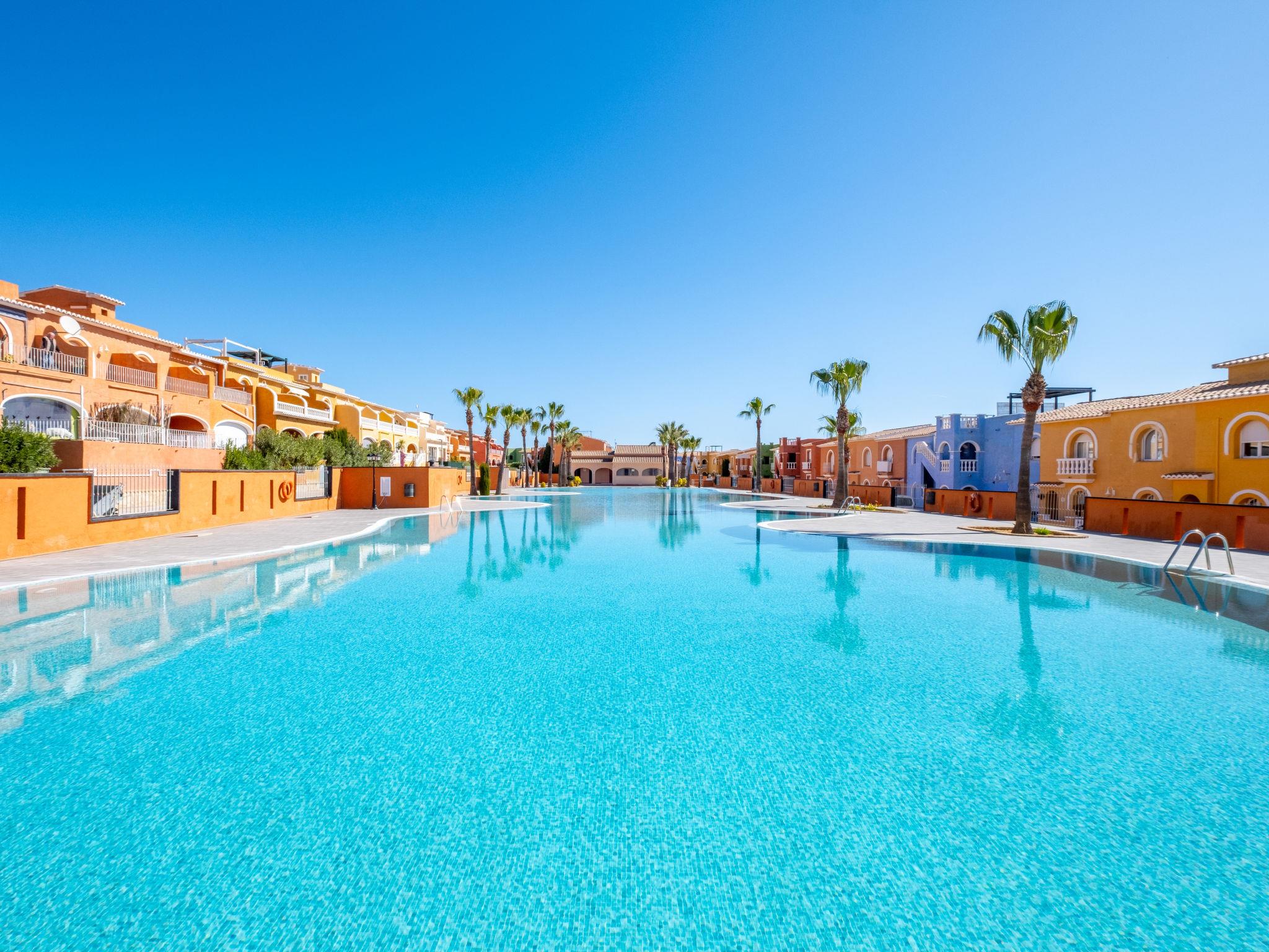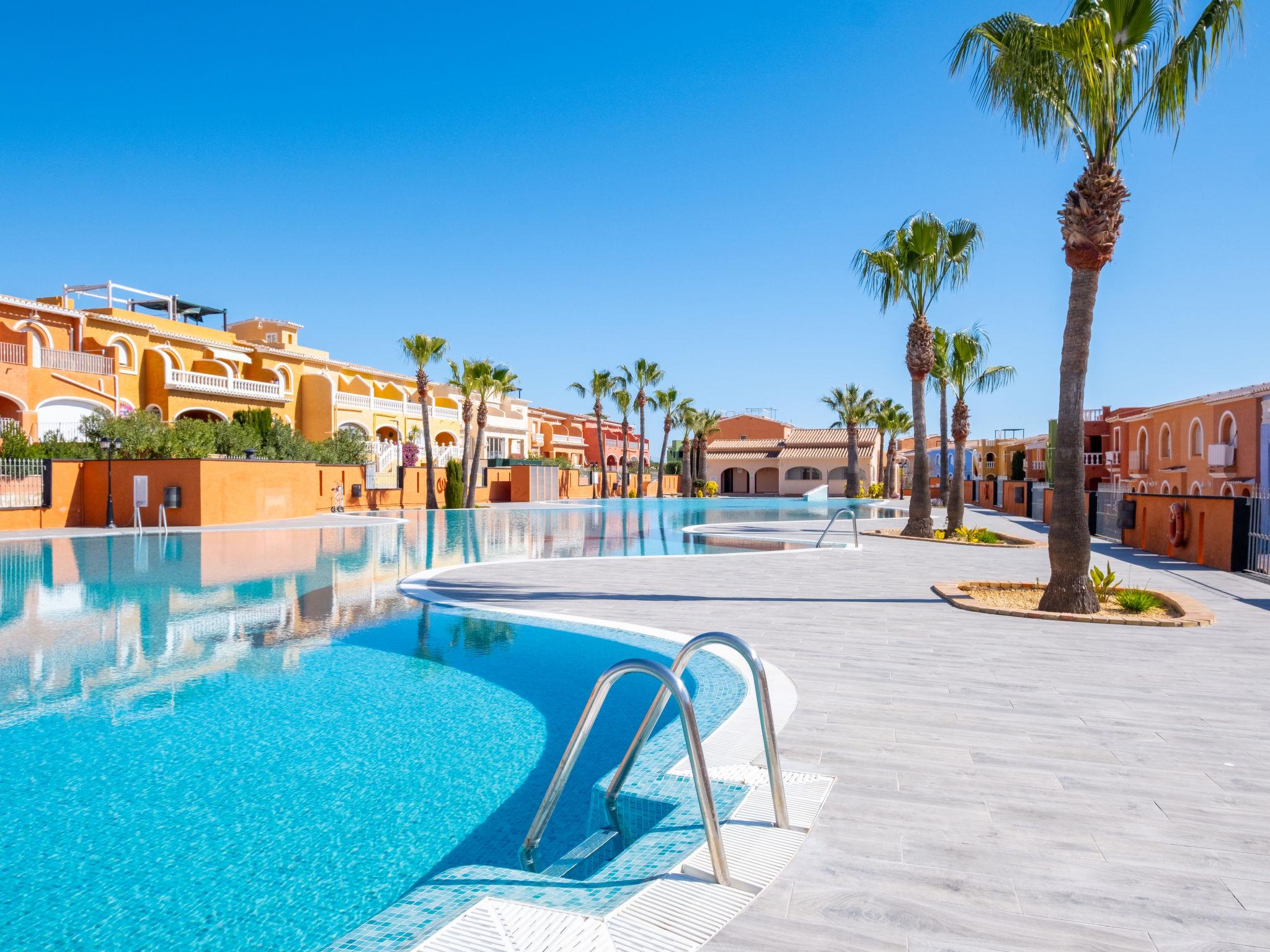 Cumbre del Sol: Large, beautiful holiday development "Pueblo de la Paz". 8 km from the centre of Moraira, in the district Cumbre del Sol, in a quiet, sunny position in the residential district, traffic calmed area, 1.8 km from the sea, 1.8 km from the beach. For shared use: beautiful, well-kept garden, swimming pool (60 x 16 m, seasonal availability: 01.Apr. - 31.Oct.) with internal staircase. Children's pool, outdoor shower, terrace. Grocery, supermarket 500 m, restaurant 600 m, bus stop 4 km, sandy beach "Playa Arenal" 8 km, rocky beach "Cala Moraig" 1.8 km. Sports harbour 9 km, marina 9 km, golf course 11 km. Nearby attractions: Aqualandia, Mundomar, Terra Mítica, Terra Natura, Benidorm Palace (Benidorm), Les Fonts de l'Algar, Castillo de Guadalest. The owner does not accept any youth groups.