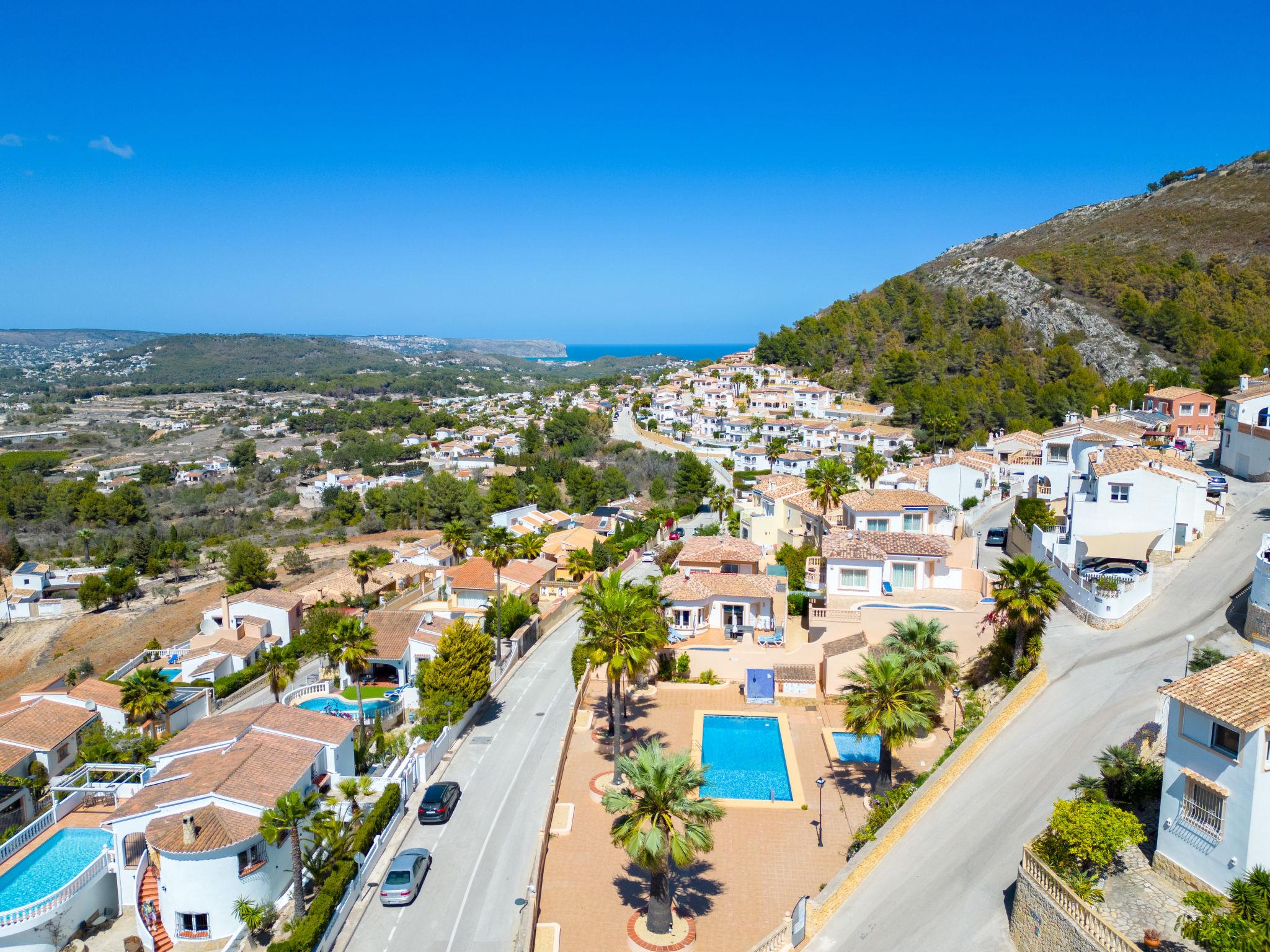 Comfortable bungalow "Las Mimosas". 6 km from the centre of Moraira, 1.2 km from the centre of Benitachell, in a quiet, sunny position residential area (villas), traffic calmed area, 5 km from the sea, 6 km from the beach, in a cul-de-sac. For shared use: swimming pool (depth 120 - 210 cm, seasonal availability: 01.Jan. - 31.Dec.). Children's pool, outdoor shower, terrace. Private: property (fenced). Terrace, public parking on the road. Bus stop "Benitachell" 1.8 km, railway station "Teulada" 6.4 km, ferry "Denia" 20 km, rocky beach "Cala de Moraig" 5 km. The owner does not accept any youth groups.