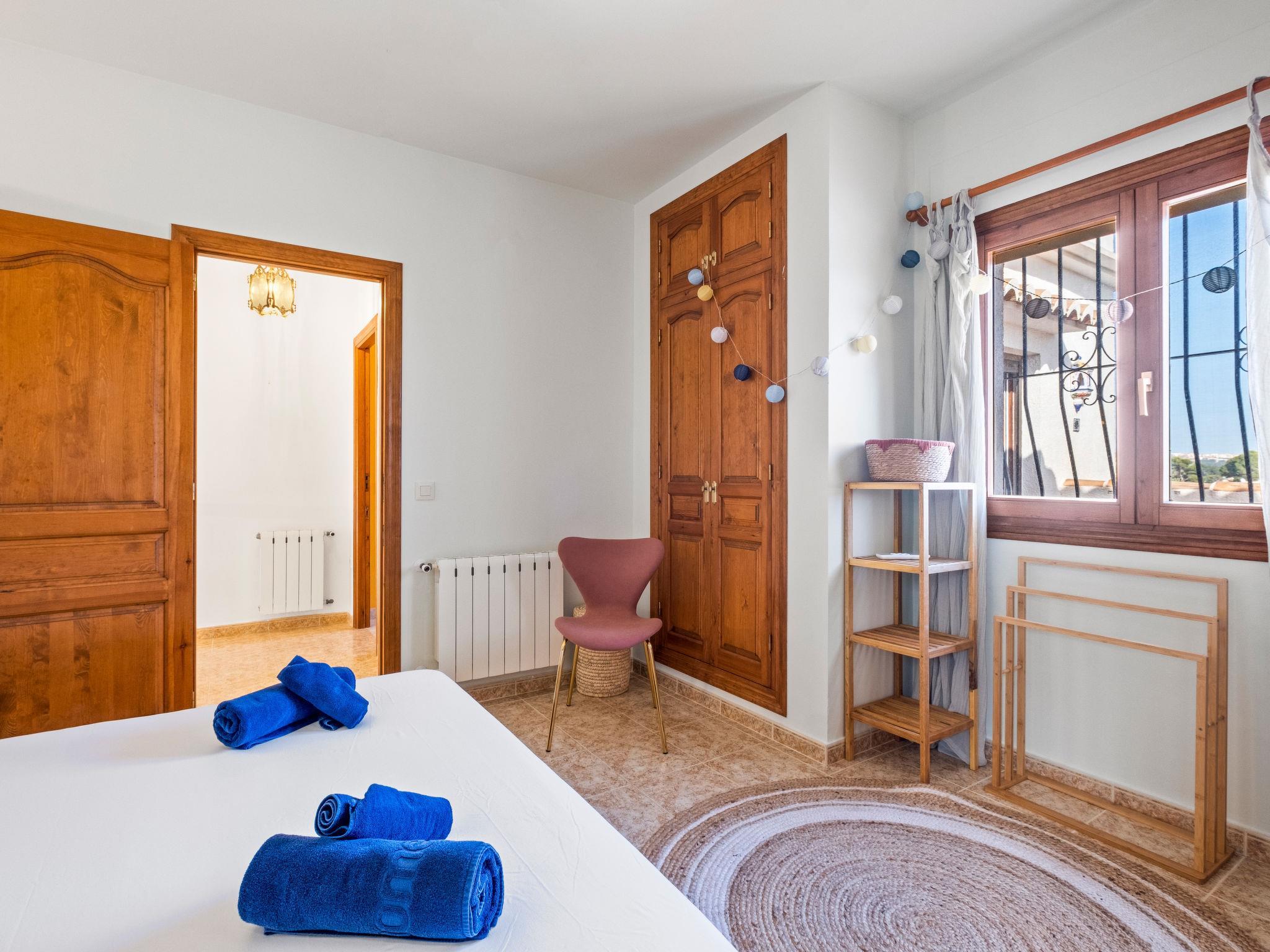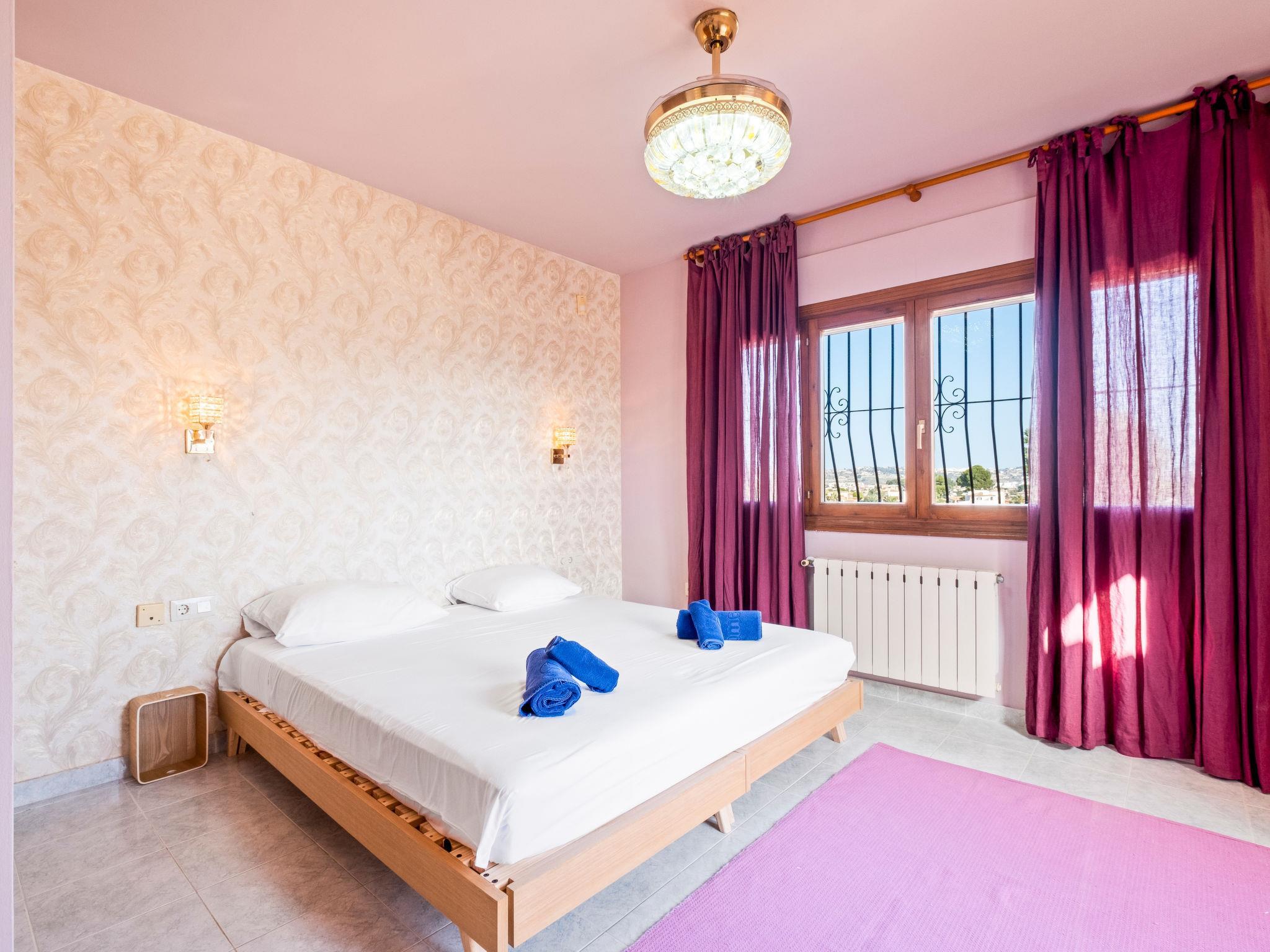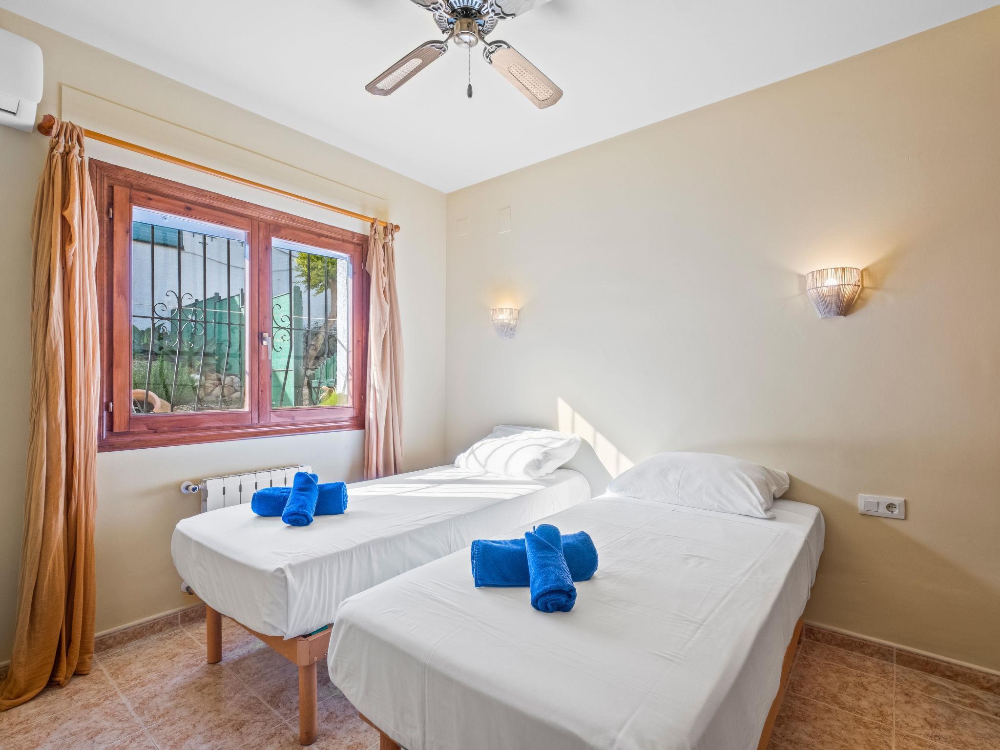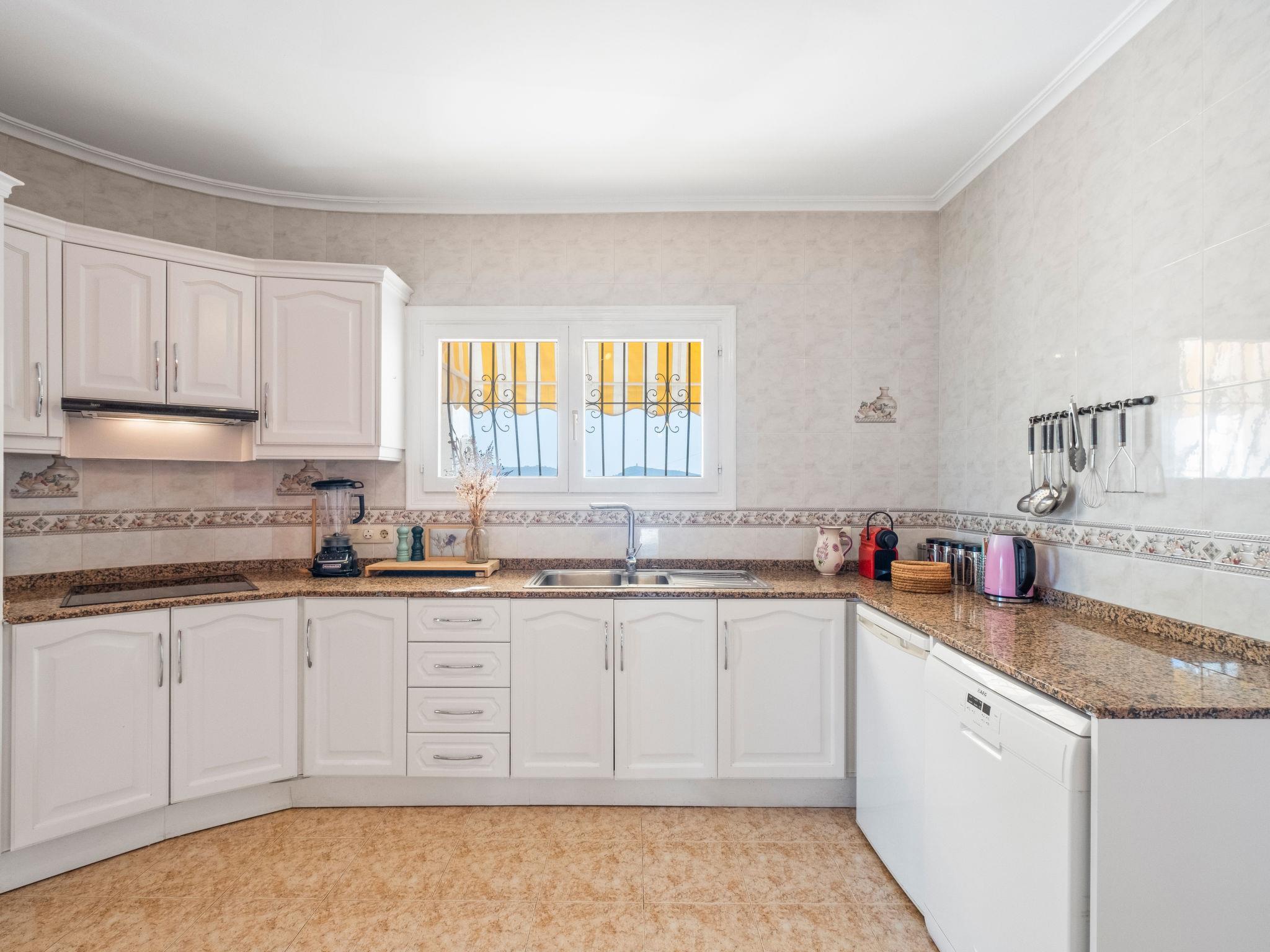 "Moraira Magica", 4-room villa 253 m2 on 2 levels. Spacious and bright, comfortable and beautiful furnishings: open living/dining room. Dining room. Exit to the terrace, to the swimming pool. 1 room with 2 beds (90 cm, length 200 cm), shower/WC, air conditioning, fan and forced-air heating. Kitchen (oven, dishwasher, 4 ceramic glass hob hotplates, toaster, kettle, microwave, electric coffee machine). Sep. WC. Upper floor: 1 room with 1 french bed (1 x 160 cm, length 200 cm), shower/WC, air conditioning and forced-air heating. 1 room with 2 beds (90 cm, length 200 cm), bath/WC, air conditioning and forced-air heating. Exit to the terrace. Large terrace. Terrace furniture, barbecue. Beautiful view of the sea, the resort and the town. Facilities: washing machine, iron, hair dryer. Internet (WiFi, free). Parking. Please note: non-smoking house. VT-510168-A // Reg. Nr.: ESFCTU00000303800079367400000000000000000VT-510168-A2