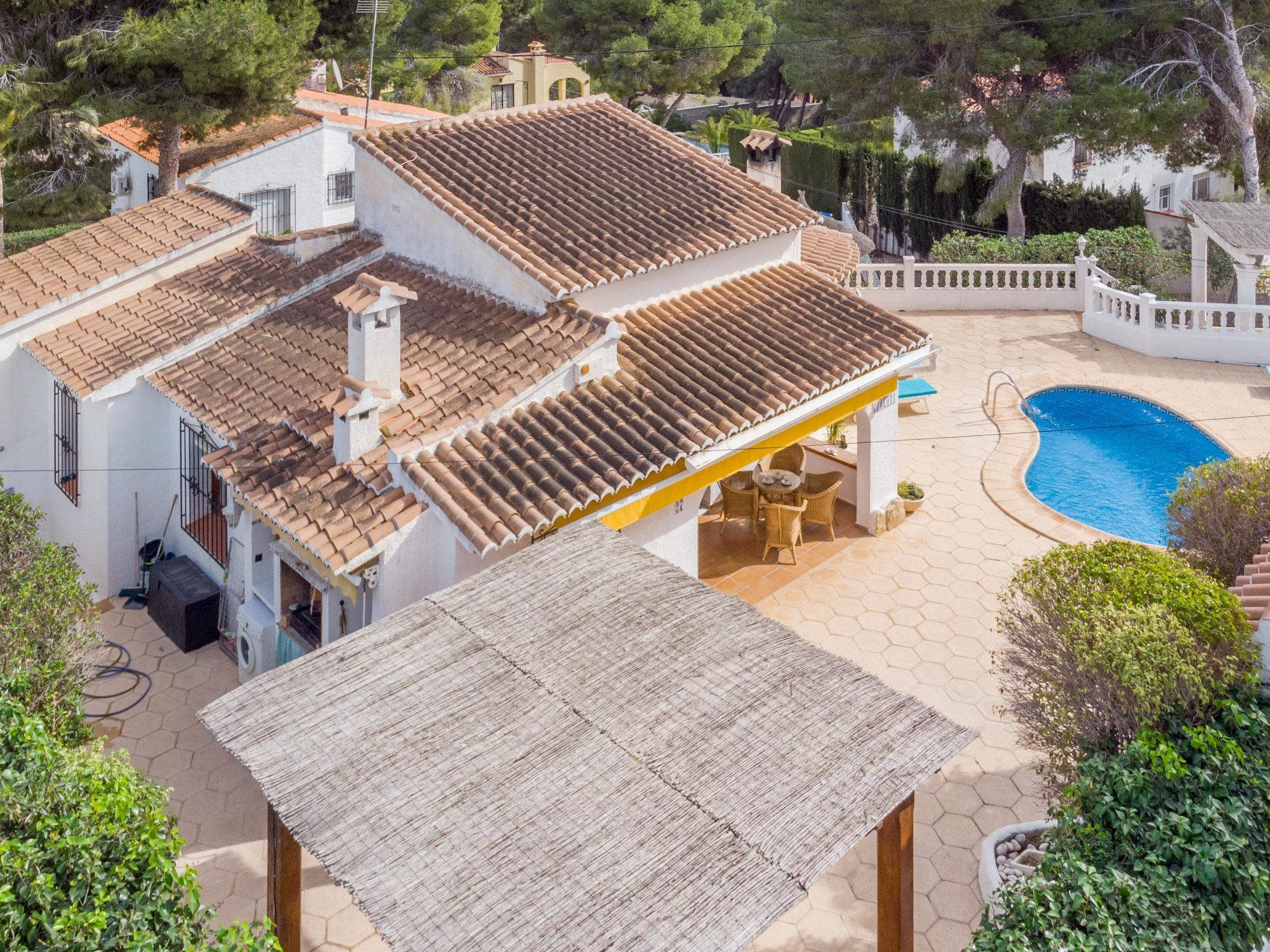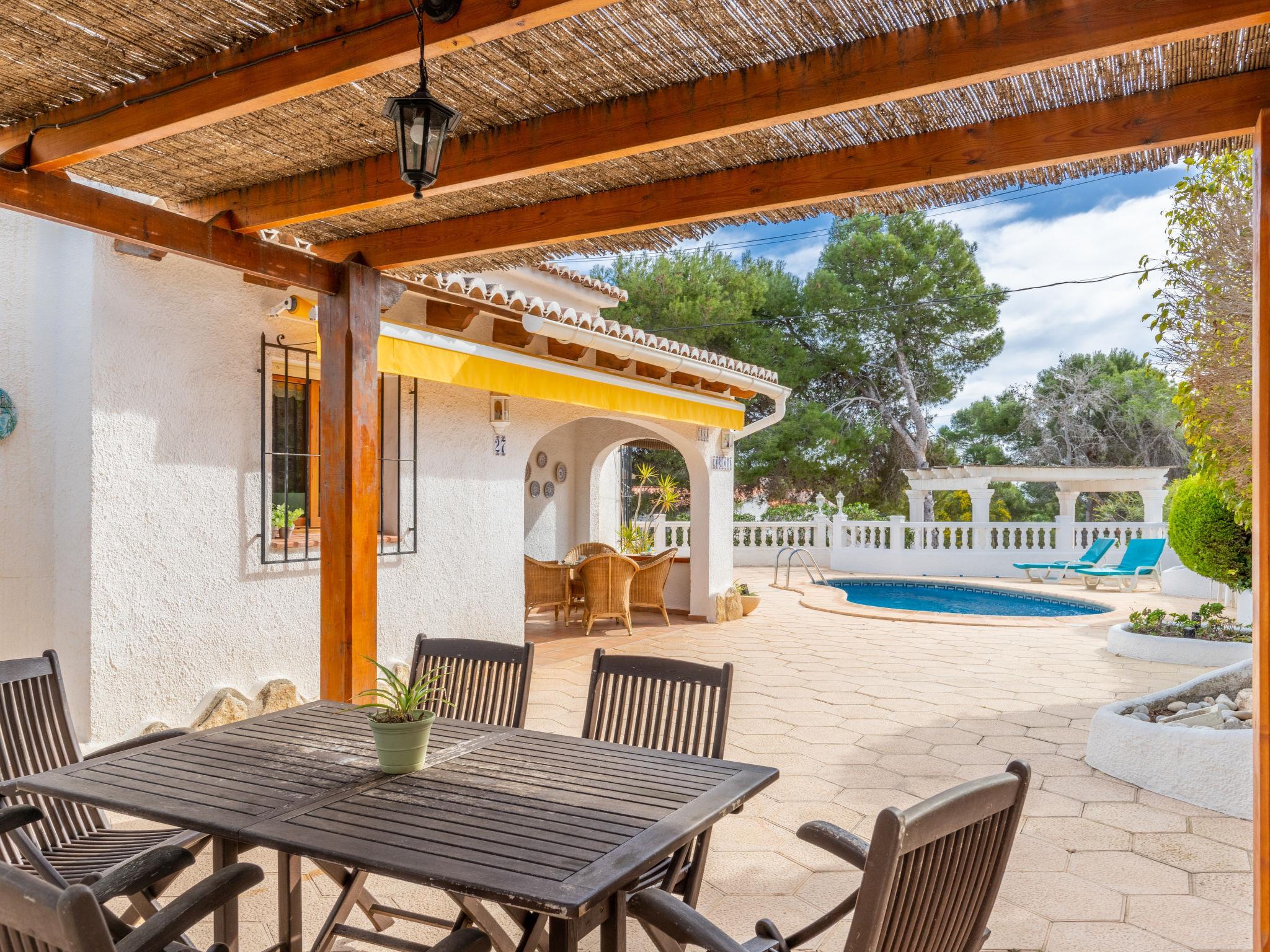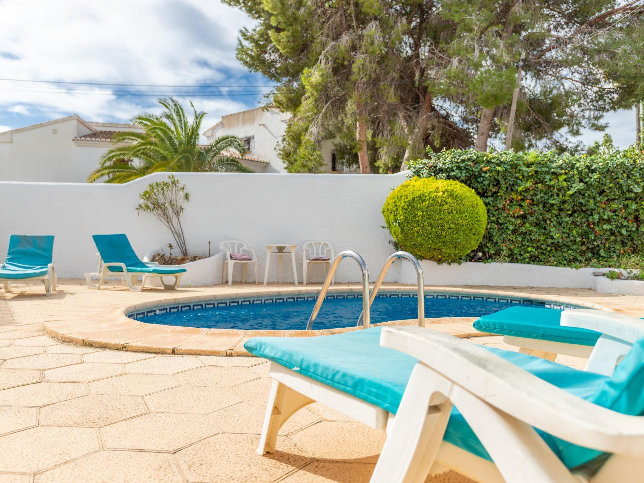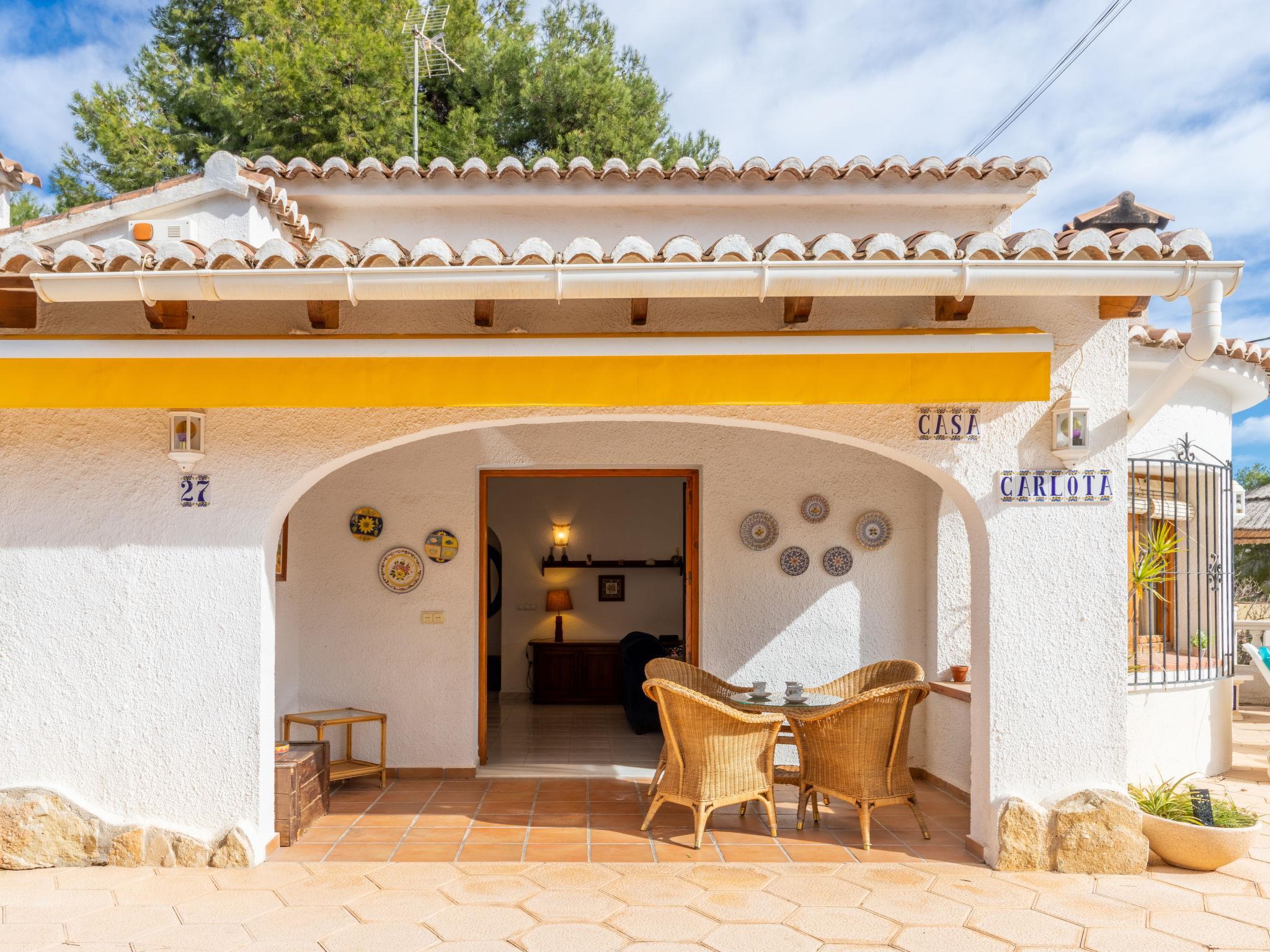 Cosy villa "Carlota". 2 km from the centre of Moraira, in a quiet, sunny position residential area (villas), traffic calmed area, 1 km from the sea, 1 km from the beach. Private: property 463 m2 (fenced), swimming pool (6 x 3 m, seasonal availability: 01.Jan. - 31.Dec.). Terrace, garden furniture, roofed, parking. Grocery 1.7 km, supermarket 1.7 km, restaurant 2 km, bus stop 1.8 km, sandy beach "Playa L'Ampolla" 1.5 km. Sports harbour 1.6 km, marina 1.6 km, golf course (12 hole) 1.8 km. Nearby attractions: Aqualandia, Mundomar, Terra Mítica, Terra Natura, Benidorm Palace (Benidorm), Les Fonts de l'Algar, Castillo de Guadalest. The owner does not accept any youth groups.