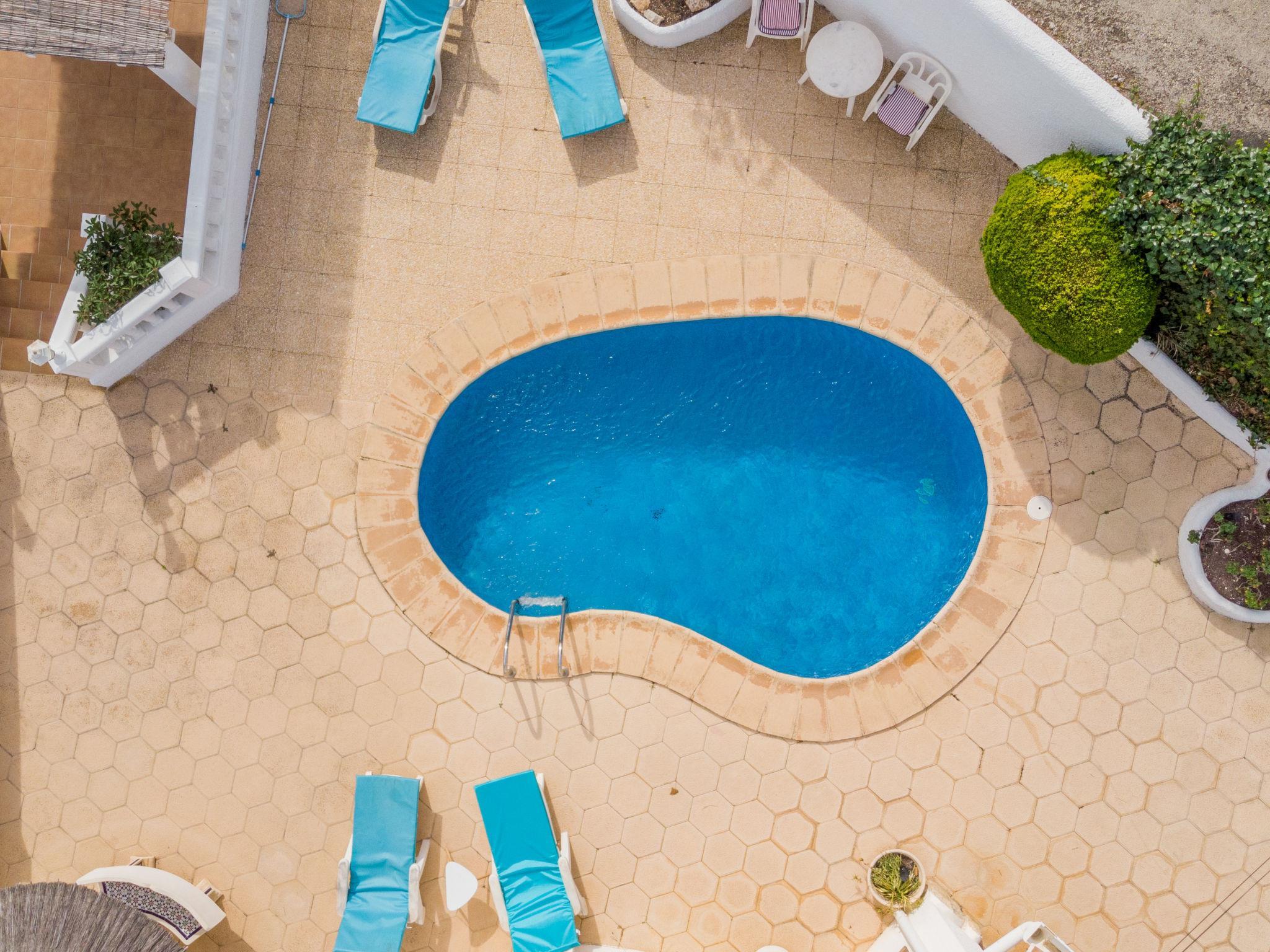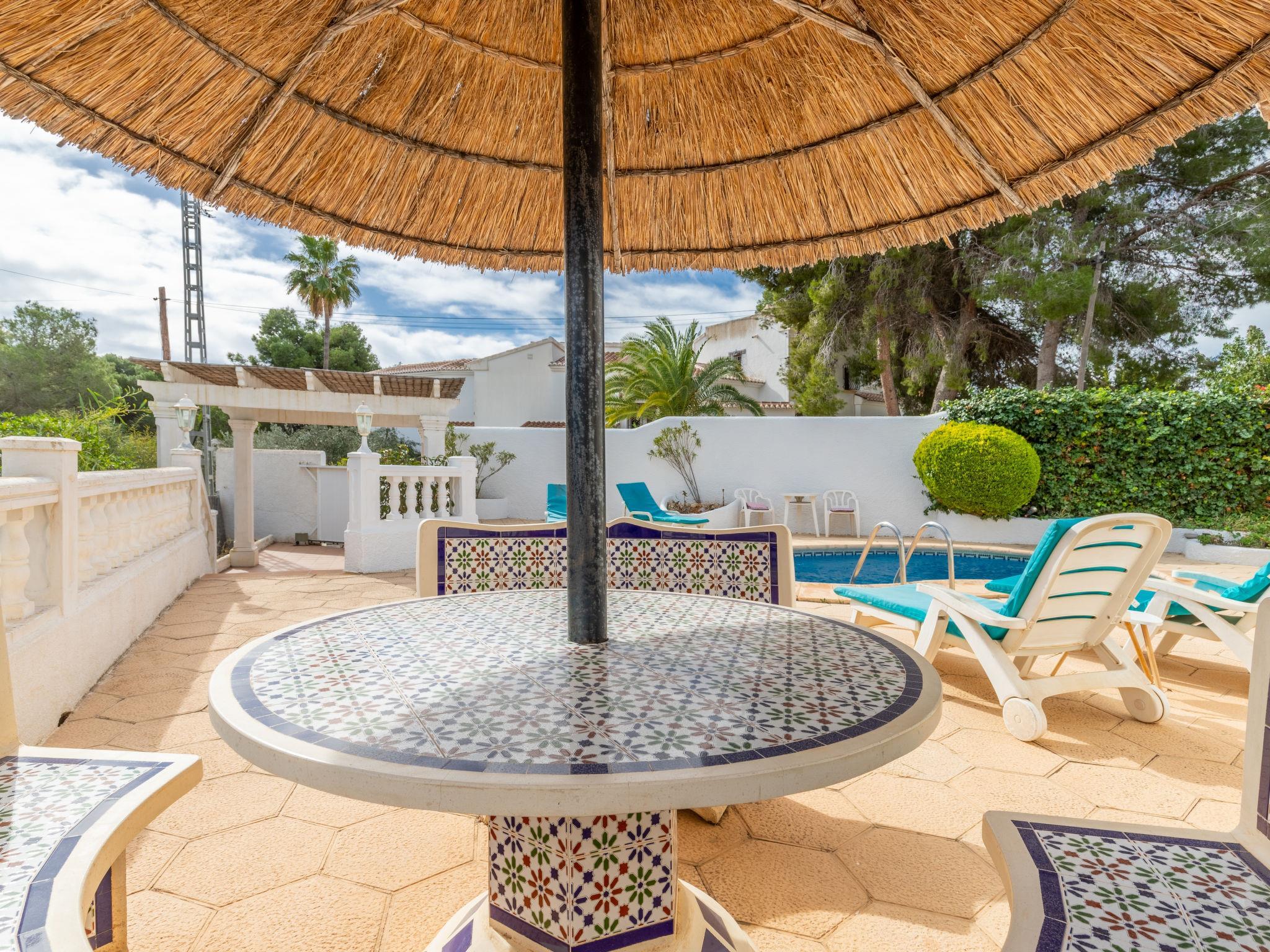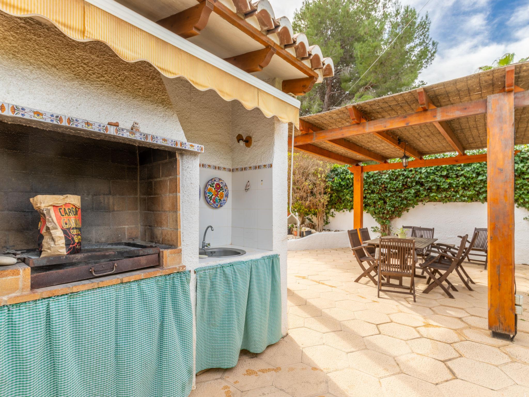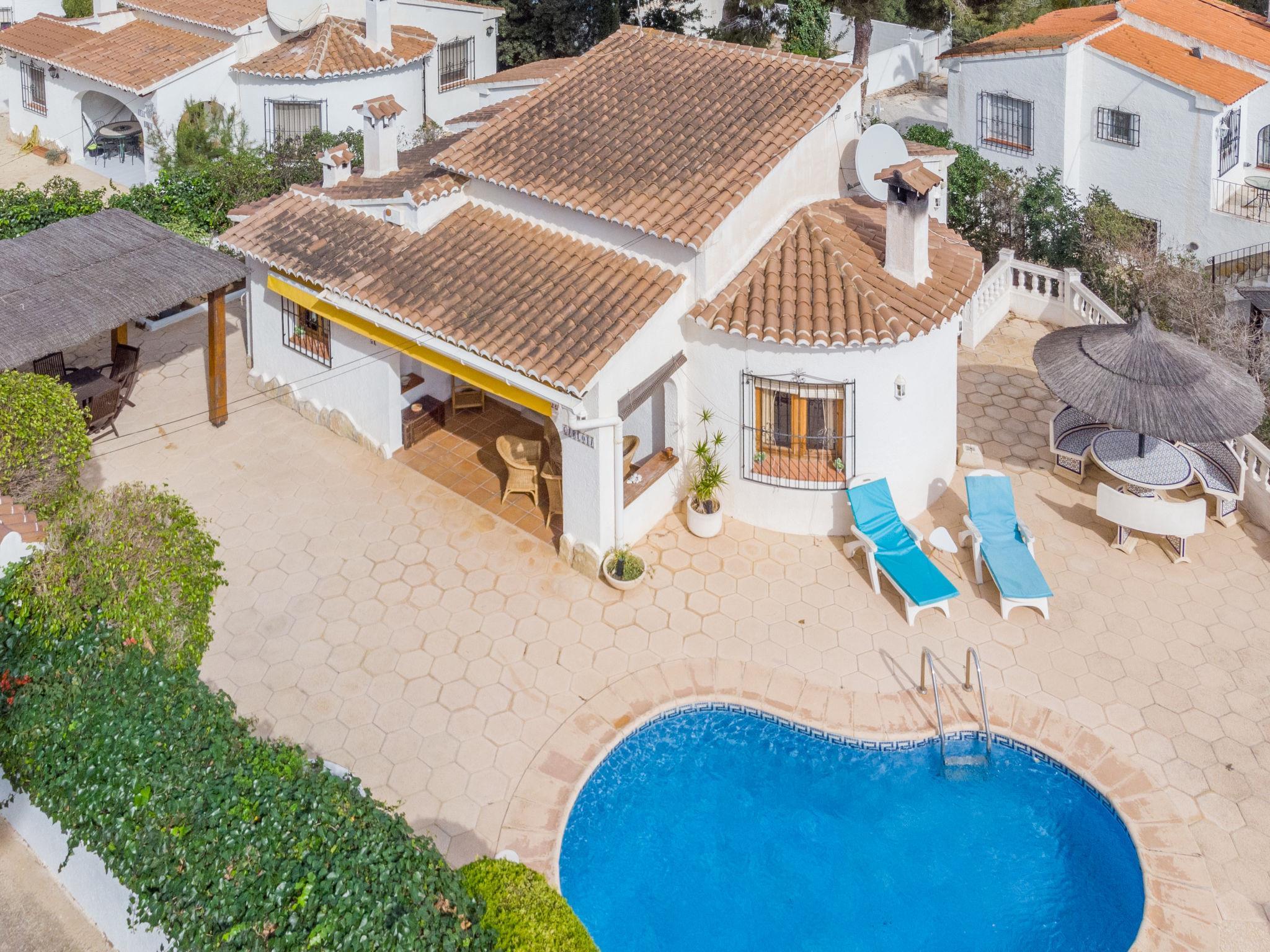 Cosy villa "Carlota". 2 km from the centre of Moraira, in a quiet, sunny position residential area (villas), traffic calmed area, 1 km from the sea, 1 km from the beach. Private: property 463 m2 (fenced), swimming pool (6 x 3 m, seasonal availability: 01.Jan. - 31.Dec.). Terrace, garden furniture, roofed, parking. Grocery 1.7 km, supermarket 1.7 km, restaurant 2 km, bus stop 1.8 km, sandy beach "Playa L'Ampolla" 1.5 km. Sports harbour 1.6 km, marina 1.6 km, golf course (12 hole) 1.8 km. Nearby attractions: Aqualandia, Mundomar, Terra Mítica, Terra Natura, Benidorm Palace (Benidorm), Les Fonts de l'Algar, Castillo de Guadalest. The owner does not accept any youth groups.