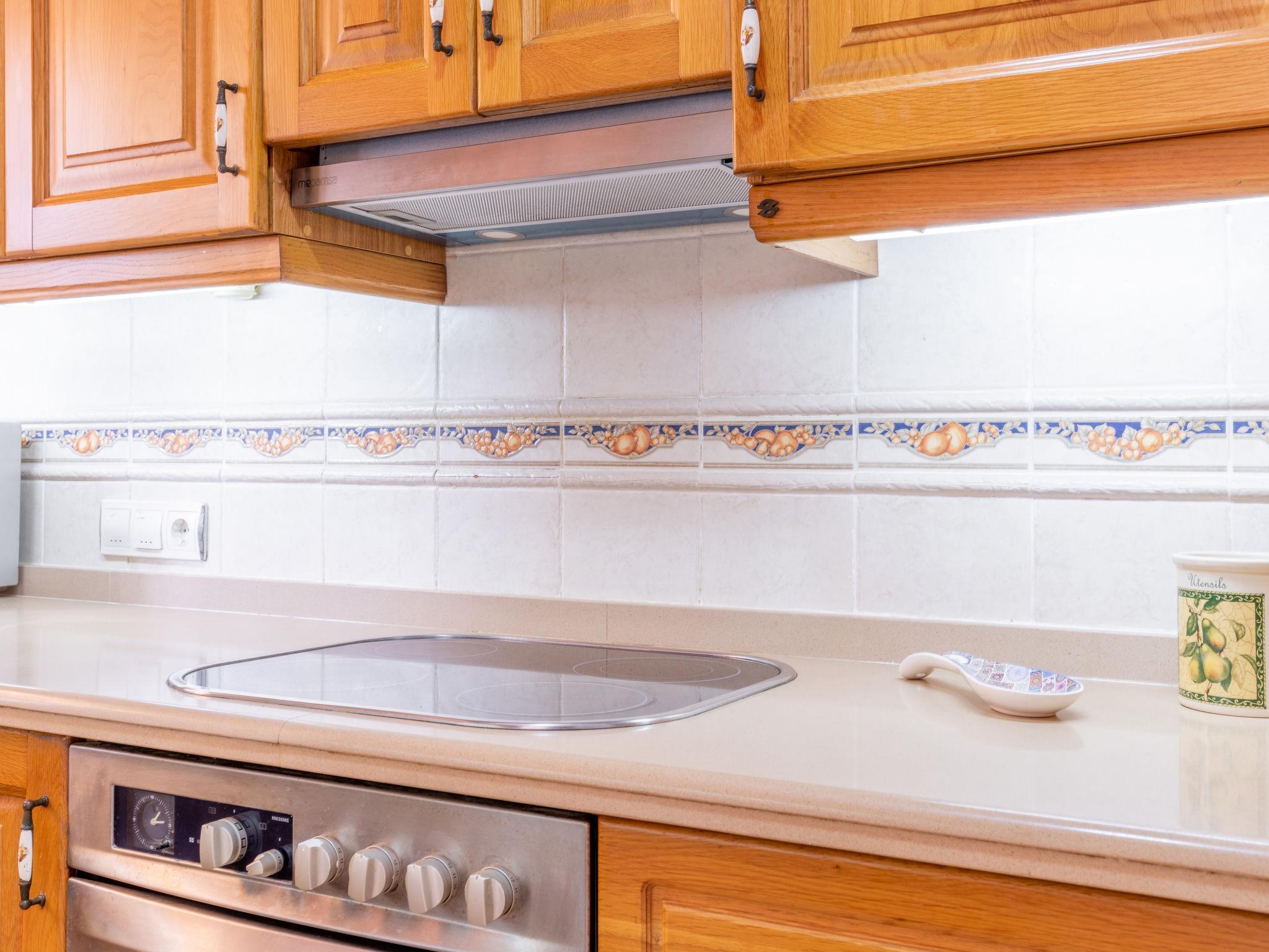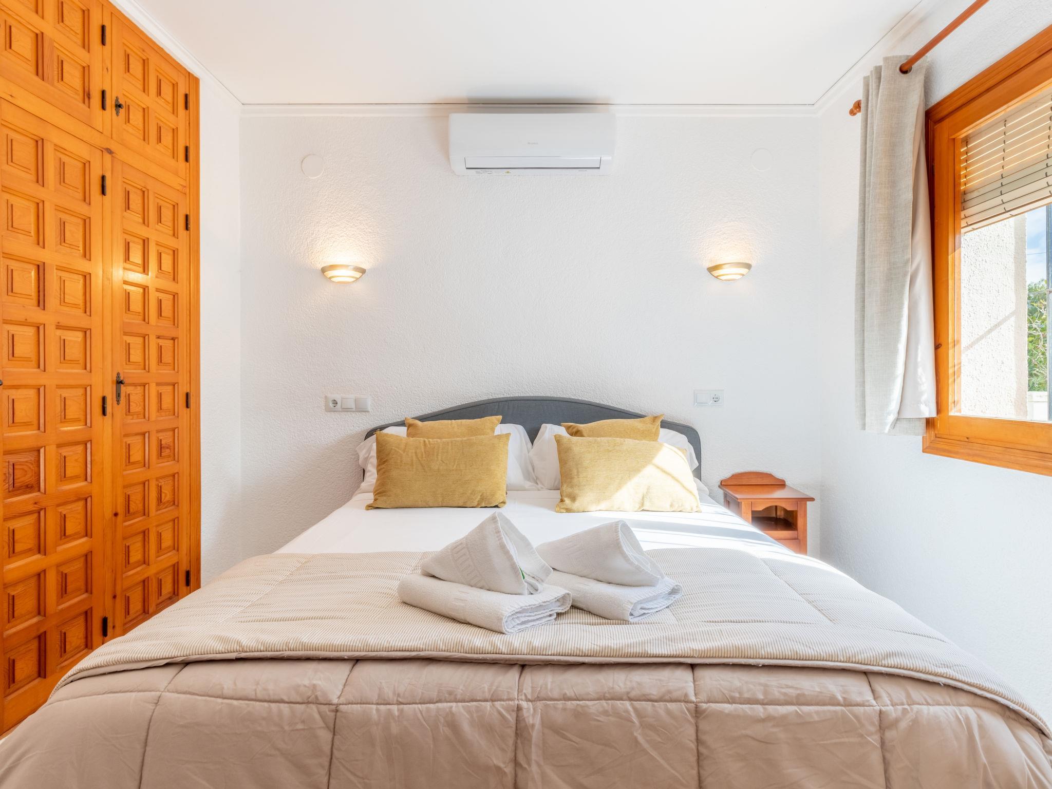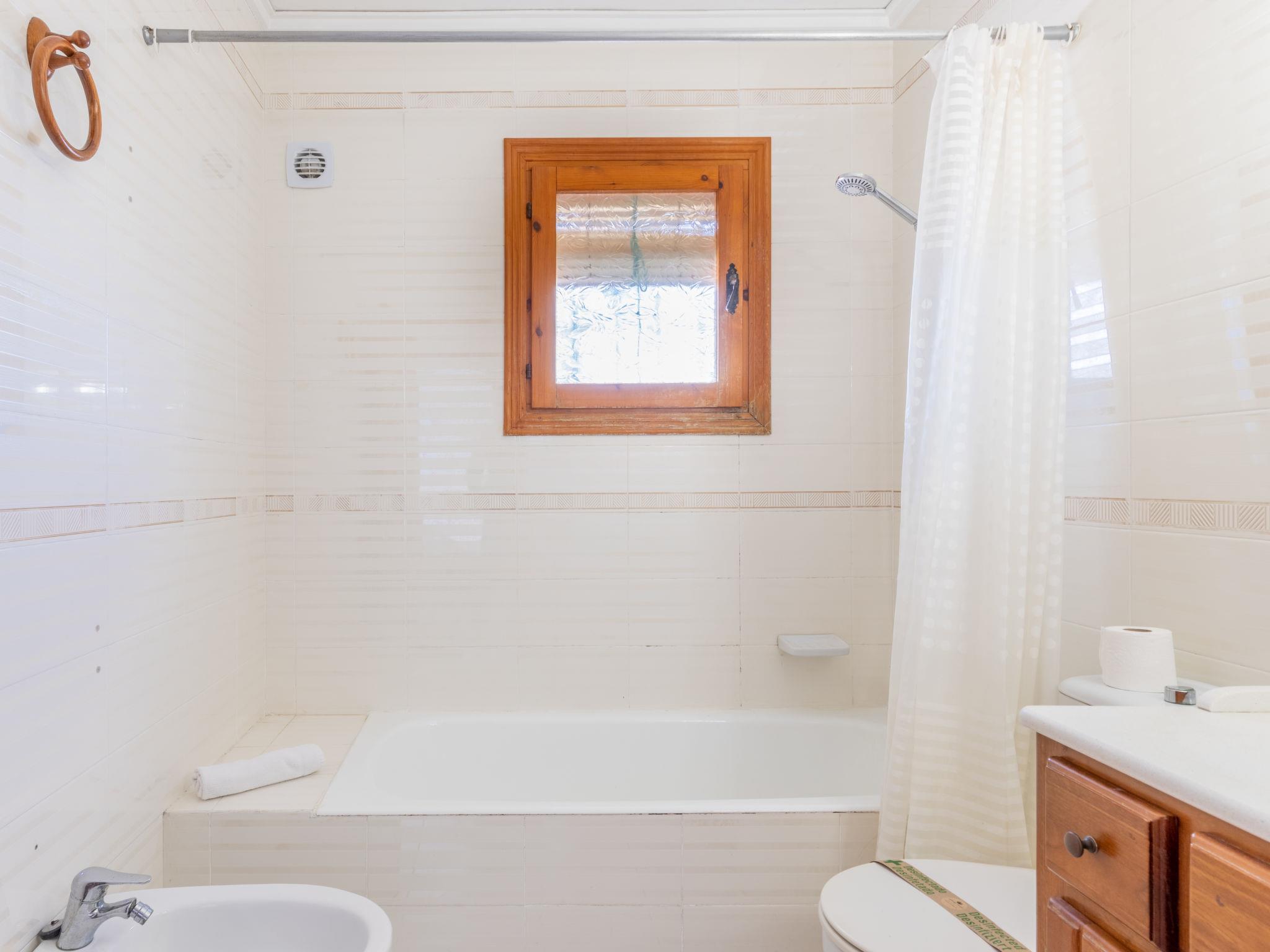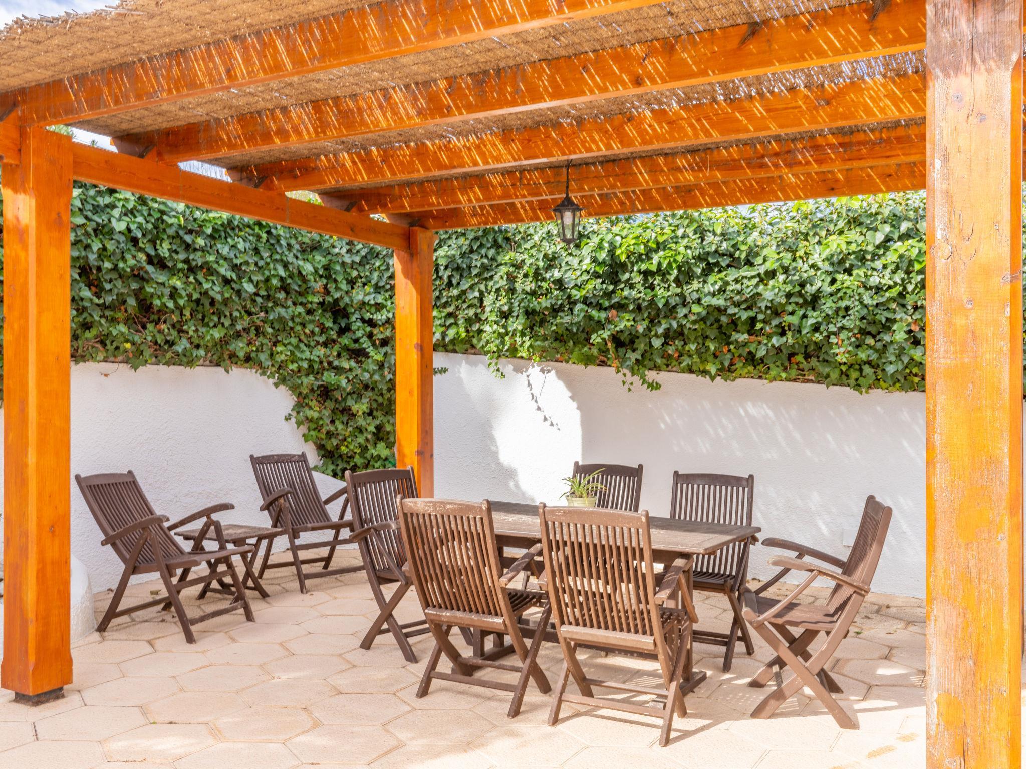 "Carlota", 4-room villa 112 m2. Comfortable and cosy furnishings: living/dining room with satellite TV, air conditioning and forced-air heating. Exit to the terrace. 1 room with 1 french bed (1 x 160 cm, length 200 cm), air conditioning and forced-air heating. 1 room with 2 beds (90 cm, length 200 cm), shower/WC, air conditioning and forced-air heating. 1 room with 2 beds (90 cm, length 200 cm). Open kitchen (4 hot plates, oven, toaster, kettle, microwave, electric coffee machine). Bath/bidet/WC. Forced-air heating. Large terrace, porch. Terrace furniture, barbecue, deck chairs. View of the resort. Facilities: washing machine, iron, children's high chair, baby cot for up to 2 year olds, hair dryer. Internet (WiFi, free). Parking (roofed). Please note: non-smoking house. VT-478144-A // Reg. Nr.: ESFCTU00000303800078726000000000000000000VT-478144-A5