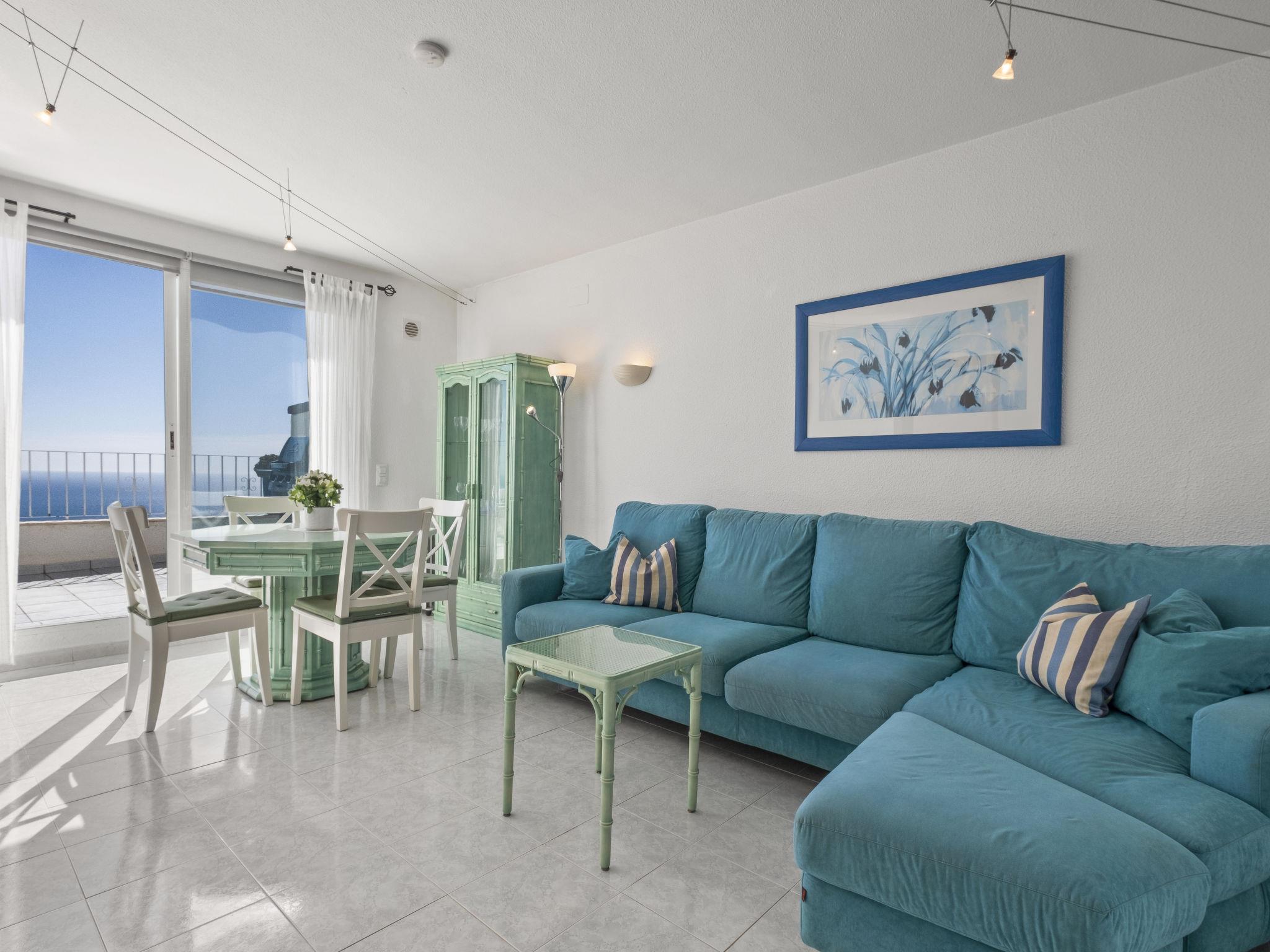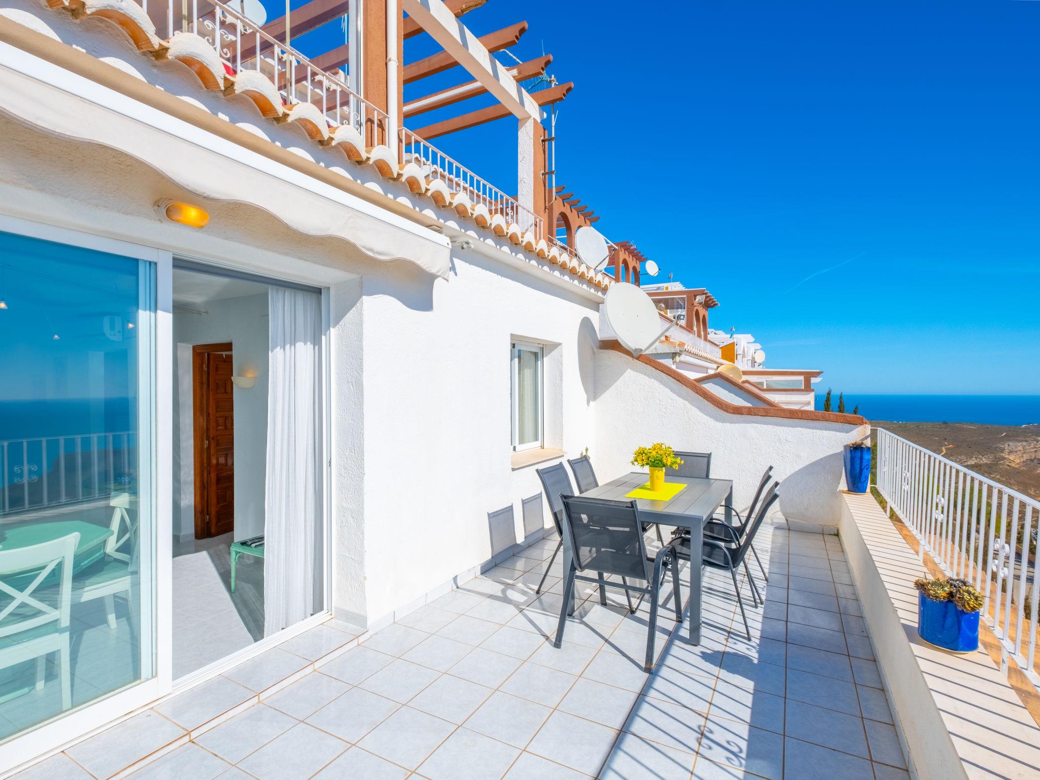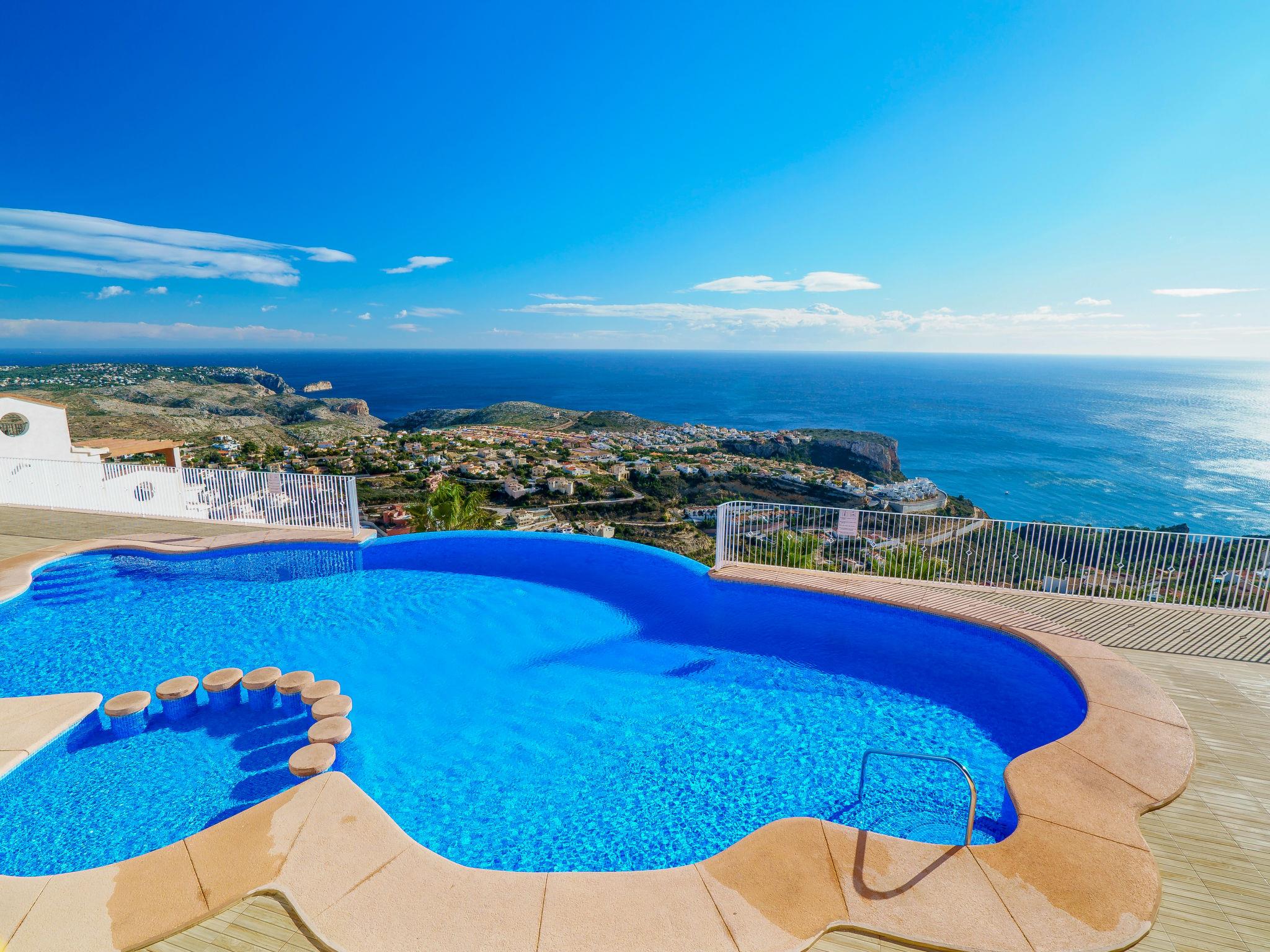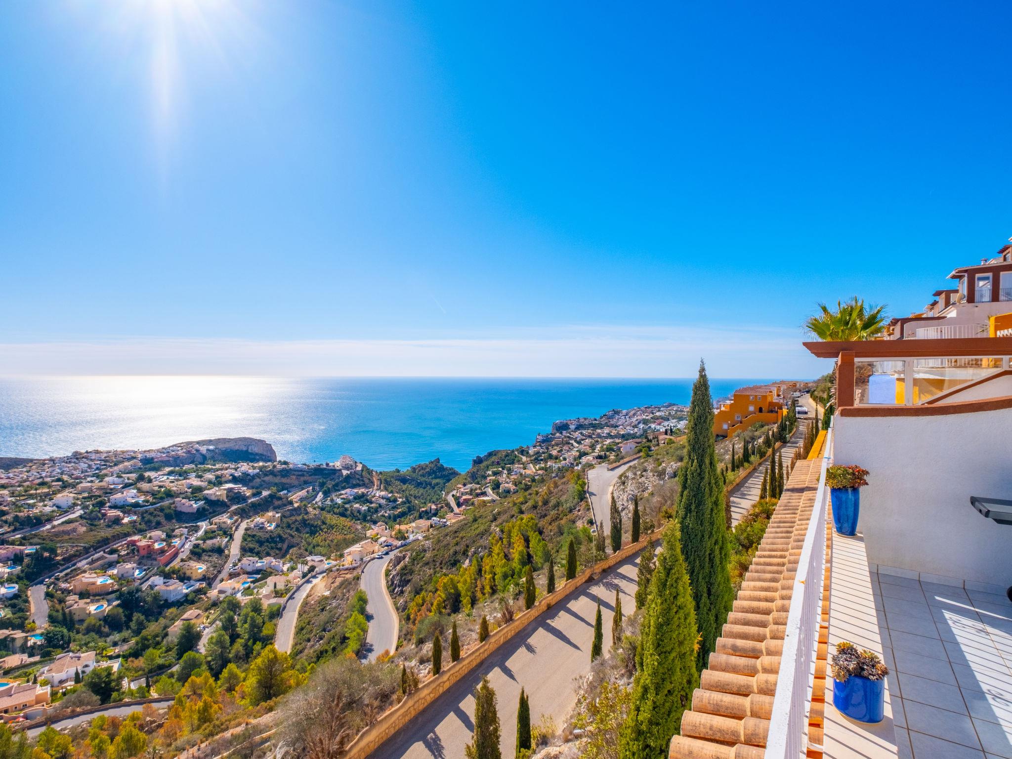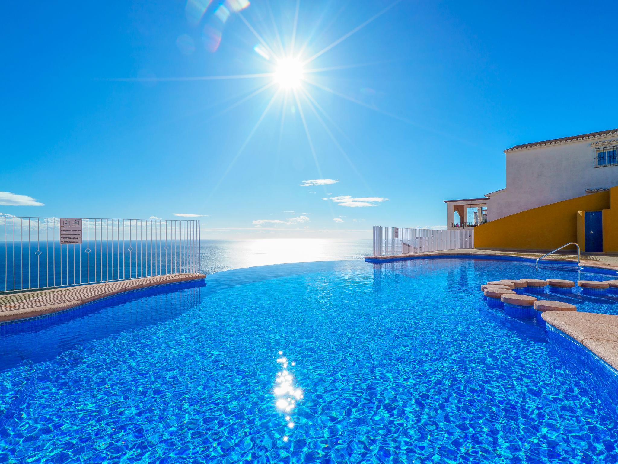 Apartment block "Pueblo Panorama". In the district of Cumbre del Sol, in a quiet, sunny position in the residential district, 4 km from the sea, 4 km from the beach. For shared use: 2 swimming pools (8 x 18 m, depth 120 - 150 cm, seasonal availability: 01.Jan. - 31.Dec.). In the house: internet access, WiFi, washing machine. Stepped path (53 steps) to the house. Shop 4.3 km, supermarket 4.3 km, shopping centre 4.3 km, restaurant 4.3 km, bus stop "Benitachell" 4 km, railway station "Teulada" 8.5 km, ferry "Denia" 22.5 km, sandy beach "Playa Ampolla" 8 km pebble beach "Cala Moraig" 4 km, outdoor swimming pool 10 m. Please note: car recommended. Suitable for families, suitable for seniors. The owner does not accept any youth groups.