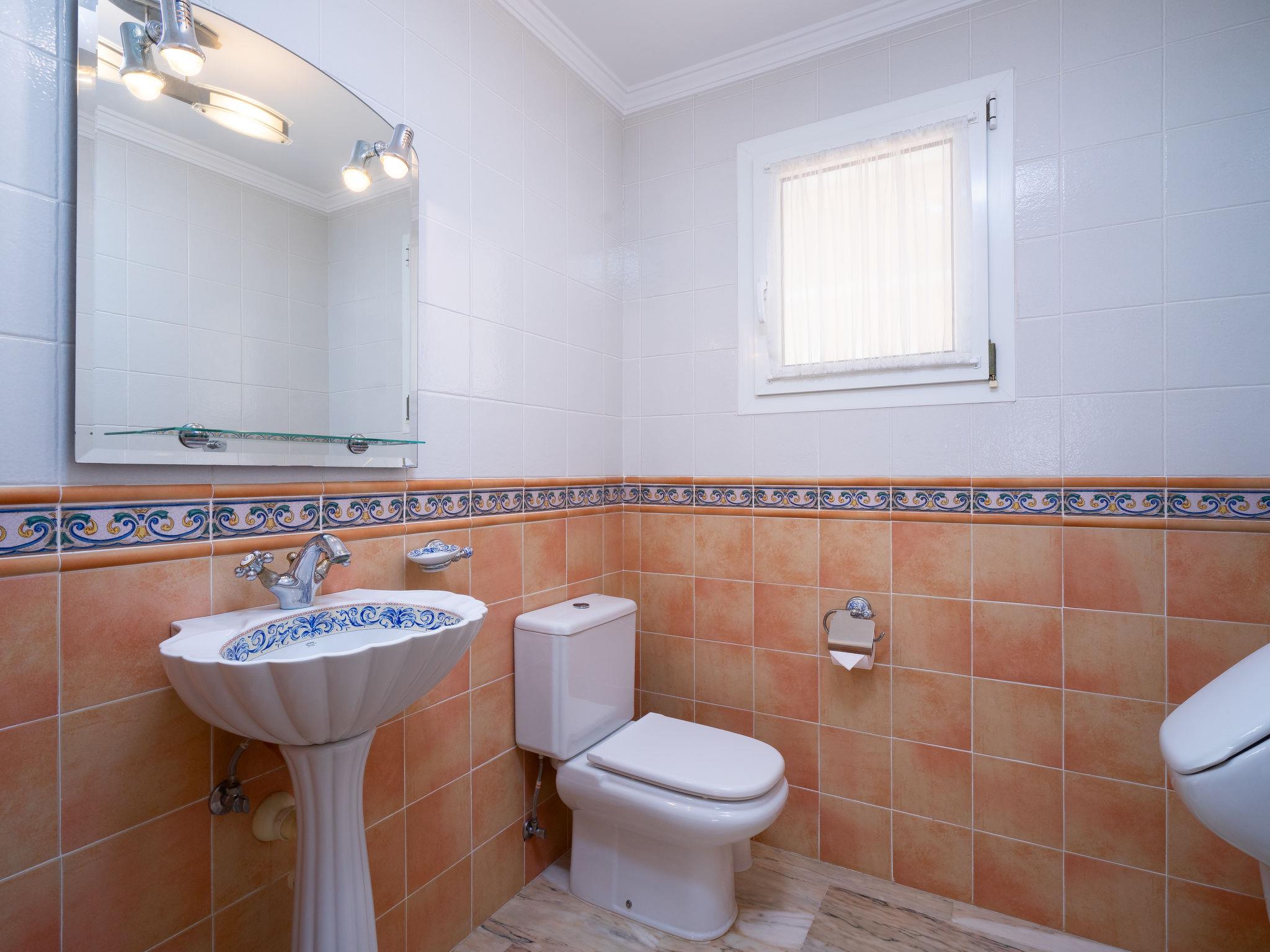 4-room villa 270 m2 on 2 levels. Very comfortable and modern furnishings: living/dining room 80 m2 with open-hearth fireplace, satellite TV and radio. Exit to the terrace, to the swimming pool. 1 room with 1 french bed and shower/bidet/WC. Exit to the balcony. Kitchen (oven, dishwasher, microwave, freezer). Sep. WC. Electric heating, air-conditioning. Upper floor: 1 room with 1 french bed and satellite TV. 1 room with 1 french bed and satellite TV. Exit to the terrace. Shower/WC. Electric heating, air-conditioning. Deck chairs. Marvellous panoramic view of the sea, the mountains and the countryside. Facilities: washing machine, dryer, iron, hair dryer. Internet (WiFi, free). AT-441005-A // Reg. Nr.: ESFCTU00000303800076698200000000000000000AT-441005-A6