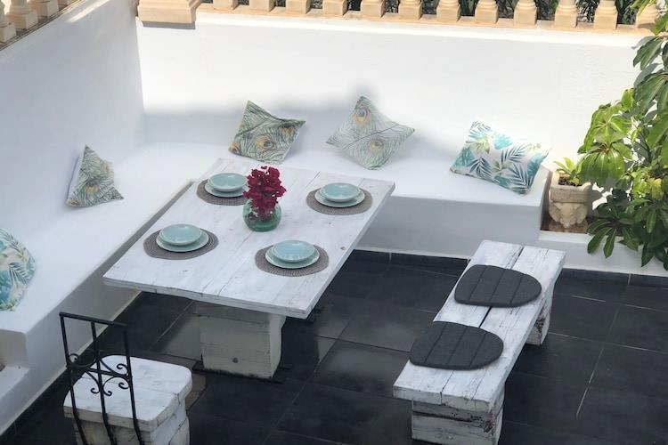 Denne charmerende lejlighed i stueetagen i Moraira tilbyder et afslappende ophold kun 100 meter fra stranden og en kort gåtur fra byens centrum. Ideel til familier eller små grupper, det er perfekt positioneret til at udforske Costa Blancas kystperler. Nærliggende attraktioner omfatter det naturskønne Playa del Portet, det historiske Castillo de Moraira og den panoramiske Torre Vigía Cap d'Or. For naturelskere tilbyder de nærliggende bugter og vandrestier en uforglemmelig udsigt over Middelhavet. Lejligheden har fuldt udstyret køkken med kaffemaskine, ovn, mikroovn og opvaskemaskine. Opholds-/spiseområdet omfatter et fladskærms-tv og et spisebord til fire. Med to badeværelser og to soveværelser kan det komfortabelt rumme op til fire gæster. Yderligere faciliteter omfatter en vaskemaskine, strygefaciliteter, mobilt klimaanlæg og en privat terrasse til udendørs afslapning. Moraira er omgivet af kystcharme og byder på en pulserende kulinarisk scene. Nyd middelhavssmag på Restaurante Sand Moraira, kreative tapas på Chic Gastronomic eller frisk fisk og skaldyr på El Cafeti de la Mar. Uanset om du solbader, udforsker historiske steder eller spiser al fresco, er denne lejlighed en perfekt base for dit Costa Blanca-eventyr.