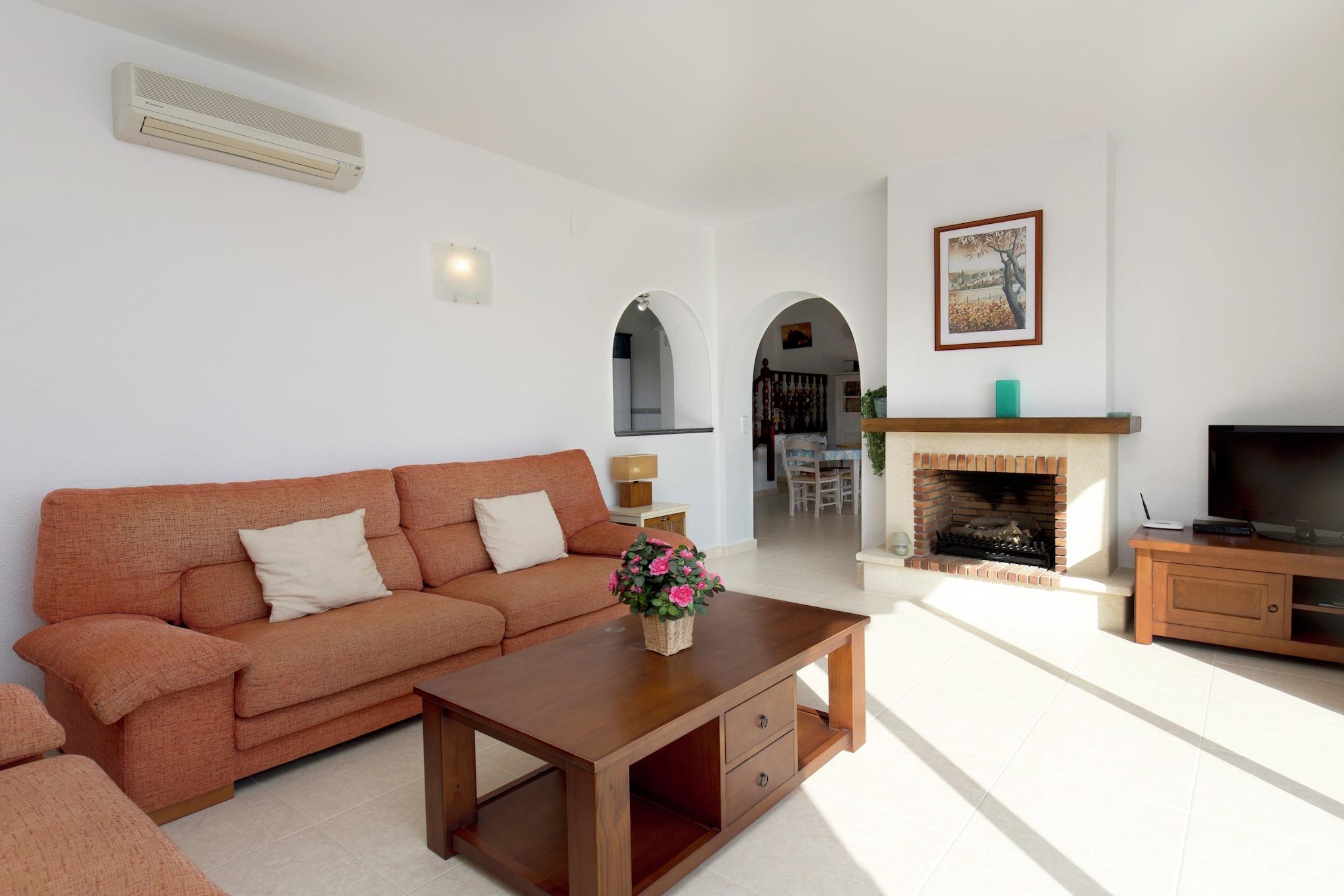 Beliggende i Moraira, denne fredfyldte villa med 3 soveværelser tilbyder vidunderlig udsigt over havet og er perfekt for en gruppe på 6 personer eller familier med børn at bo komfortabelt. Der er en privat swimmingpool til at nyde en forfriskende dukkert under opholdet_x000D_ _x000D_ Du kan udforske den imponerende indre region på Costa Blanca. Den storslåede natur i Jalon-dalen på 20 km er betagende. Benissa og Gata de Gorgos er på 20 km for at beundre spansk livsstil og mad og Terra Mitica, den største forlystelsespark i Spanien kan nås på 30 km. Nyd solnedgangen og lad dine børn lege på stranden i 900 m. Du kan finde restauranter og supermarked i kort afstand af 2 km._x000D_ _x000D_ Der er aircondition og varme for at holde dig hyggelig eller kølig, som du ønsker. Nyd hjemmelavede måltider og slap af i stuen/spisestuen, mens du ser tv. Grillen på terrassen er en perfekt afslutning på din spændende dag. Børn har en barneseng og høj stol at bruge._x000D_ _x000D_ Lufthavnen ligger 85 km derfra.