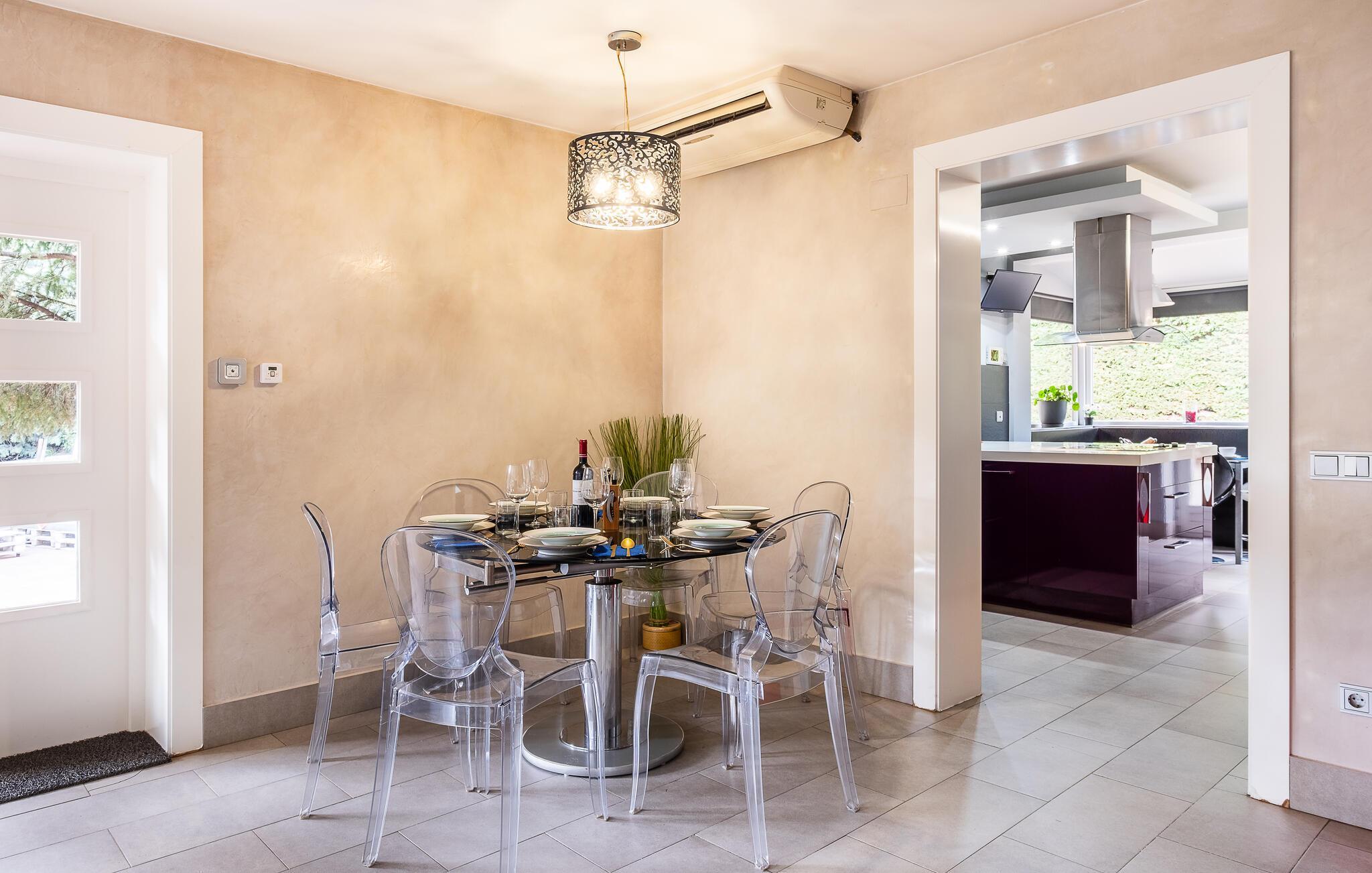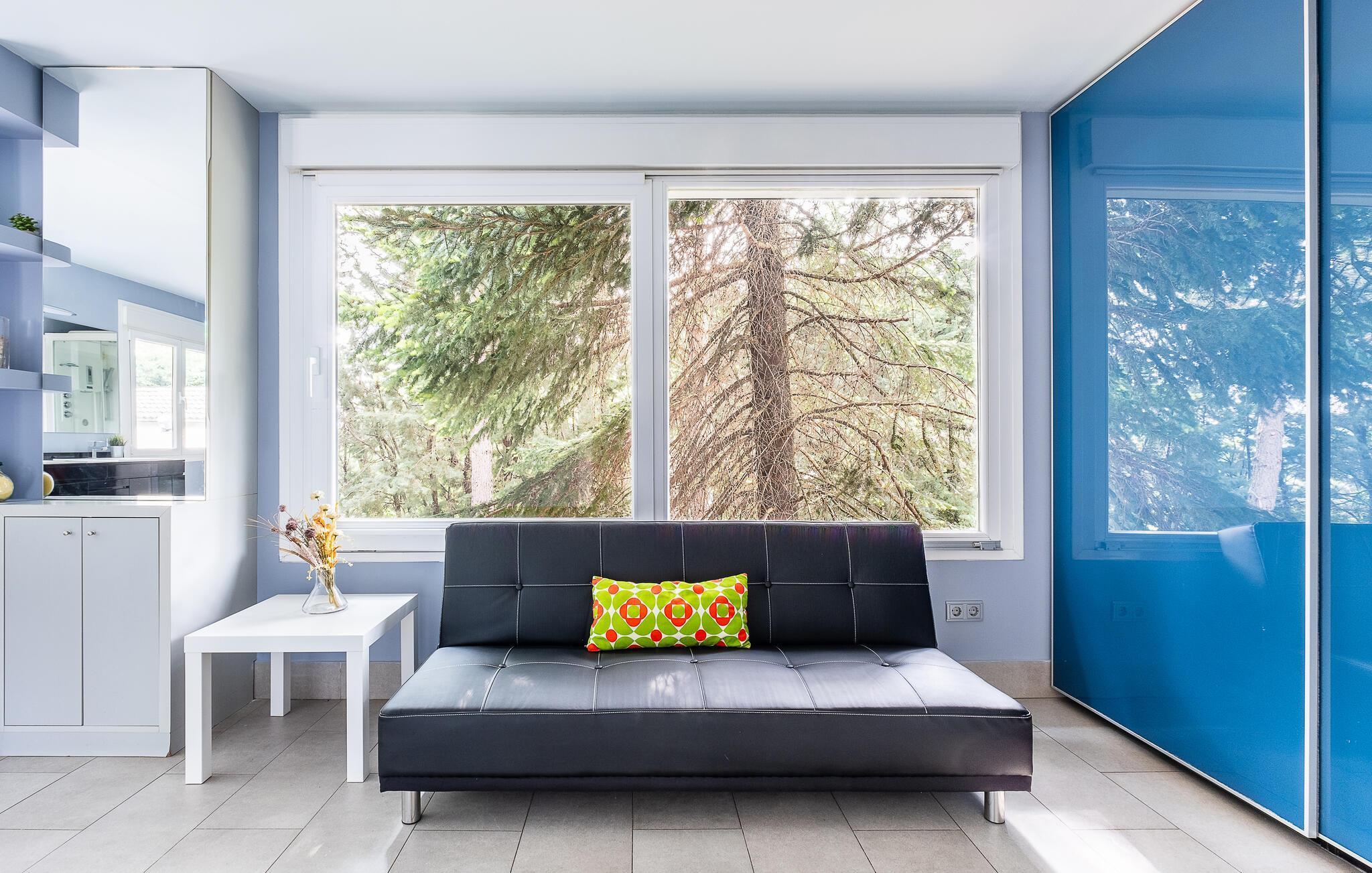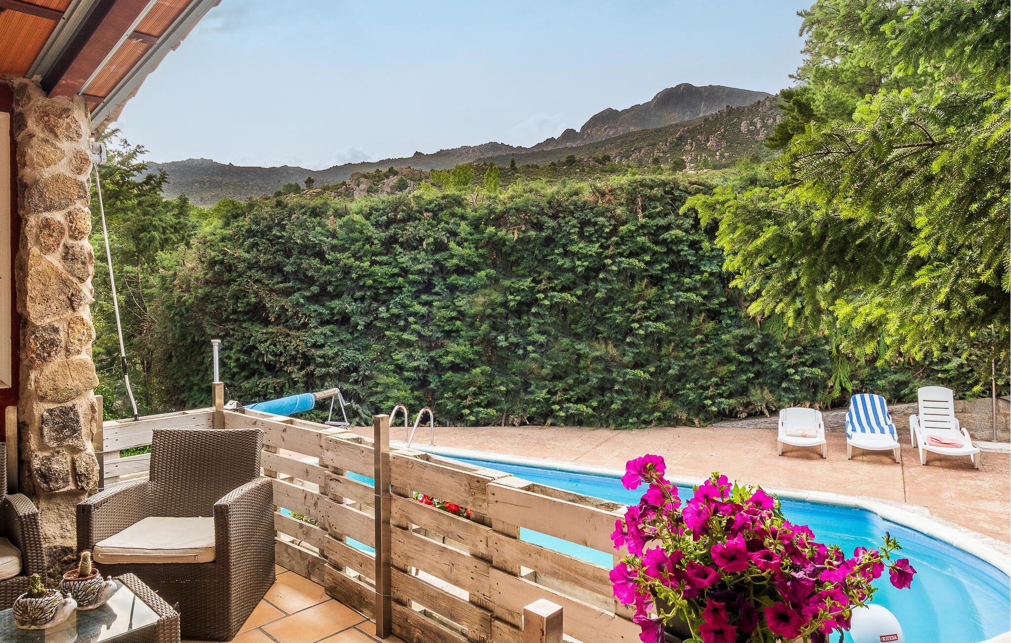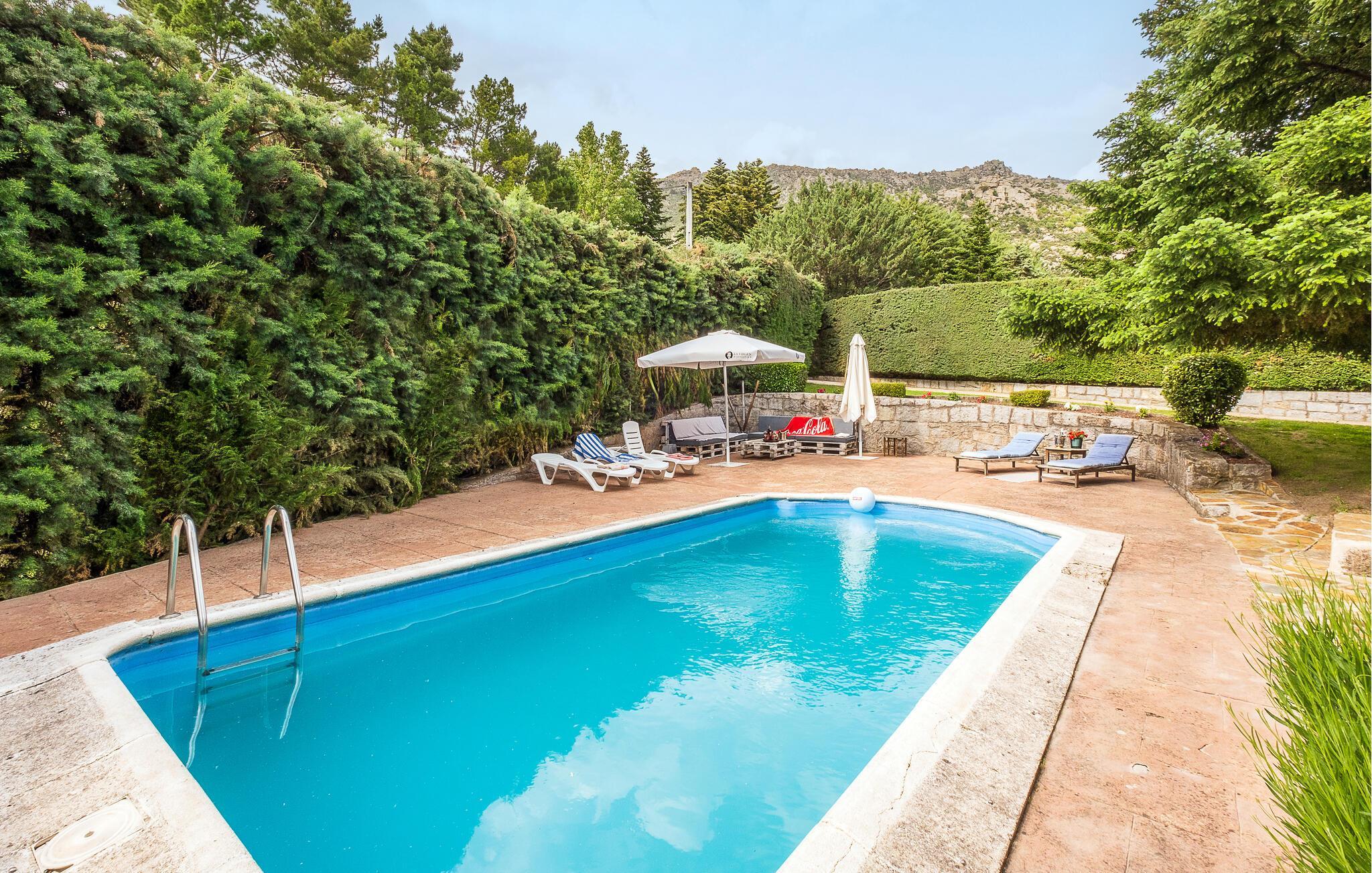 Nyd en ferie tæt på naturen i dette feriehus med pool. Idyllisk beliggende og med gode muligheder for at udforske naturen tilbyder dette komfortable og lyse hus et vidunderligt tilflugtssted. Nyd tiden sammen i smukt møblerede værelser, slap af i spabadet med en fantastisk udsigt, og glæd jer til hyggelige aftener ved den knitrende pejs efter aktive dage i det omkringliggende område. Glæd jer til behagelige timer udendørs, hvor I kan nyde solen på terrasserne, forfriske jer i poolen med udsigt over bjergene og grille på lune sommeraftener. Oplev det storslåede bjerglandskab på velafmærkede vandrestier. Besøg det ugentlige marked i centrum af Moralzarzal og prøv regionale specialiteter. Gå en tur gennem gyderne, stop ved en tapasbar, og lad jer rive med af landsbyens varme atmosfære.