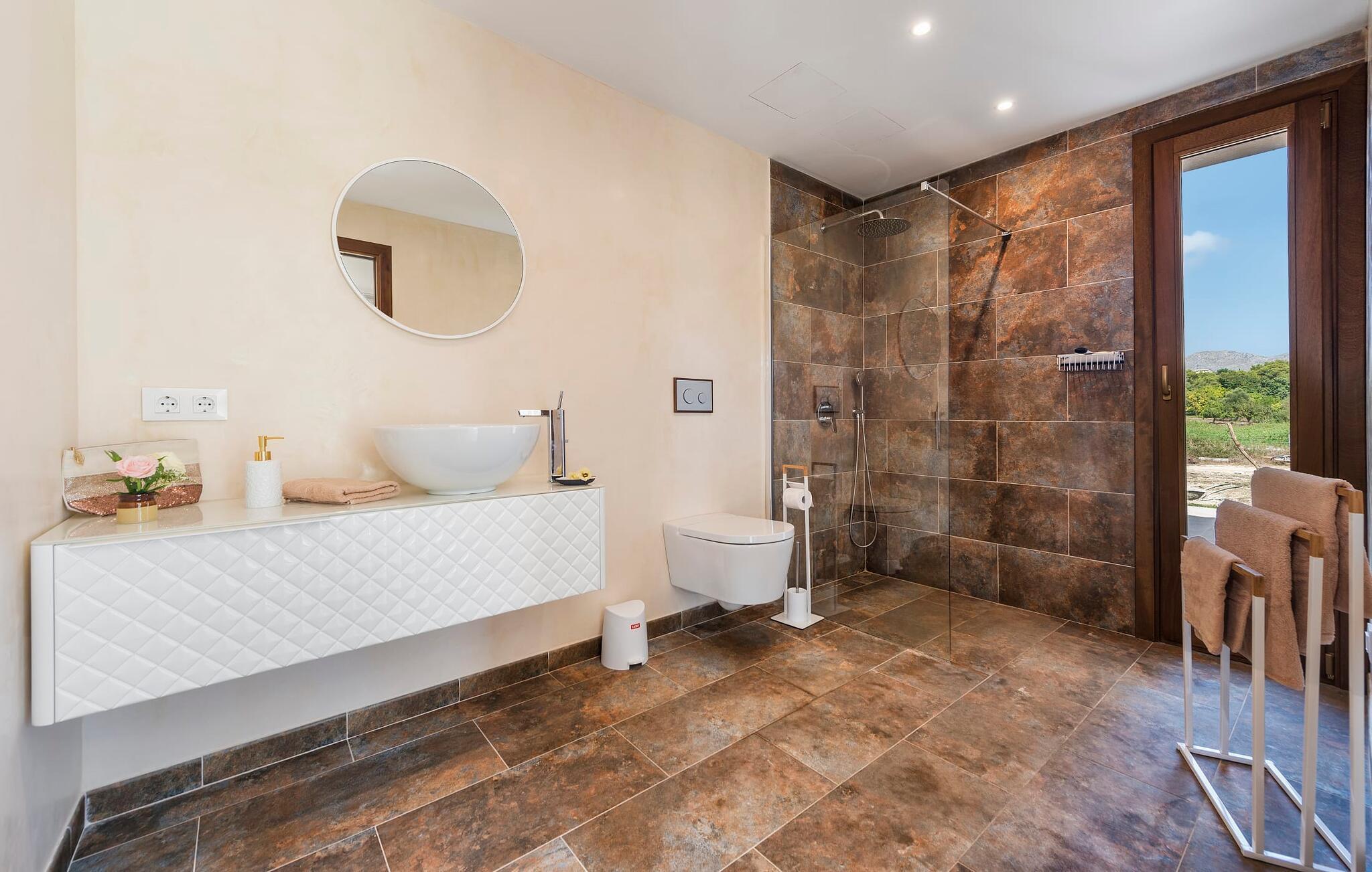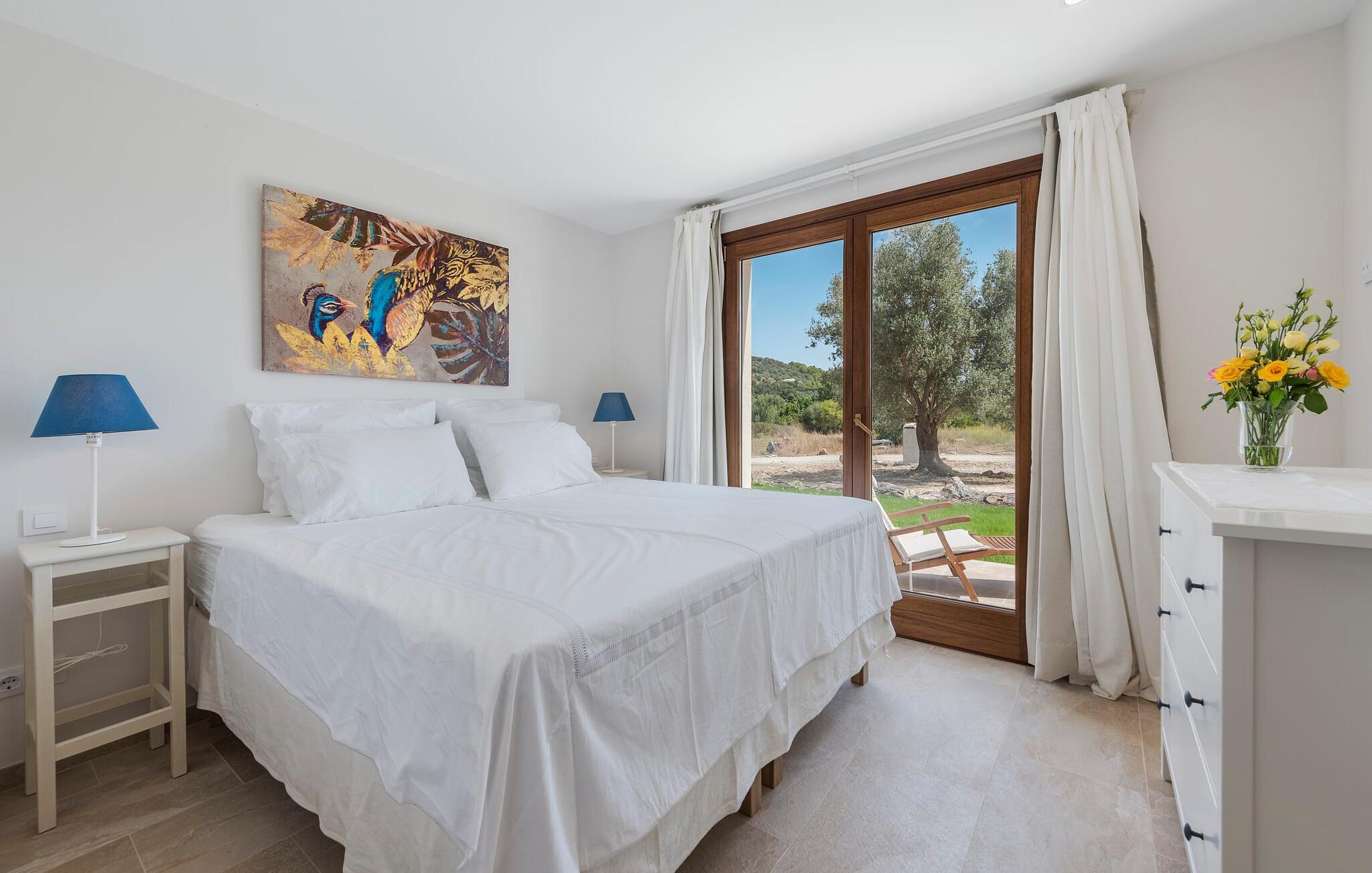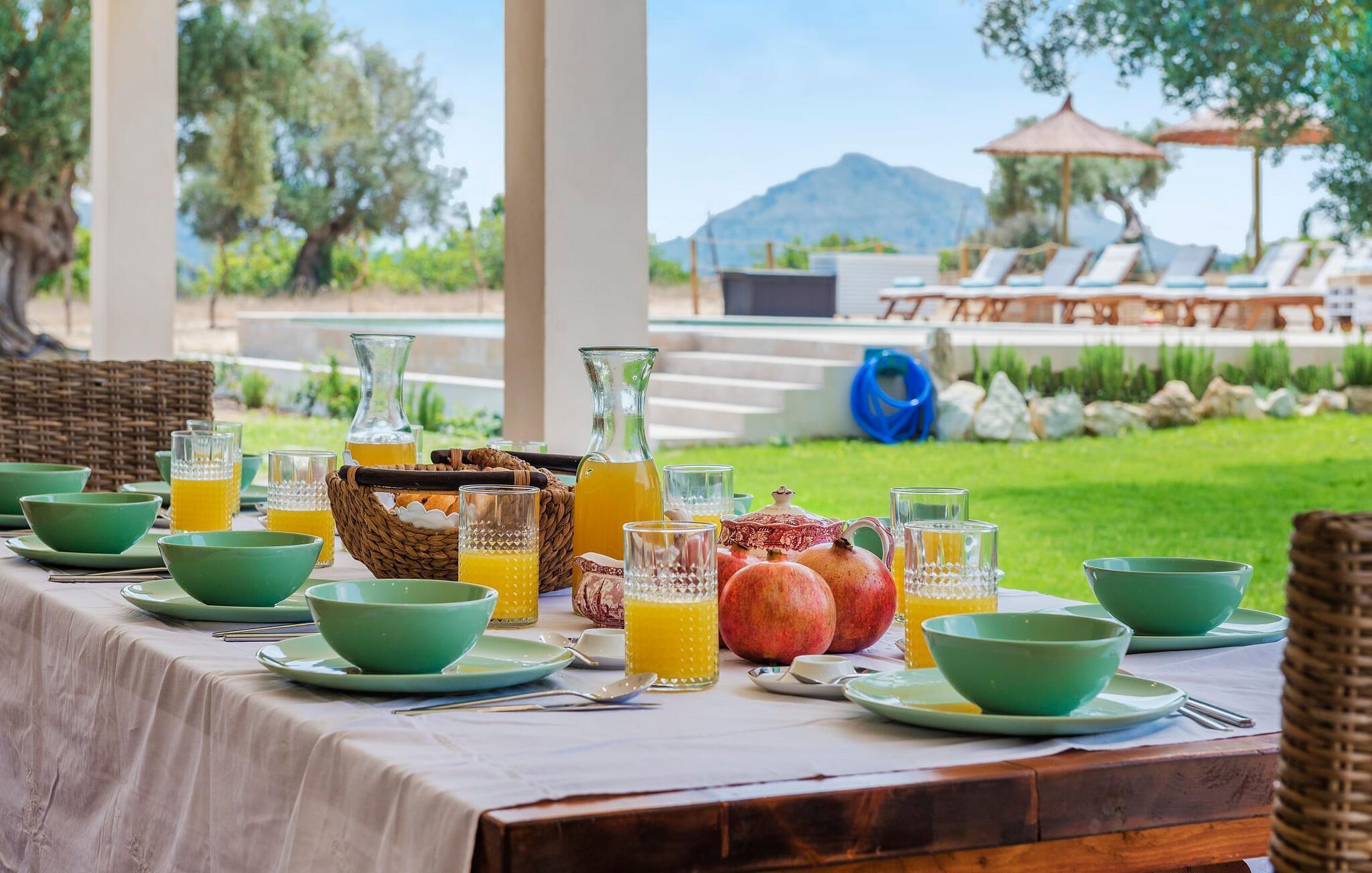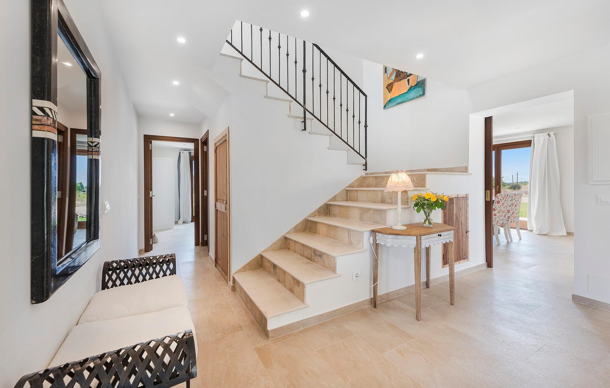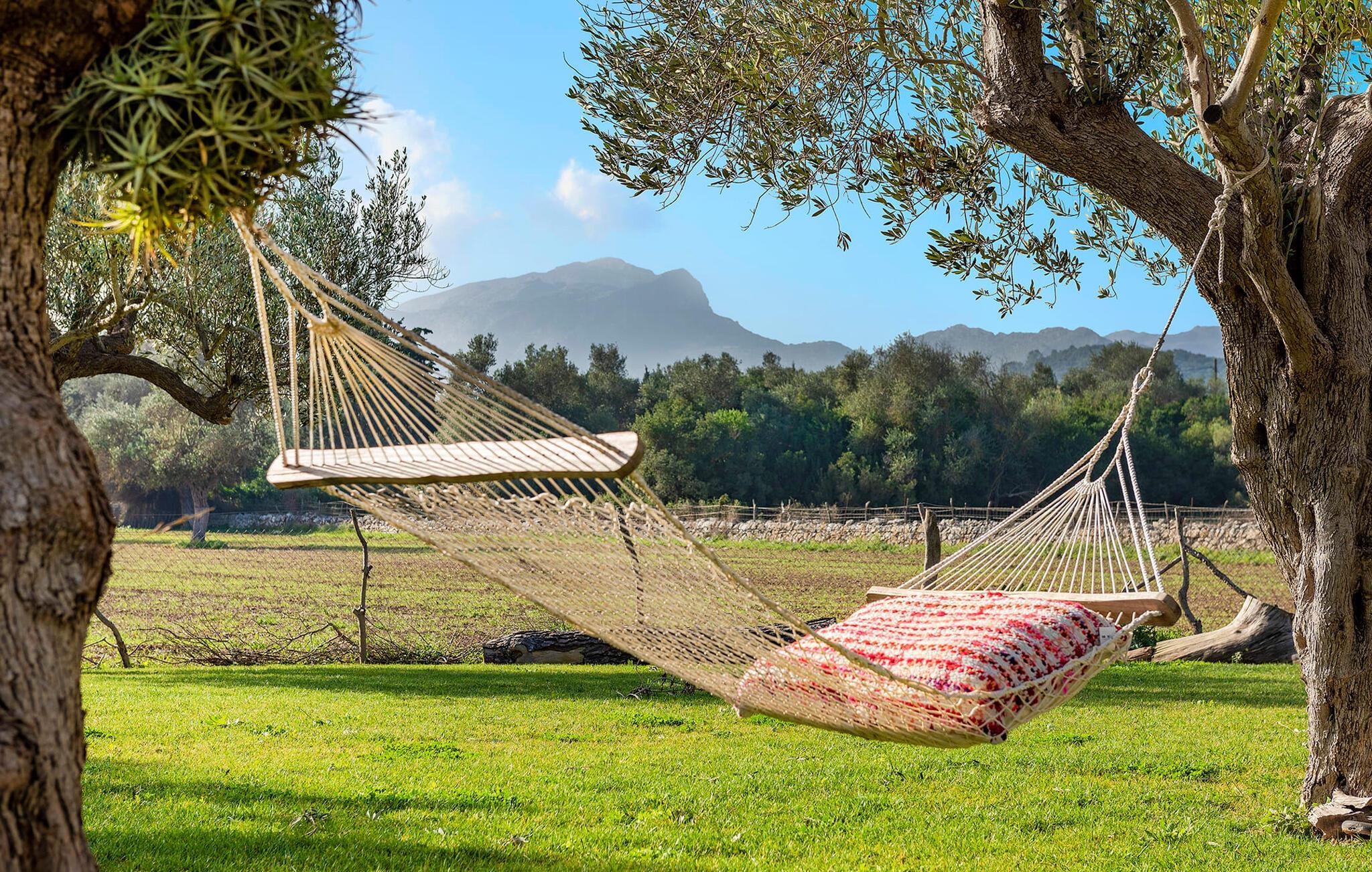 Velkommen til "Morell Nou", en særdeles smuk og eksemplarisk bæredygtigt designet finca. Et fantastisk udendørsområde med ærværdige træer (f.eks. et oliventræ, der er over 1000 år gammelt) er udstyret med adskillige siddemuligheder. I skyggen af de gamle træer kan du nyde naturen og slappe af i hængekøjen. Slap af på komfortable liggestole eller på den balinesiske seng. Morgenmad på den overdækkede terrasse, en sundowner i chill loungen eller en grill tilberedt i det store udekøkken - det sociale samvær er meget vigtigt her. I en helt ugenert, afsondret beliggenhed kan du nyde fordelene ved en meget veludviklet region. Som en ekstra service arrangerer de venlige ejere gerne transport af lejecykler til fincaen. Så intet står i vejen for din aktive ferie ved at udforske nordens bugter. Der er også lagt stor vægt på detaljerne i det indre af den renoverede finca, som skaber en utrolig charme med en høj feel-good-faktor. Både familier og vennegrupper vil sætte pris på dette. Gammelt kombineres med nyt, og derfor passer det fritlagte murværk særligt godt sammen med møbler i landlig stil med vintage flair. Du kan nyde udsigten over haven fra både den rummelige stue og det fuldt udstyrede køkken med en afslappet råhvid kogeø og spiseplads. De mange gulv-til-loft-vinduer forbinder dig direkte med det omgivende terrasselandskab. Her er der tænkt på meget, især for gæster - huset med sin barrierefri etværelses lejlighed i stueetagen er også velegnet til mennesker med handicap. Udover et soveværelse med et stilfuldt en-suite badeværelse er der en ekstra stue (pejsen kan ikke bruges her) og direkte udgang til haven. De andre soveværelser med dobbeltsenge (et med eget badeværelse og et andet badeværelse med bruseniche) er placeret på øverste etage. Særligt rart er, at du fra hvert af disse afslapningsrum også har udgang enten til tagterrassen med bred havudsigt eller til en anden, mindre terrasse. Så når du står op om morgenen kan du nyde den mest vidunderlige udsigt, som denne skønne ejendom byder på året rundt, især da huset har gulvvarme. “Morell Nou” er derfor en rigtig klassiker i et nytænkende og flot design. Det traditionelle landsted i et nyt udseende kaldet "Morell Nou" ligger i en vidunderlig, afsondret beliggenhed nær Pollença-bugten og byen af samme navn i den nordlige del af øen. På cirka 15 minutter i bil kan du ikke kun nå golfbanen i Pollença og kystnaturparken l'Albufereta, men også de attraktive byer og smukke strande, der kendetegner Pollença-bugten. Alene den brede udsigt over havet og de majestætiske bjerge viser tydeligt denne regions mangfoldighed. Dette er et Fincallorca feriehus.