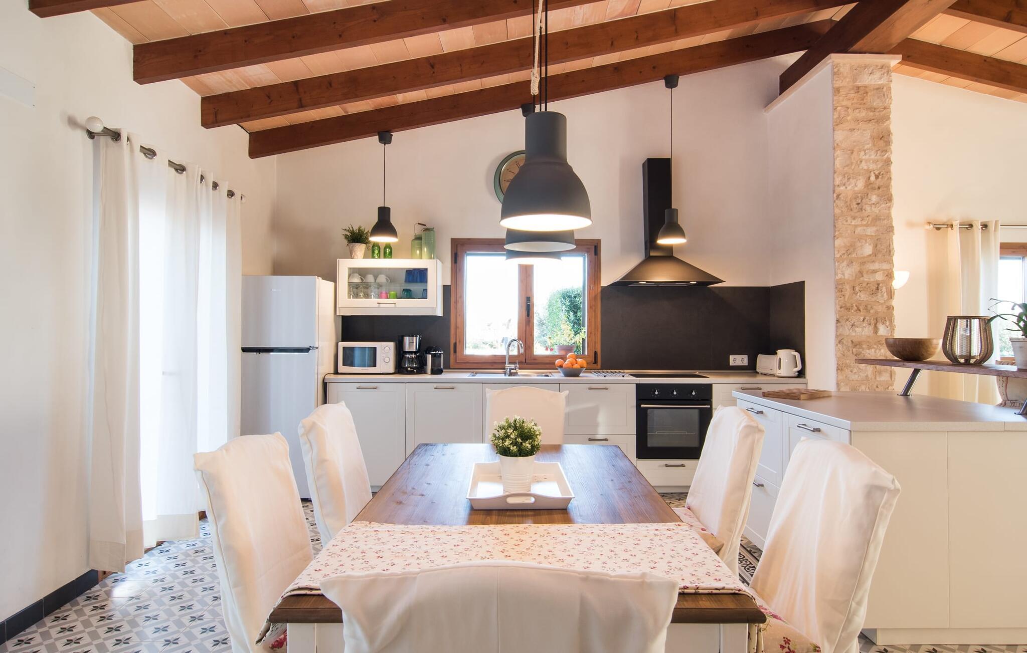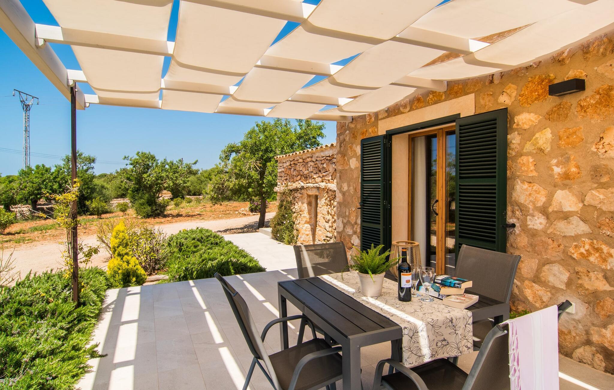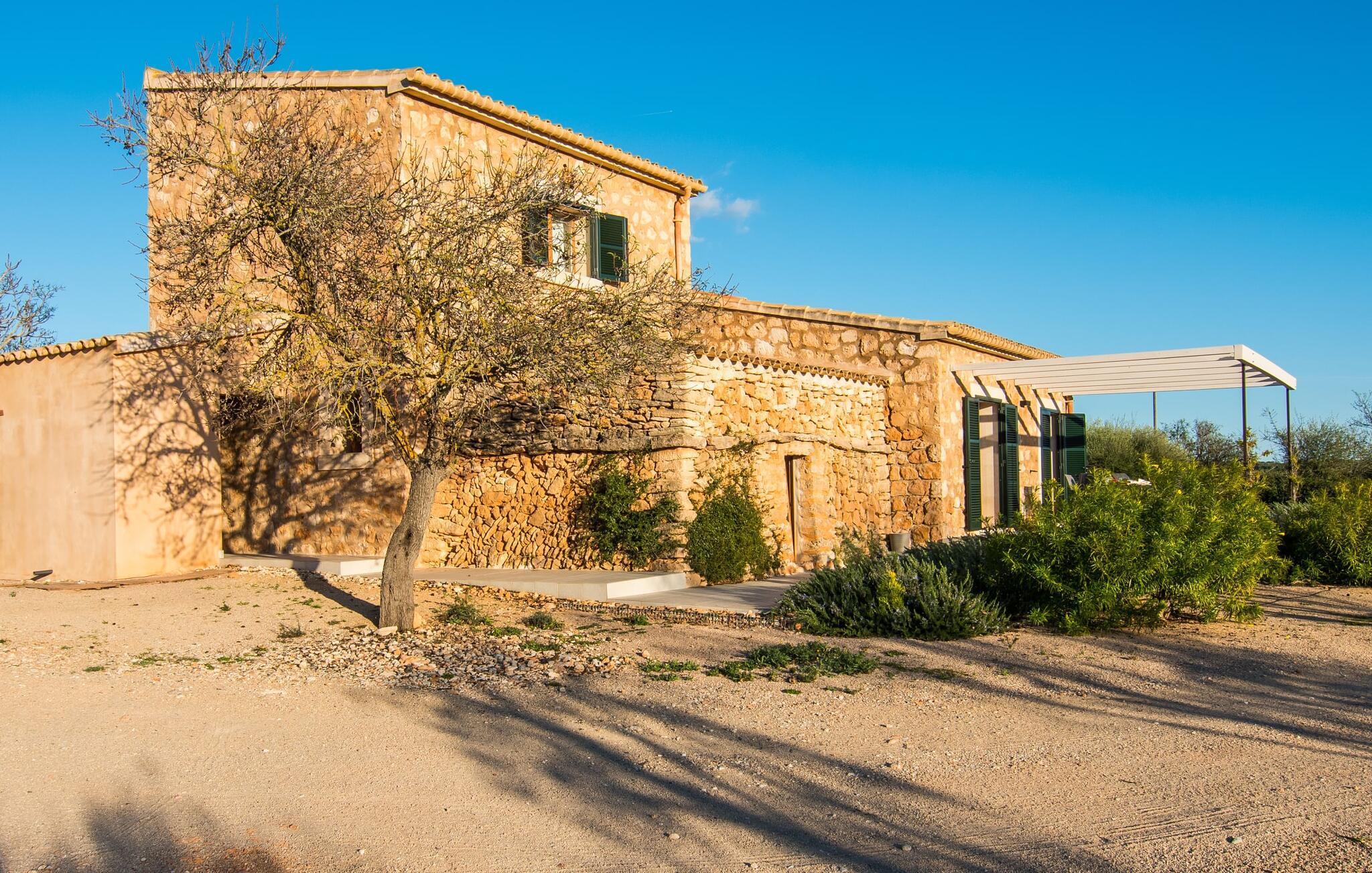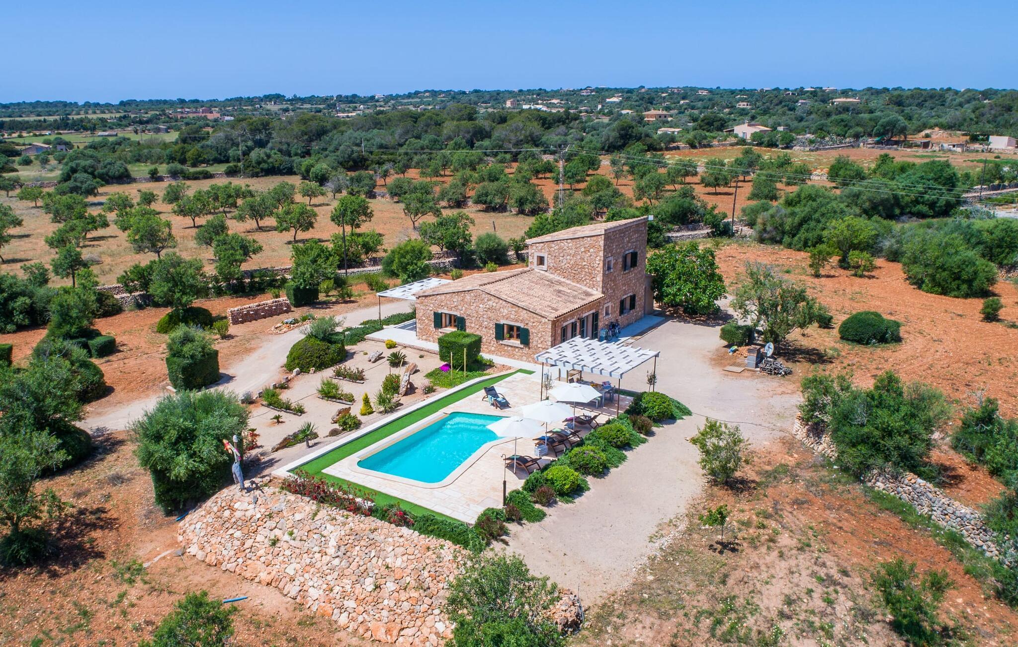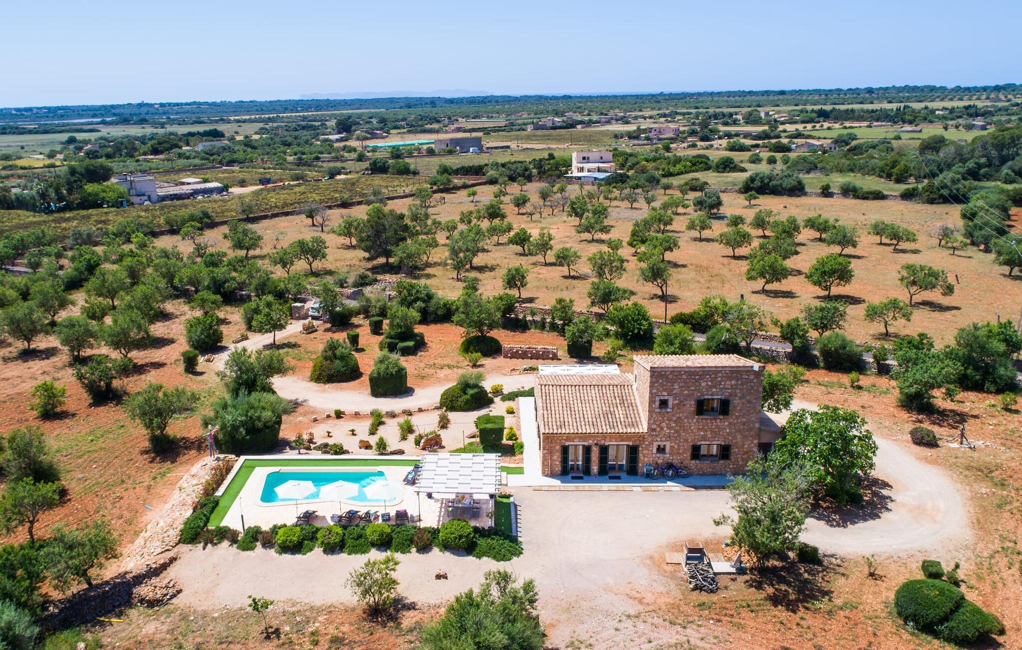På trods af husets landlige beliggenhed er det stadig et glimrende udgangspunkt for forskellige ture for at udforske øen. Villaen ligger vest for den lille by Ses Salines, som kan nås på 5 minutter i bil. Ses Salines er indbegrebet af en traditionel mallorcansk lille by, hvor du bør finde alt, hvad du behøver til en afslappende ferie. Da villaen ligger kun 250 m fra en lille landevej, er det også meget nemt at komme til forskellige kystbyer som Colònia de Sant Jordi. Kysten nord for Colònia de Sant Jordi byder på nogle smukke sandstrande, især den spektakulære Es Trenc-strand. Og om aftenen, når du er færdig med dine daglige udflugter, kan du komme tilbage og nyde privatlivets fred i den smukke Villa "Morell". Vi hos Fincallorca ønsker dig et behageligt og afslappende ophold. Villaen "Morell", bygget i 2015, er idyllisk beliggende på landet, kun 5 minutters kørsel fra den maleriske by Ses Salines. Du kan tage ind til byen for at shoppe dagligvarer og andre væsentlige ting, og om torsdagen kan du endda handle på det ugentlige farmers market. Den smukke kystby Colònia de Sant Jordi ligger også kun 4 km væk. Denne tidligere fiskerby har to smukke sandstrande, den nordlige er den berømte uspolerede naturstrand Es Trenc.