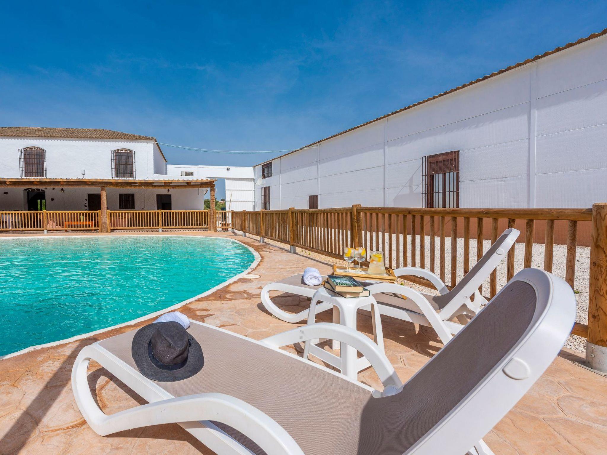 Casa San Miguel is ideal for large groups. Large outside porch with barbecue and bar, overlooking the large rustic swimming pool, the house with 6 rooms for up to 20 people is built in typical Andalusian architecture with Arabic touches and handmade mosaics.