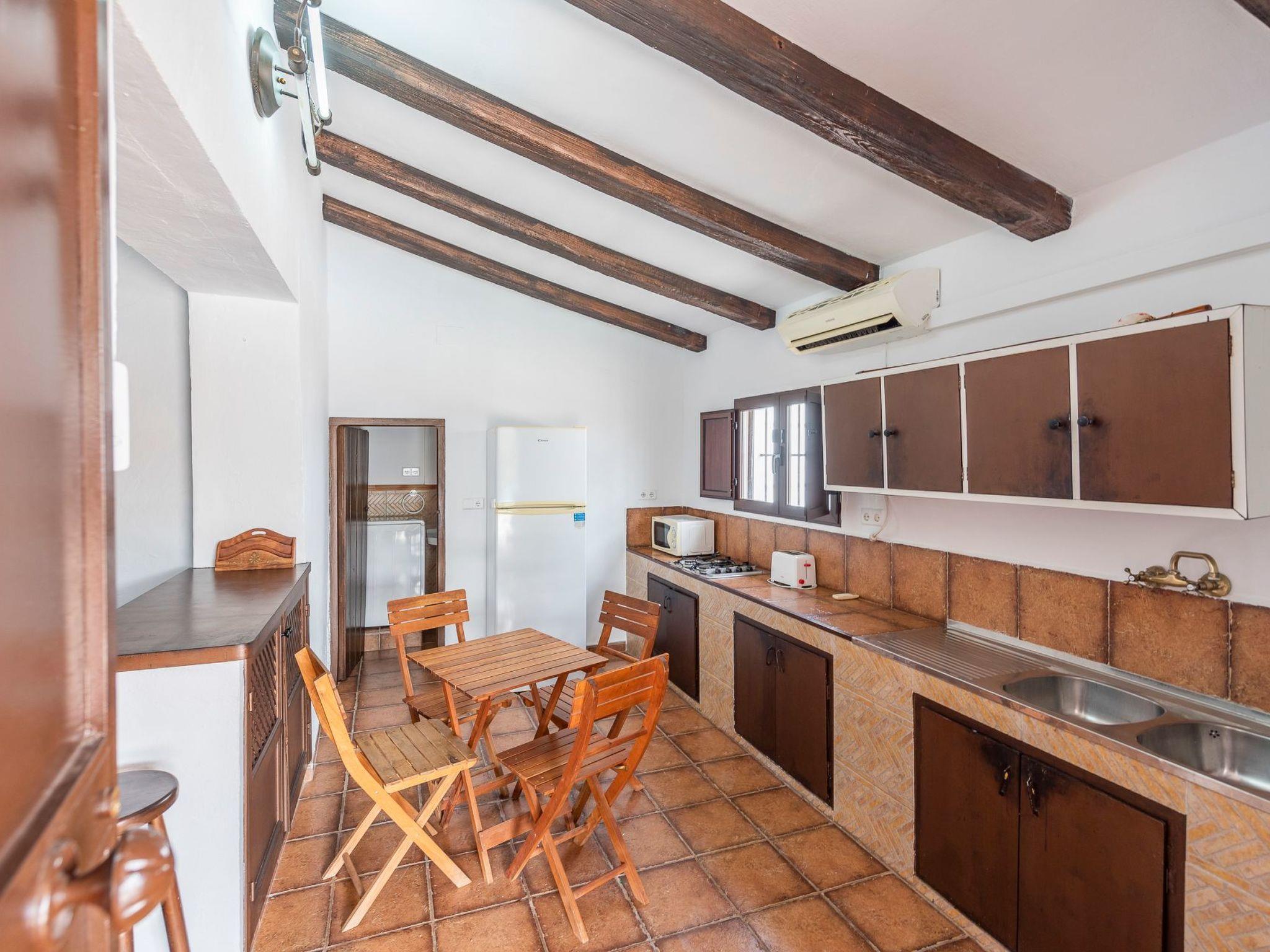 Basic kitchen open to the living room, microwave, 2 ring cooker, extractor hood, fridge, coffee maker,...