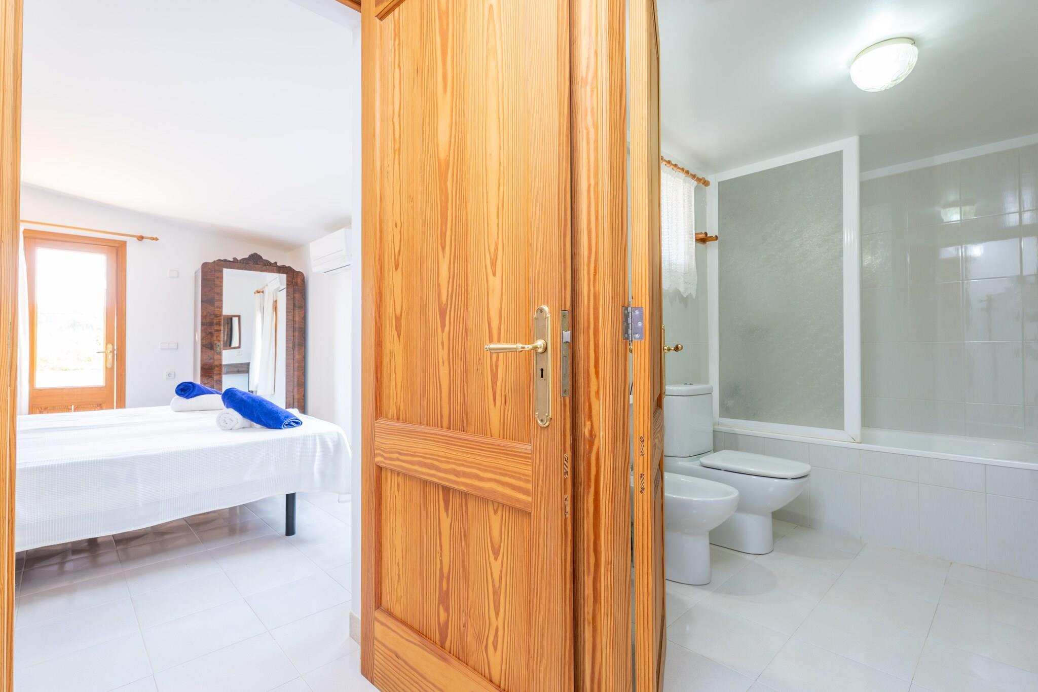 Dette charmerende hus tilbyder en unik blanding af landlige ro og landsby bekvemmelighed, beliggende kun 300 meter fra centrum. Det smukt anlagte ydre byder på en dejlig klorpool, der måler 8 x 3 meter med en dybde på 1,5 til 1,8 meter, perfekt til svømning eller til at slappe af på en af de seks liggestole. Nyd at læse under den stråtækte parasol eller samles omkring det store udendørs grillområde til mindeværdige måltider med familie og venner. Indvendigt byder stueetagen på en hyggelig stue/spisestue med komfortable siddepladser og satellit-tv samt et rummeligt traditionelt køkken udstyret med en keramisk kogeplade. Der er også et badeværelse med bruser, et toilet og to soveværelser - det ene med en dobbeltseng og det andet med to enkeltsenge. Ovenpå finder du et tredje soveværelse med to enkeltsenge og udgang til en terrasse samt et badeværelse med badekar. Hvert soveværelse indeholder et klædeskab, plads til en barneseng, en høj stol og en ventilator. Et vaskerum med en strygebræt, strygejern og vaskemaskine er også tilgængelig. Moscari er en malerisk landsby ved foden af Tramuntana-bjergkæden, ideel til at opleve lokale traditioner og udendørs aktiviteter som vandre- og cykelture. Efter en dag med udforskning kan du overveje at spise på den lokale restaurant, Sa Plaça. Den nærmeste strand, Port de Pollensa, byder på krystalklart vand, og der er mange andre strande og bugter at opdage i nærheden. Bemærk venligst: kæledyr er ikke tilladt, og arrangementer er forbudt. Udvendig parkering er tilgængelig for tre biler. Turistlicens: ETV/5205 Som reaktion på Coronavirus (COVID-19) er yderligere sikkerheds- og sanitære foranstaltninger i kraft på denne ejendom.