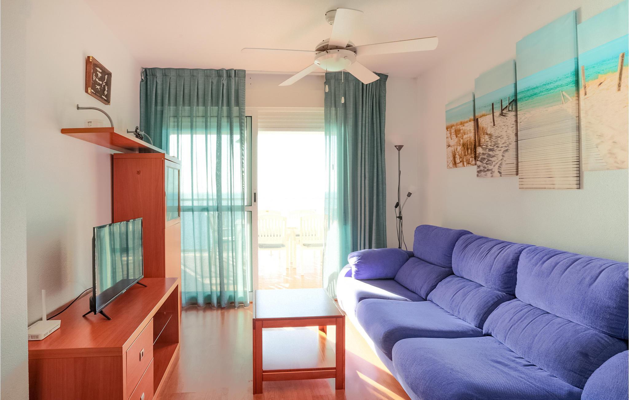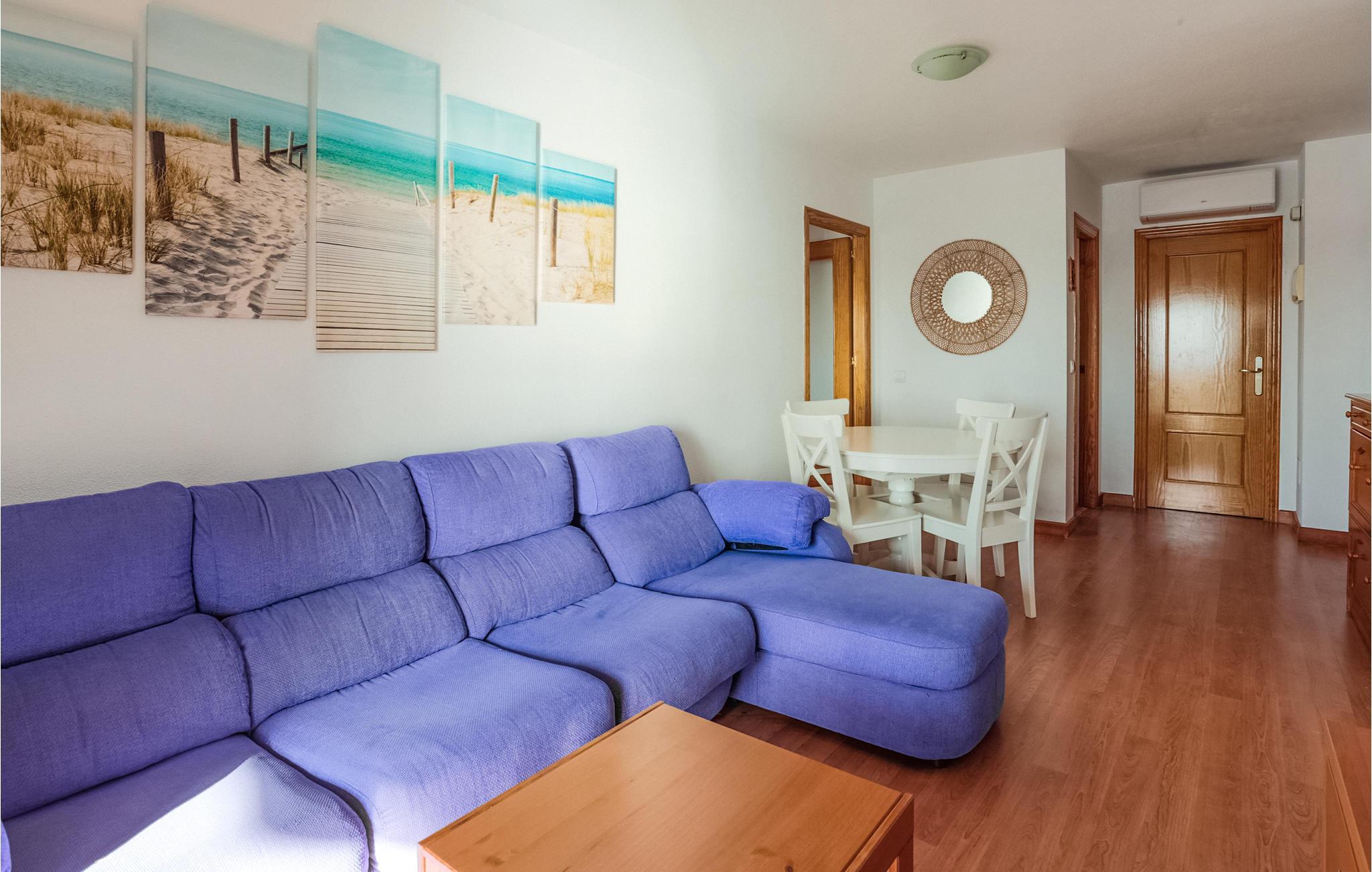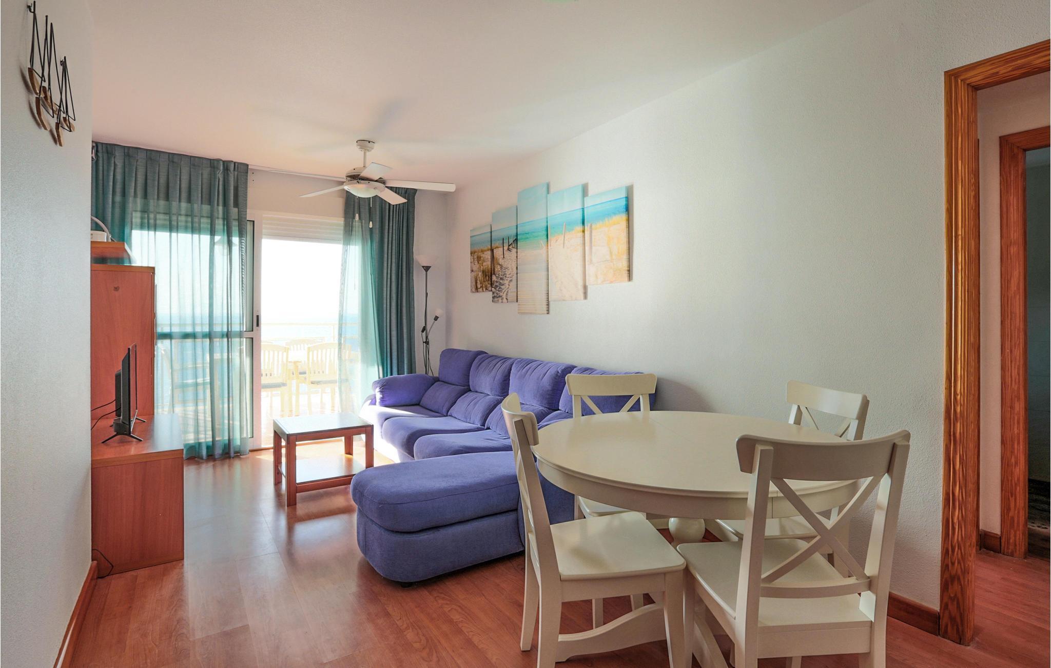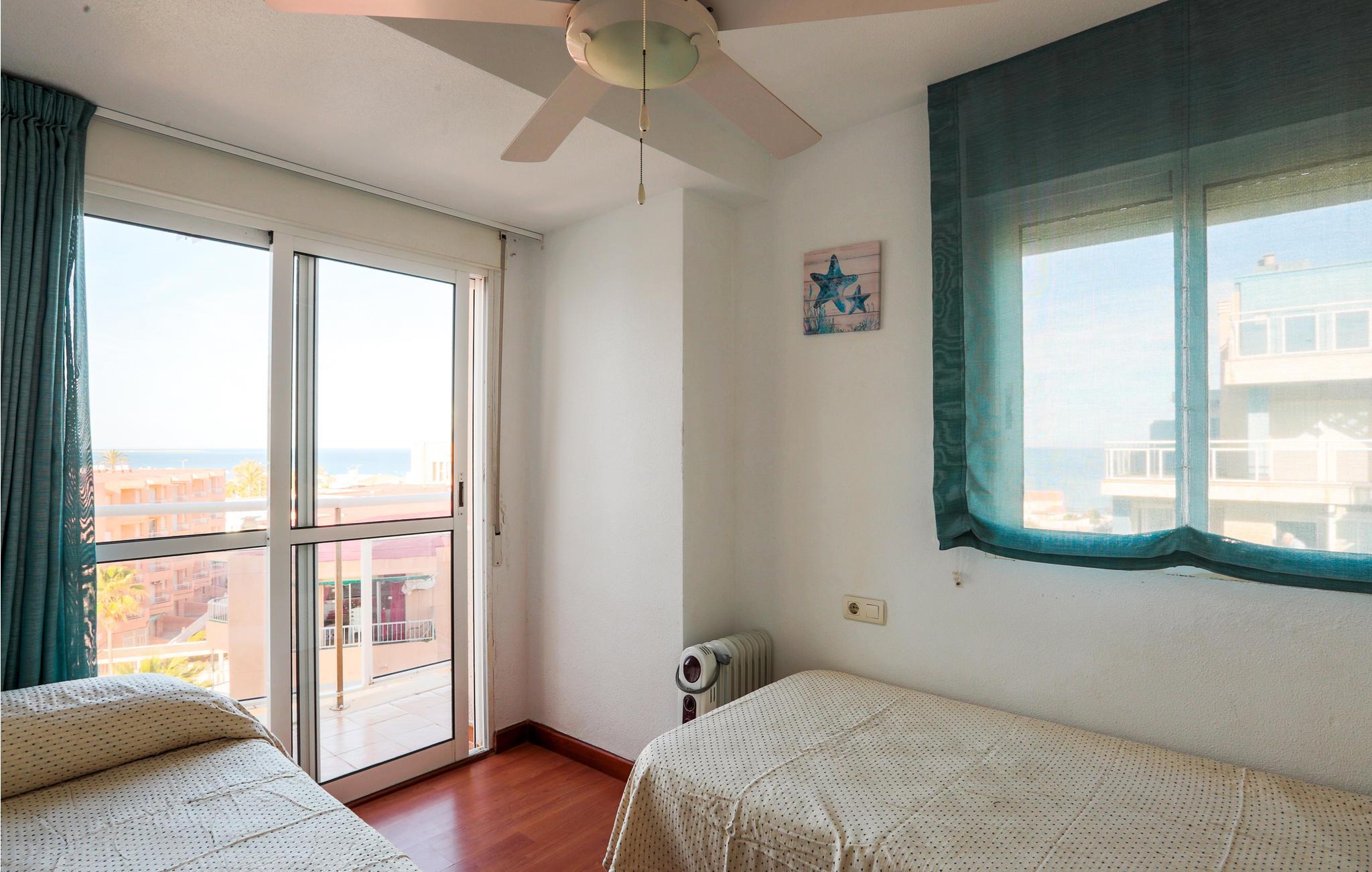 Denne hyggelige lejlighed med en fantastisk udsigt over havet byder velkommen i en etageejendom på 6. sal. Sammen med familien kan I føle jer hjemme her og afslutte aftenen med lækre måltider på altanen eller i sofaen. Her finder I alt, hvad I skal bruge for at have det godt og slappe af. Spil kort sammen og nyd skønne solnedgange på balkonen om aftenen. Om morgenen kan I stå på den østvendte altan og nyde udsigten over Middelhavet.