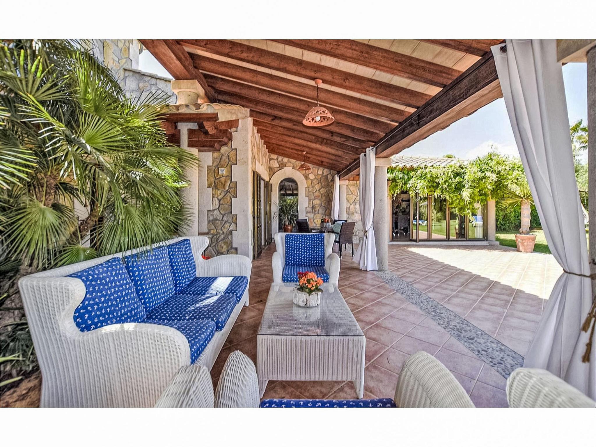 Muro: Large, luxurious villa "Gamundi", surrounded by trees and fields. In a quiet position, 2 km from the sea, in the countryside. Private: large garden, orchard 180 m2, swimming pool angular (9 x 4 m, seasonal availability: 01.Mar. - 30.Oct.). Outdoor shower, patio, pergola, terrace, barbecue. In the house: internet access, WiFi, central heating system, air conditioning, washing machine. Parking on the premises. Bus stop "Can Picafort" 2 km, railway station "Muro" 14 km, sandy beach "Playa de Muro" 2 km. Please note: car recommended. Suitable for families, suitable for seniors. Object suitable for 10 adults. The owner does not accept any youth groups. Loading and unloading of baggage is possible at the holiday house.