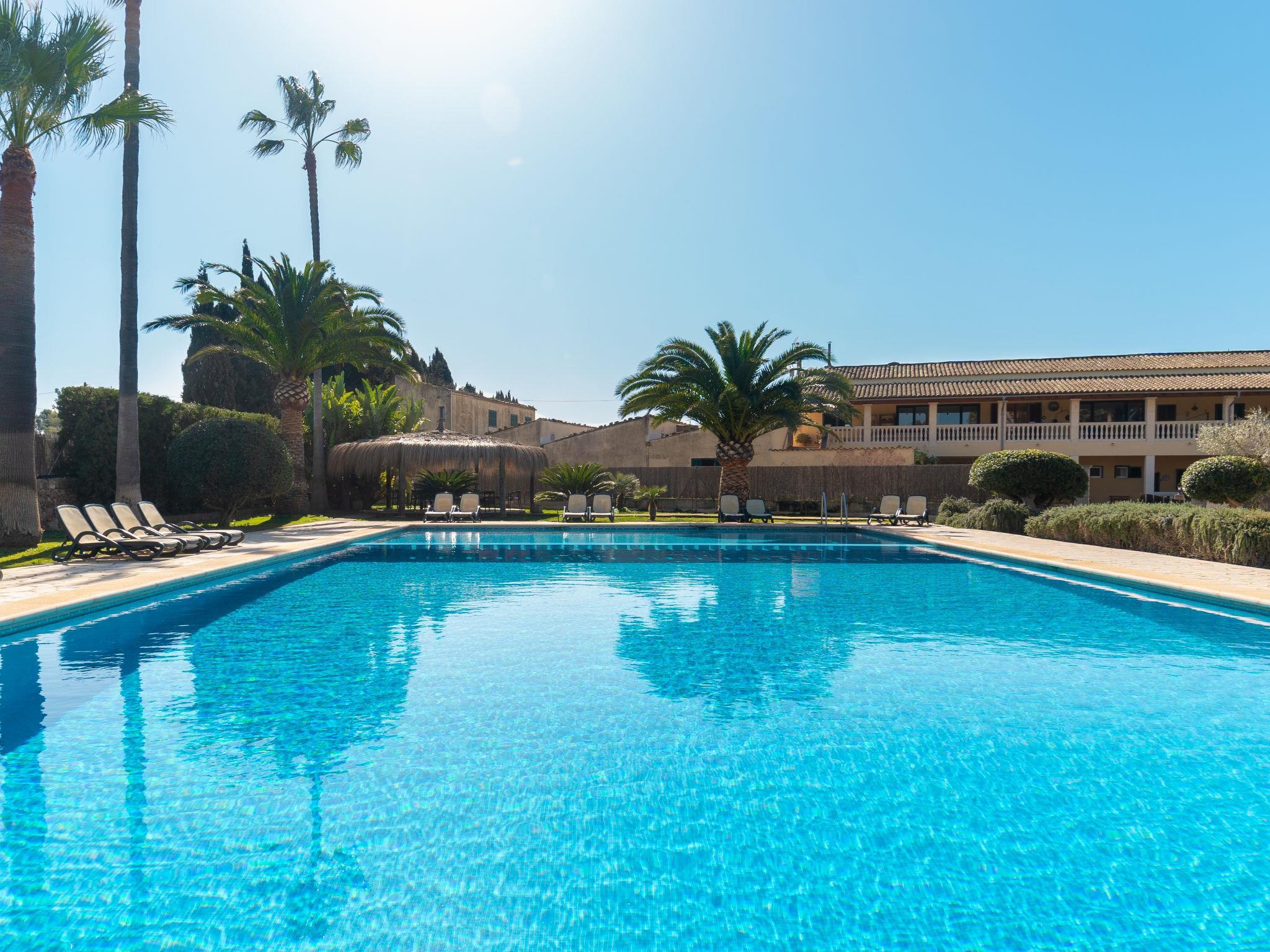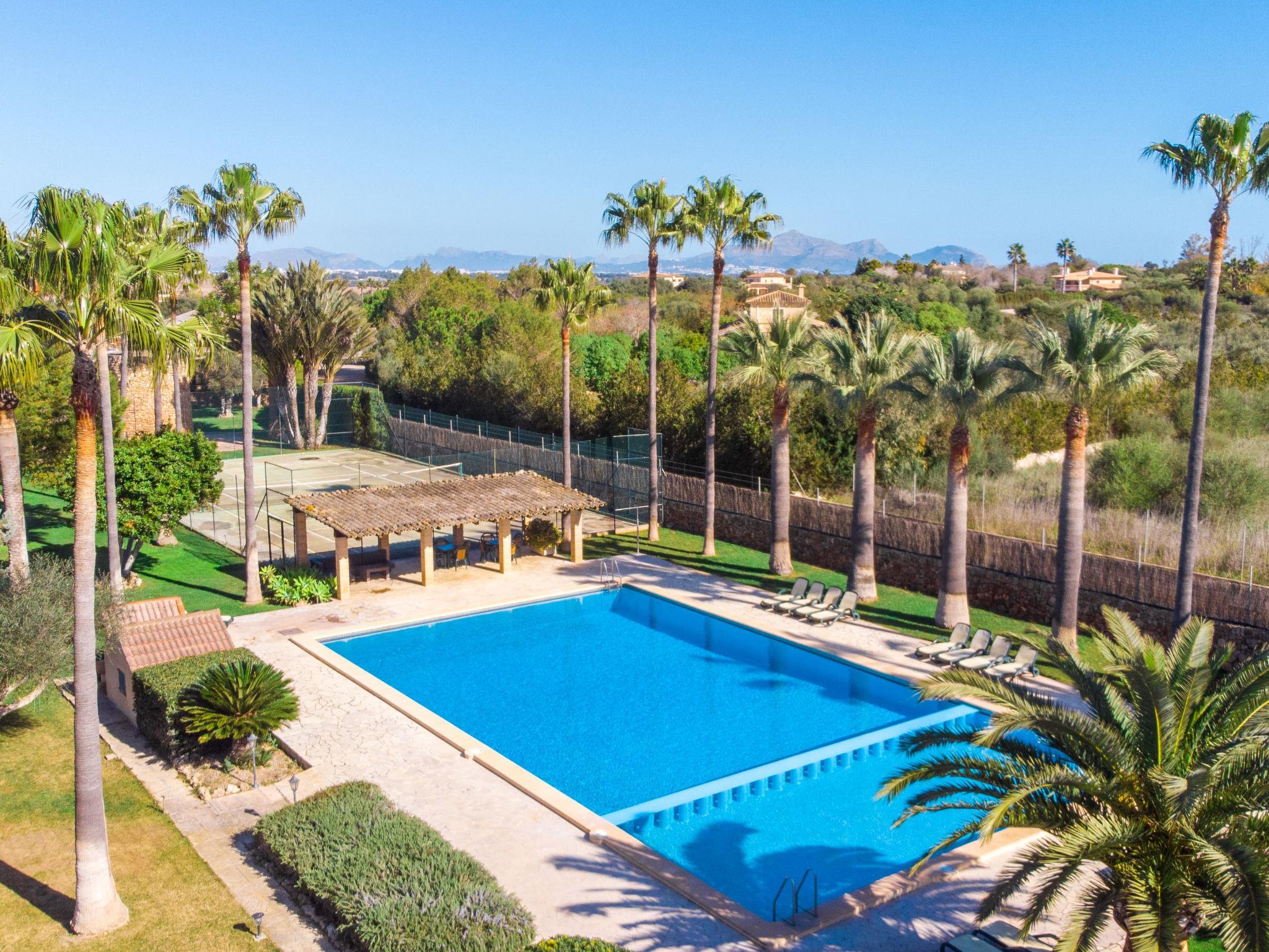 Son Sant Marti 3 km from Can Picafort: Large, child friendly country house "Finca Can Corritx", 2 storeys, surrounded by trees and fields. Property composed of main house and outbuilding 7 km from the centre of Muro, 3 km from the centre of Ca'n Picafort, 12 km from the centre of Alcudia, in a quiet, sunny position, 3 km from the sea, 3 km from the beach, in the countryside, south facing position. For shared use: property 10 ha with lawn and trees, orchard, swimming pool (20 x 12 m, seasonal availability: 01.Jan. - 31.Dec.). WC in the pool area, children's pool, outdoor shower, tennis, patio, terrace, garden furniture, pool maintenance by the owner/gardener. In the house: storage room for bicycles. Roofed, parking on the premises. Shop 3 km, grocery 2 km, supermarket 2 km, restaurant 3 km, bar 1 km, bakery 3 km, café 2 km, bus stop "Camping Can Picafort" 2 km, railway station "Sa Pobla" 10 km, ferry "Puerto de Alcudia" 16 km, sandy beach "Ca'n Picafort" 3 km. Sports harbour 5 km, marina 16 km, golf course (18 hole) 18 km, surf school 6 km, sailing school 6 km, tennis 4 km, riding stable 5 km, sports centre 4 km, walking paths from the house 8 km, cycle lane 6 km. Nearby attractions: Formentor 20 km, Albufera de Alcudia 10 km, Cuevas de Campanet 18 km. Hiking paths: Albufera de Alcudia 10 km. Please note: car recommended. On the estate animal husbandry. The owner lives in the same residence.