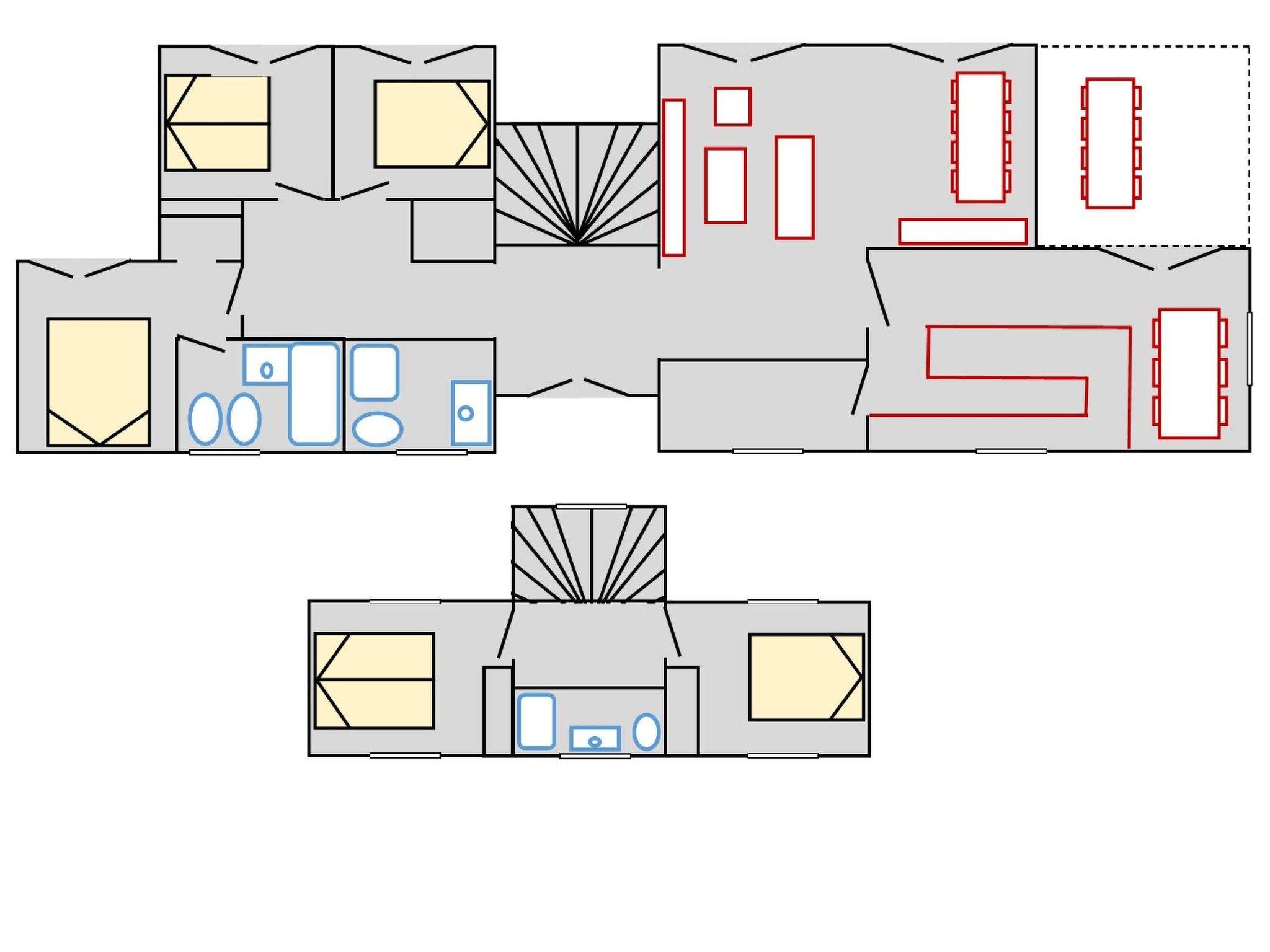 The interior of the house is equipped with your comfort in mind, with a total of 5 bedrooms and 3 bathrooms, ensuring a private and comfortable space for each and every guest. The presence of air conditioning in all the rooms guarantees a cool and pleasant atmosphere, even on the hottest days of the Mallorcan summer. The bathrooms are equipped with showers, one of which has a modern rain shower, ideal for relaxing after a day's adventure.