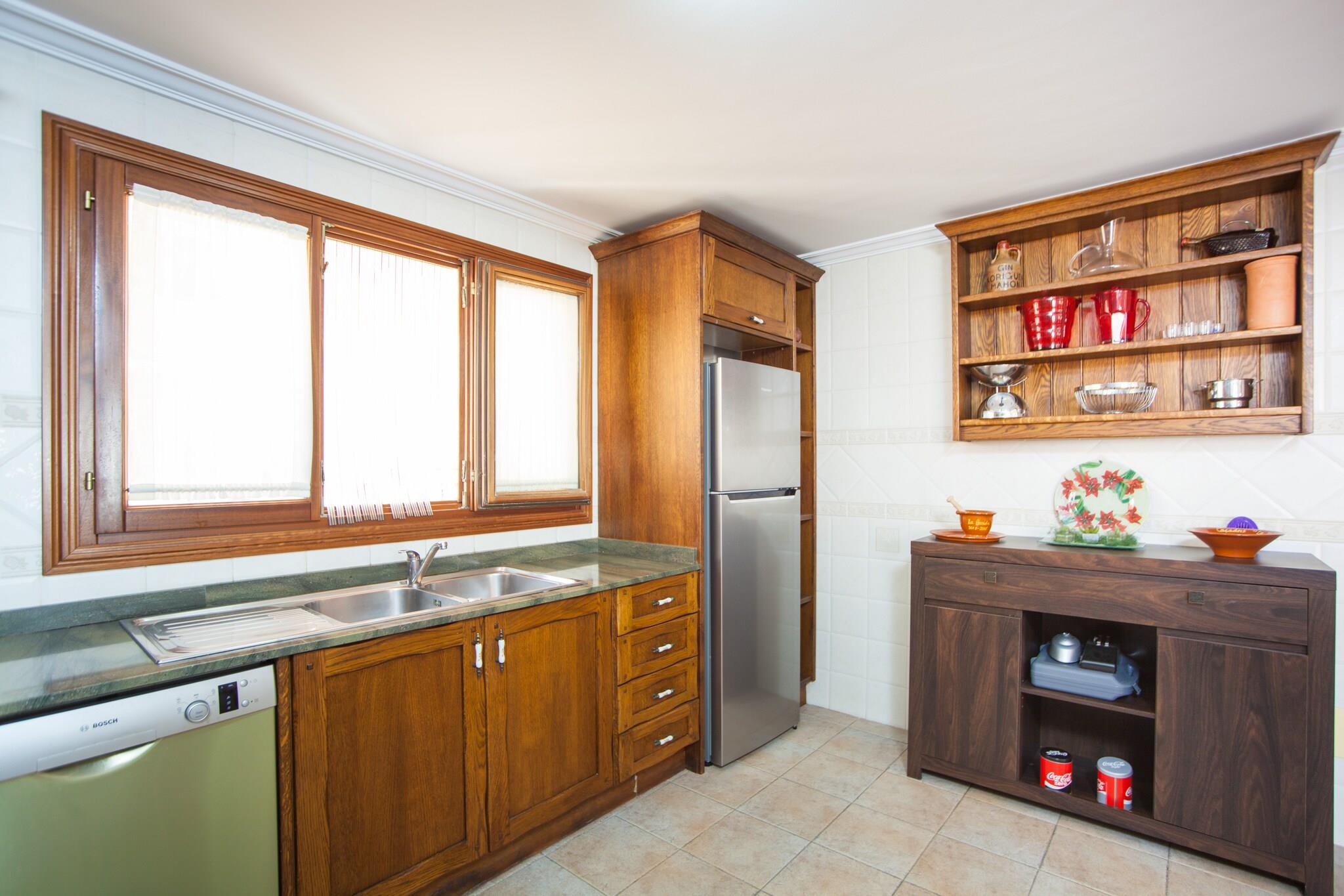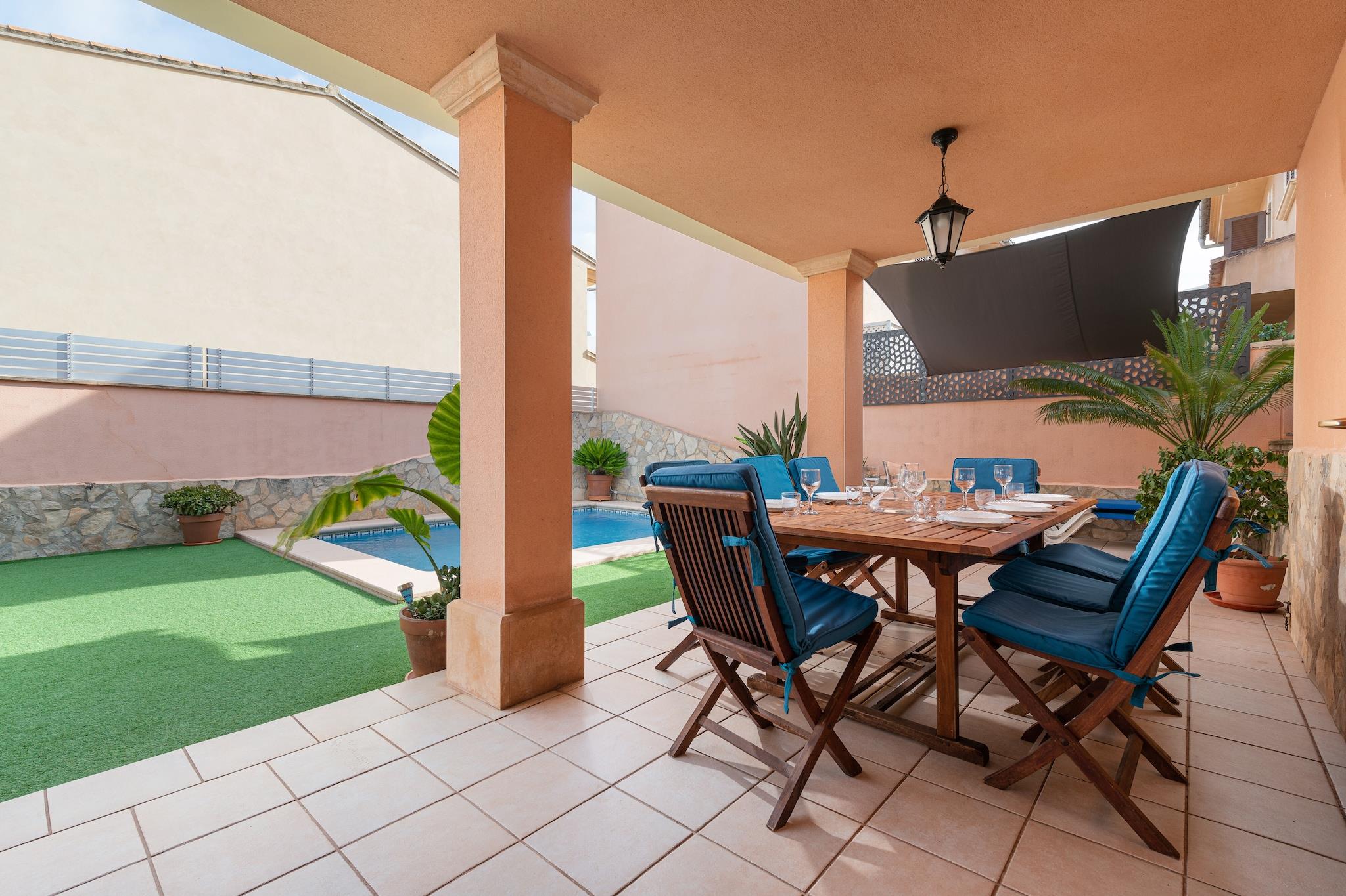 Afslappet udendørsliv Denne indbydende villa i Muro inviterer dig til at sætte farten ned og nyde et fredeligt ophold. Den private 5m x 3m pool, indrammet af liggestole, en møbleret veranda og en udendørs bruser, skaber et indbydende rum til solbeskinnede eftermiddage. Et grillområde og overdækket terrasse gør det nemt at spise udendørs, uanset om du tilbereder grillretter til familien eller blot slapper af med en bog med udsigt over poolen. Med flere terrasser og altaner er der altid et hjørne til at nyde både solskin og skygge. Komfortable familierum Indenfor balancerer hjemmet traditionel charme med moderne komfort. Det airconditionerede opholds- og spiseområde omfatter et Smart TV, DVD og musiksystem til afslappede aftener, mens det fuldt udstyrede køkken gør fælles madlavning ubesværet. Fire soveværelser på to etager giver fleksibilitet for familier og grupper, inklusive en master suite med en-suite badeværelse og terrasse. Gennemtænkte detaljer som en barneseng, høj stol og vaskefaciliteter sikrer bekvemmelighed under hele dit ophold. Strande og lokale smagsoplevelser Kun 12 km væk byder Playa de Muro og Can Picafort på gyldent sand og klart vand, perfekt til svømning eller familiestranddage. Golfentusiaster vil finde Golf de Pollença inden for 20 minutter, mens Alcúdias havn er tæt nok til dagsture. I det nærliggende Sa Pobla kan du prøve autentiske tapas eller shoppe på det livlige søndagsmarked for friske råvarer og kunsthåndværk.