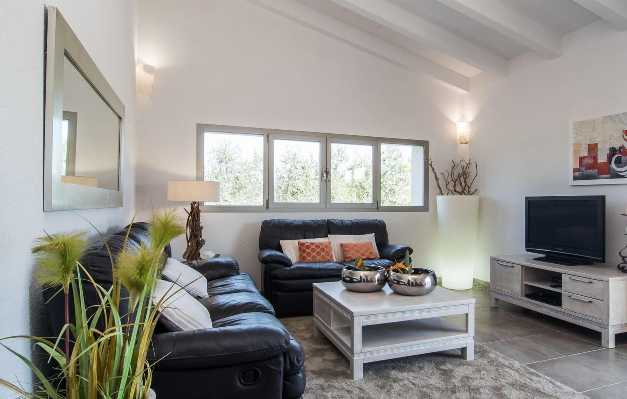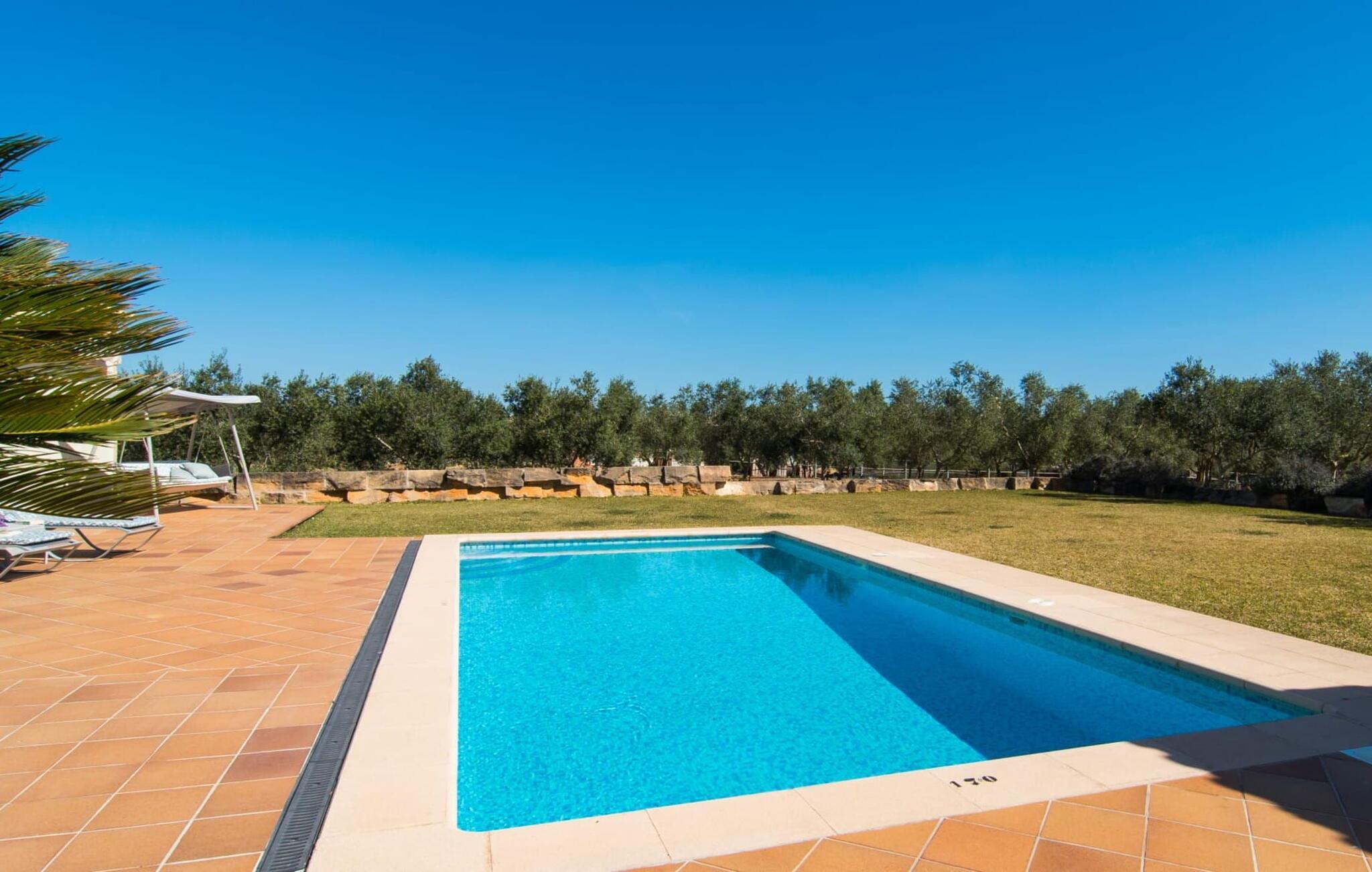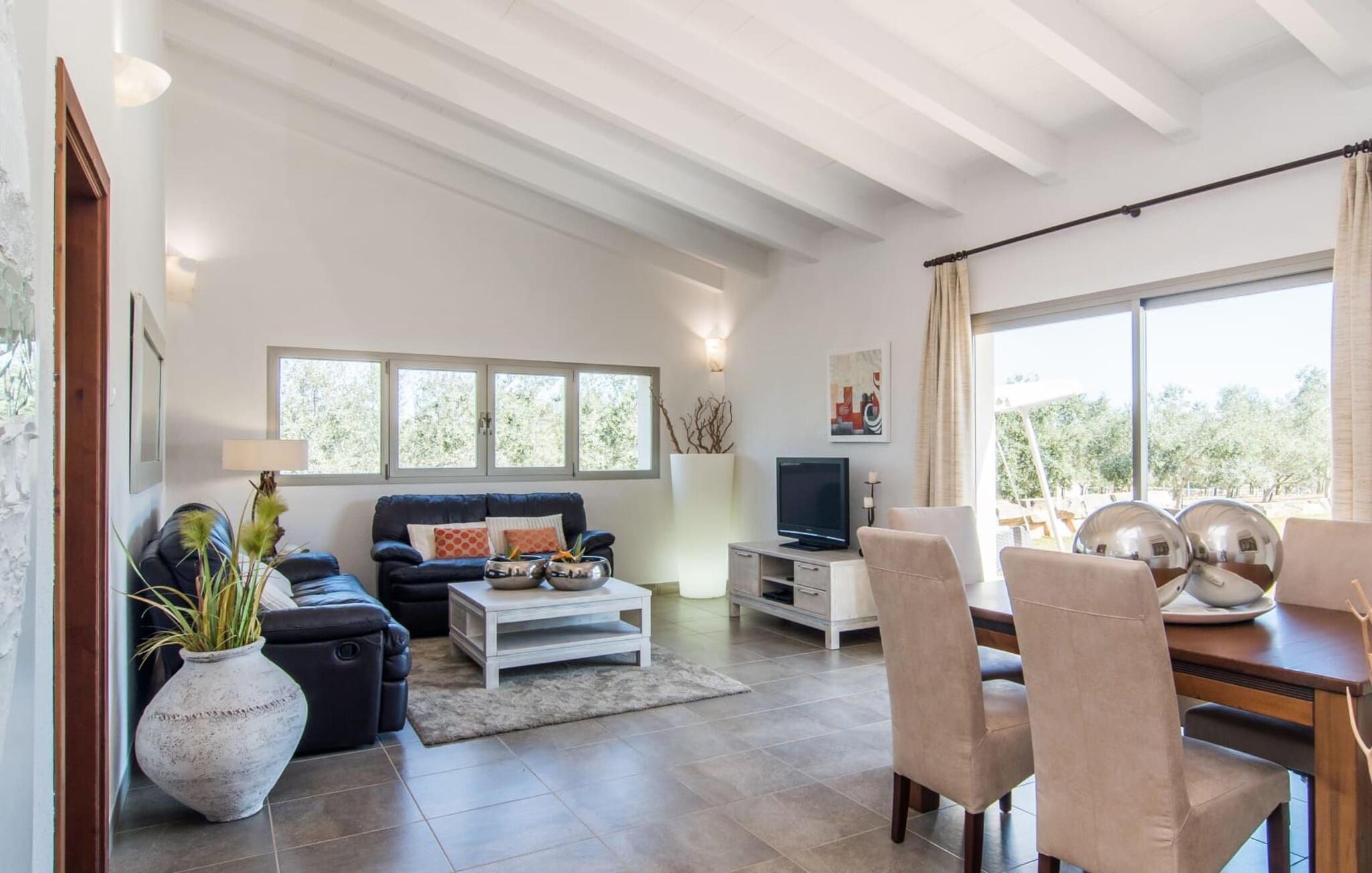 Muronita, Murochen er en dejlig destination, da S'Albufera-regionen er kendt for sit mangfoldige udvalg af saftige frugter og grøntsager, der appellerer til både voksne og børn. Dette er et Fincallorca feriehus. Ejendommen har en legeplads med gynger og rutsjebane, der giver rigelig plads til børn og giver dem et trygt miljø at lege og udforske. Voksne kan slappe af væk fra stress og jag. Poolen ved siden af terrassen tilbyder et forfriskende alternativ til havet. Siddeområdet i rattan indbygget i væggene inviterer gæster til at nyde en god bog i skyggen, mens de holder øje med poolen. Det rummelige og veludstyrede udekøkken er perfekt til at tilberede måltider og er udstyret med gardiner, der kan forvandle det til et luftigt telt. Gennem terrassedørene kommer du ind i opholds- og spiseafdelingen, indrettet i jordfarver og iøjnefaldende indretning, der skaber en beroligende atmosfære efter en aktiv dag med svømning, gå- eller cykelture. De tre soveværelser byder på en blanding af mørke og lyse kontraster, suppleret med beroligende kunst. To badeværelser, inklusive et ensuite, imødekommer gæsternes behov, mens en lang gang giver ekstra legeplads til børn. Nyd en vidunderlig familieferie omgivet af regionens livlige smag! Denne moderne naturstensvilla ligger bag Alcúdia-bugten, kun 2 km fra den nordlige mallorcanske landsby Muro. Fra "Muronita" kan du hurtigt udforske alle retninger via Ma-13 Palma-Inca-Alcúdia. Havet er (næsten) inden for rækkevidde: den fine sandstrand bugt Playa de Muro (ca. 5,5 km lang) og turistdiversiteten i Can Picafort er bestemt en kort køretur værd.