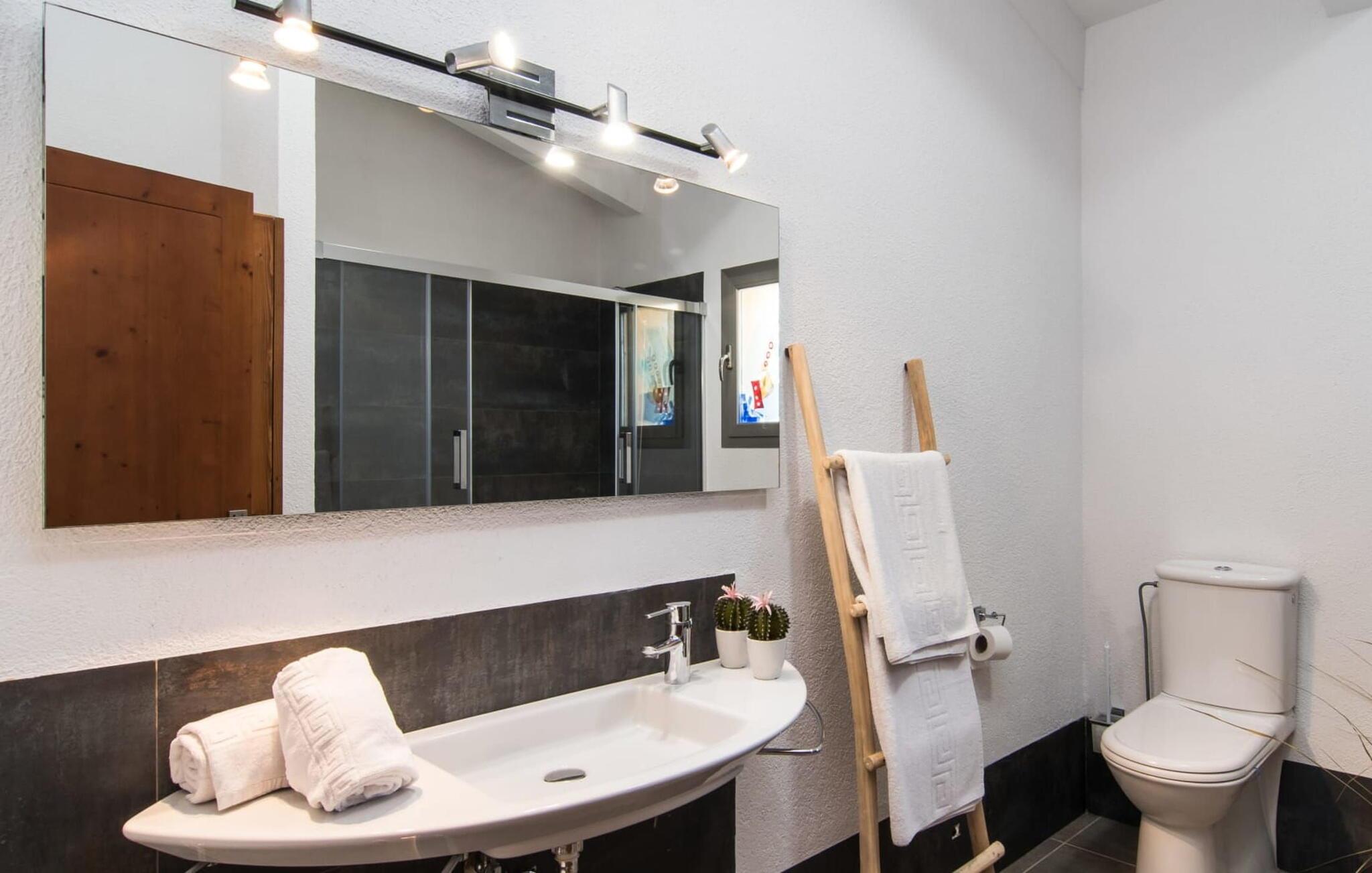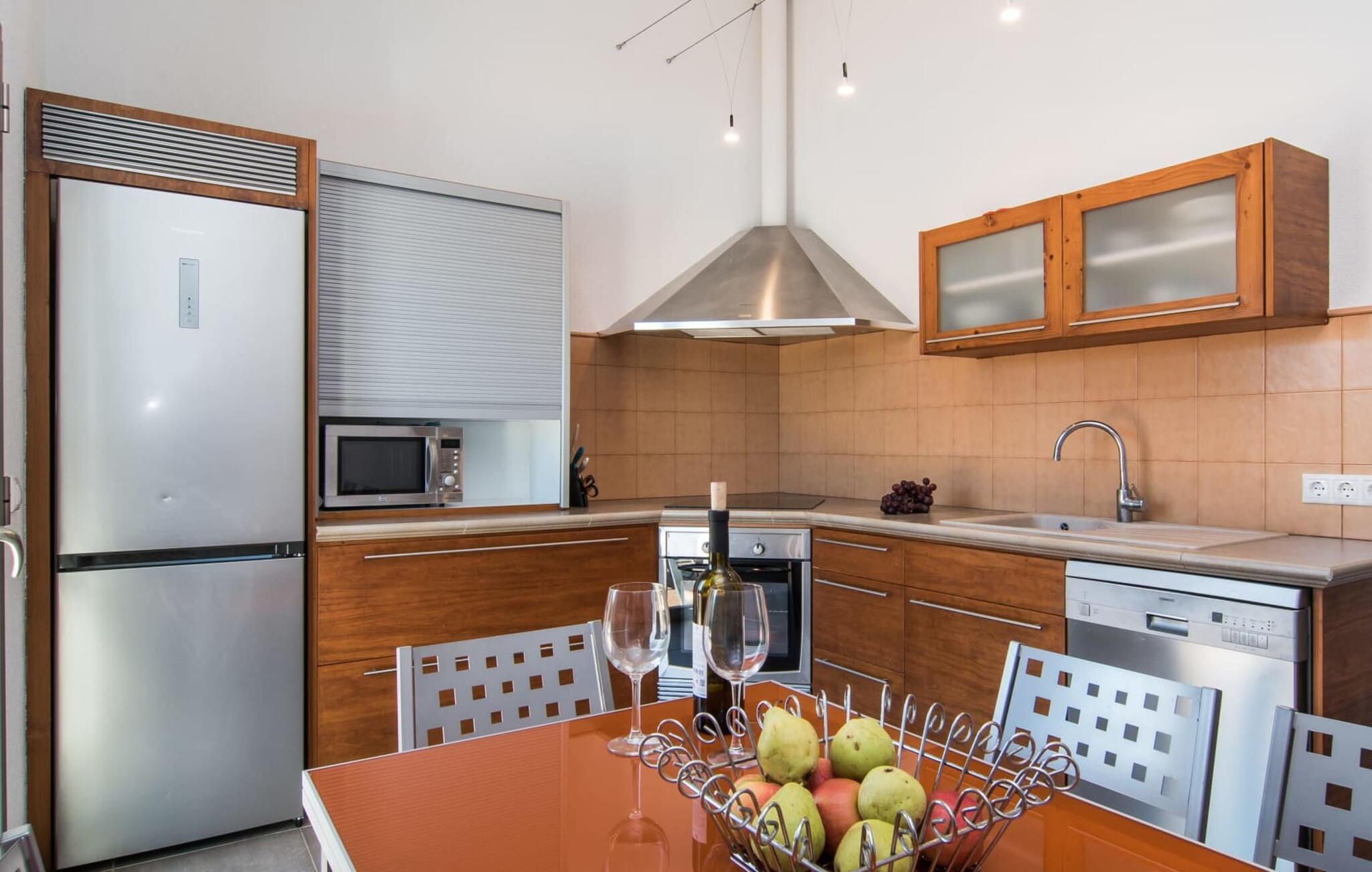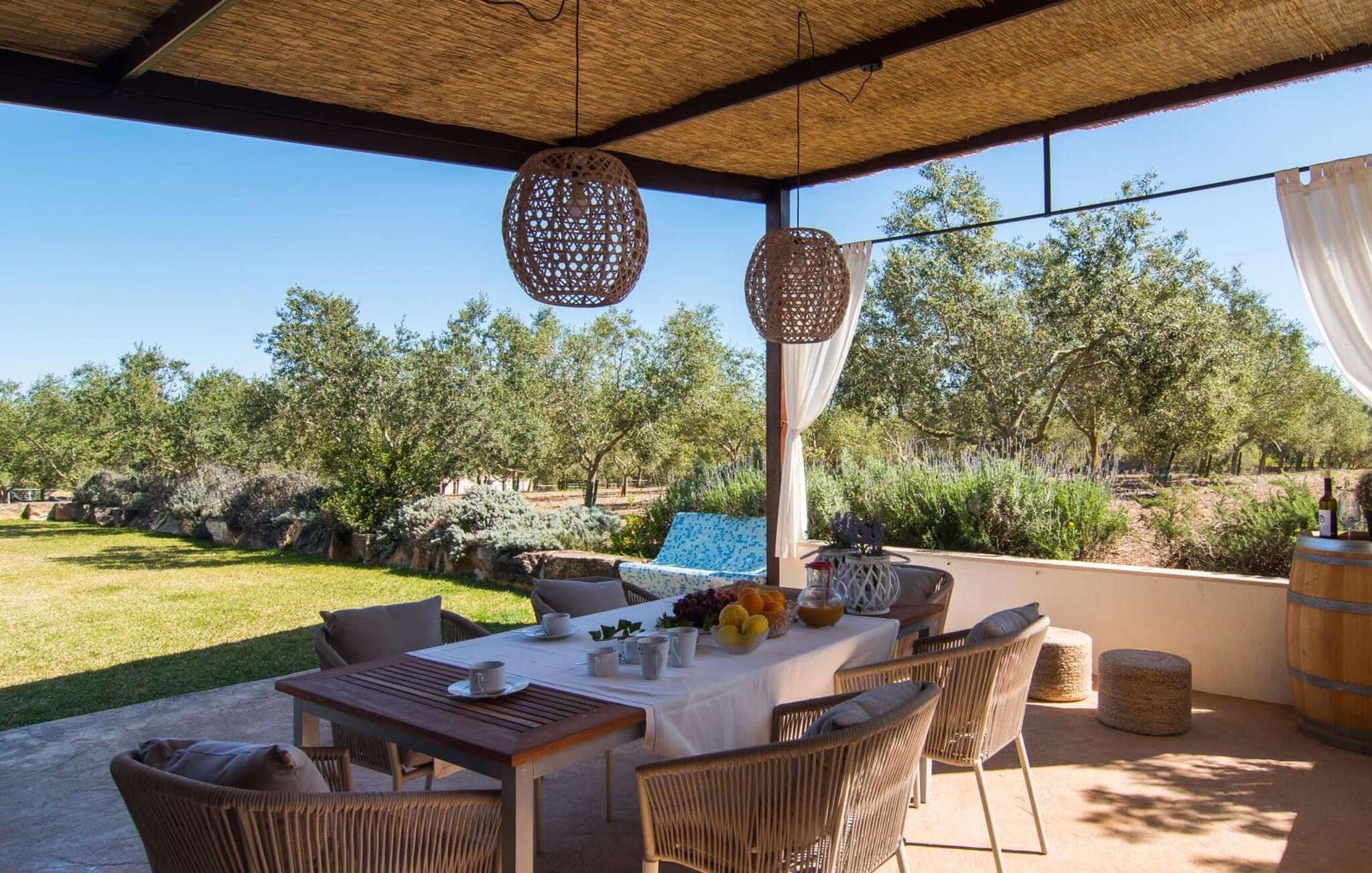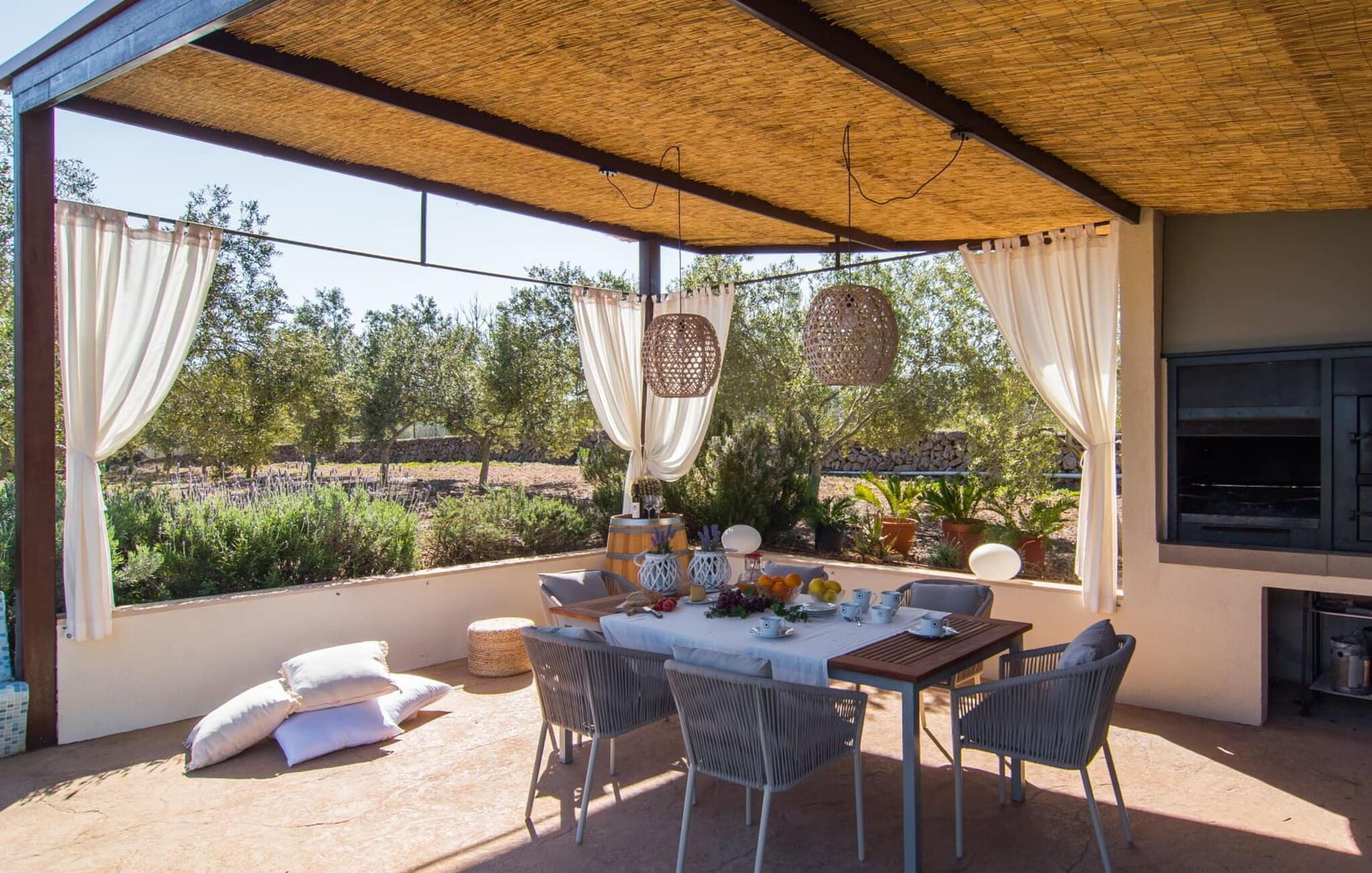 Muronita, Murochen er en dejlig destination, da S'Albufera-regionen er kendt for sit mangfoldige udvalg af saftige frugter og grøntsager, der appellerer til både voksne og børn. Dette er et Fincallorca feriehus. Ejendommen har en legeplads med gynger og rutsjebane, der giver rigelig plads til børn og giver dem et trygt miljø at lege og udforske. Voksne kan slappe af væk fra stress og jag. Poolen ved siden af terrassen tilbyder et forfriskende alternativ til havet. Siddeområdet i rattan indbygget i væggene inviterer gæster til at nyde en god bog i skyggen, mens de holder øje med poolen. Det rummelige og veludstyrede udekøkken er perfekt til at tilberede måltider og er udstyret med gardiner, der kan forvandle det til et luftigt telt. Gennem terrassedørene kommer du ind i opholds- og spiseafdelingen, indrettet i jordfarver og iøjnefaldende indretning, der skaber en beroligende atmosfære efter en aktiv dag med svømning, gå- eller cykelture. De tre soveværelser byder på en blanding af mørke og lyse kontraster, suppleret med beroligende kunst. To badeværelser, inklusive et ensuite, imødekommer gæsternes behov, mens en lang gang giver ekstra legeplads til børn. Nyd en vidunderlig familieferie omgivet af regionens livlige smag! Denne moderne naturstensvilla ligger bag Alcúdia-bugten, kun 2 km fra den nordlige mallorcanske landsby Muro. Fra "Muronita" kan du hurtigt udforske alle retninger via Ma-13 Palma-Inca-Alcúdia. Havet er (næsten) inden for rækkevidde: den fine sandstrand bugt Playa de Muro (ca. 5,5 km lang) og turistdiversiteten i Can Picafort er bestemt en kort køretur værd.