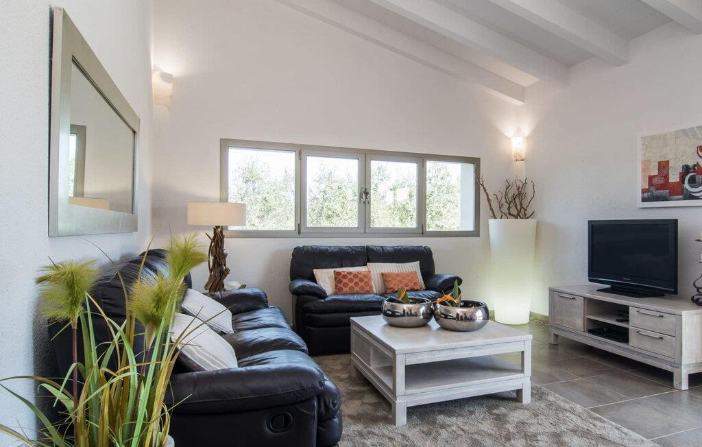 Muronita, Murochen er en dejlig destination, da S'Albufera-regionen er kendt for sit mangfoldige udvalg af saftige frugter og grøntsager, der appellerer til både voksne og børn. Ejendommen har en legeplads med gynger og rutsjebane, der giver rigelig plads til børn og giver dem et trygt miljø at lege og udforske. Voksne kan slappe af væk fra stress og jag. Poolen ved siden af terrassen tilbyder et forfriskende alternativ til havet. Siddeområdet i rattan indbygget i væggene inviterer gæster til at nyde en god bog i skyggen, mens de holder øje med poolen. Det rummelige og veludstyrede udekøkken er perfekt til at tilberede måltider og er udstyret med gardiner, der kan forvandle det til et luftigt telt. Gennem terrassedørene kommer I ind i opholds- og spiseafdelingen, indrettet i jordfarver og iøjnefaldende indretning, der skaber en beroligende atmosfære efter en aktiv dag med svømning, gå- eller cykelture. De tre soveværelser byder på en blanding af mørke og lyse kontraster, suppleret med beroligende kunst. To badeværelser, inklusive et ensuite, imødekommer gæsternes behov, mens en lang gang giver ekstra legeplads til børn. Nyd en vidunderlig familieferie omgivet af regionens livlige smag! Denne moderne naturstensvilla ligger bag Alcúdia-bugten, kun 2 km fra den nordlige mallorcanske landsby Muro. Fra "Muronita" kan I hurtigt udforske alle retninger via Ma-13 Palma-Inca-Alcúdia. Havet er (næsten) inden for rækkevidde: den fine sandstrand bugt Playa de Muro (ca. 5,5 km lang) og turistdiversiteten i Can Picafort er bestemt en kort køretur værd.