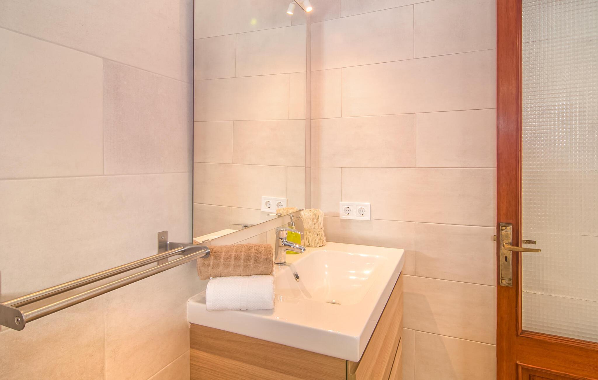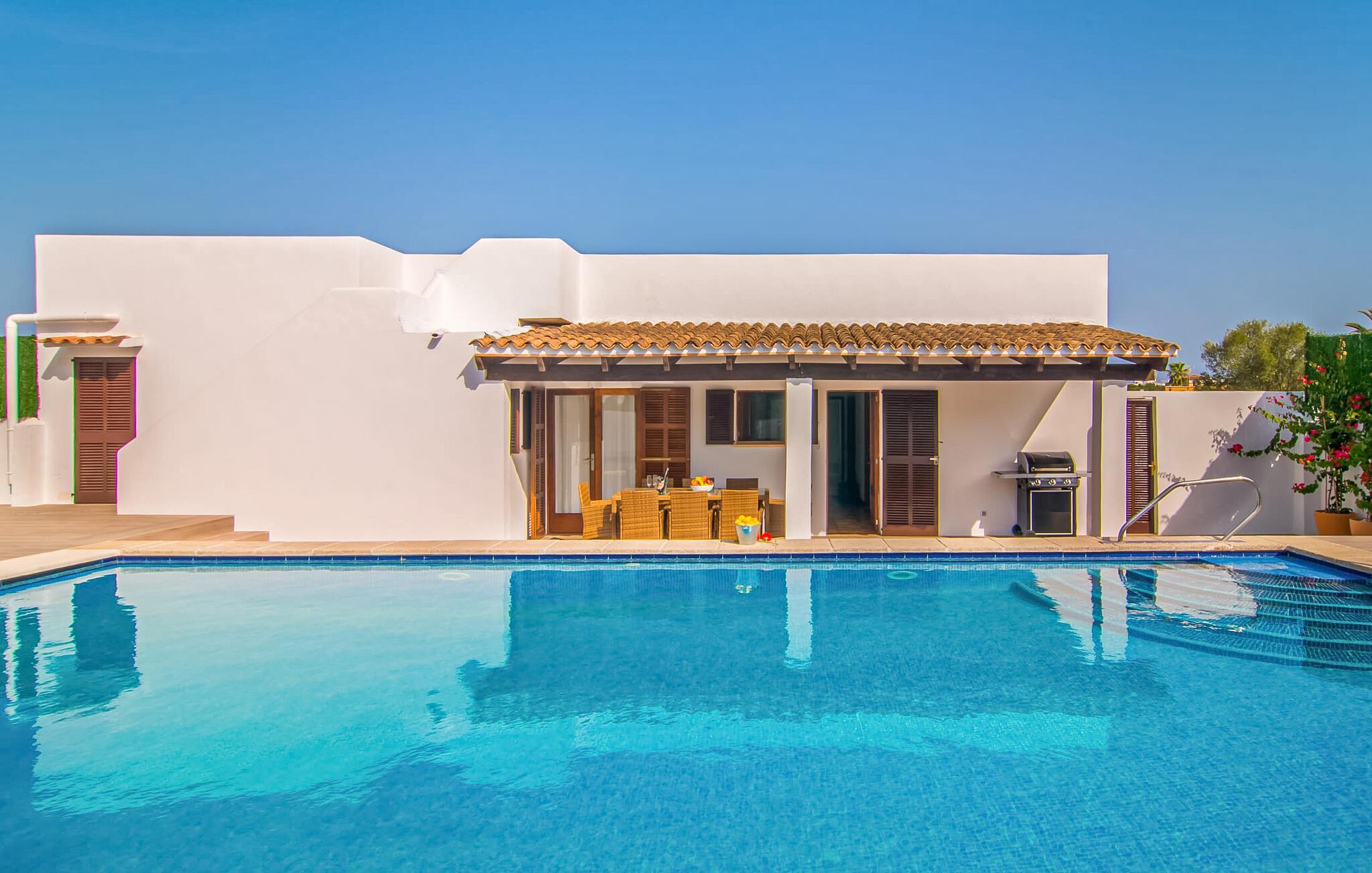 Denne charmerende villa på Mallorcas østkyst er det perfekte sted for en afslappende strandferie. Kun en kort gåtur fra sandet kombinerer det moderne komfort med en hyggelig atmosfære. Dette er et feriehus i Fincallorca. Ved ankomsten fører en grøn græsplæne til den ene af to terrasser. Her kan du slappe af i en hængestol eller nyde en snak i gyngestolene. Den anden terrasse er delvist skyggefuld og ideel til at slappe af om dagen, mens poolen inviterer dig til at køle af og nyde det glitrende vand fra de komfortable liggestole. En gasgrill er tilgængelig for at tilberede et lækkert måltid. Indenfor byder den lyse stue med pejs på et roligt tilflugtssted, uanset om du nyder en bog eller ser tv. Det fuldt udstyrede køkken med et spisebord i nærheden giver dig mulighed for at tilberede måltider i ro og mag. Fire dobbeltværelser, hvoraf det ene har eget badeværelse og udgang til terrassen. To værelser har to enkeltsenge, mens det mindste har en køjeseng til børn. Med to ekstra badeværelser sikrer denne villa komfort for alle. En perfekt familie- eller gruppeferie tæt på stranden. Beliggende kun 800 meter fra en fantastisk 890 meter lang strand, byder villaens bymæssige omgivelser let adgang til lokale faciliteter og aktiviteter, herunder en gåtur på promenaden til den nærliggende by S'Illot. Familier kan nyde nærliggende attraktioner såsom en safari-zoo, 4 km derfra, og den pulserende by Cala Millor, også 4 km derfra, byder på forskellige aftenunderholdningsmuligheder. Aircondition i ejendommen er inkluderet i prisen, men dets brug er begrænset mellem kl. 21.00 og 9.00 i soveværelserne og fra kl. 14.00 til 19.00 i stuen.